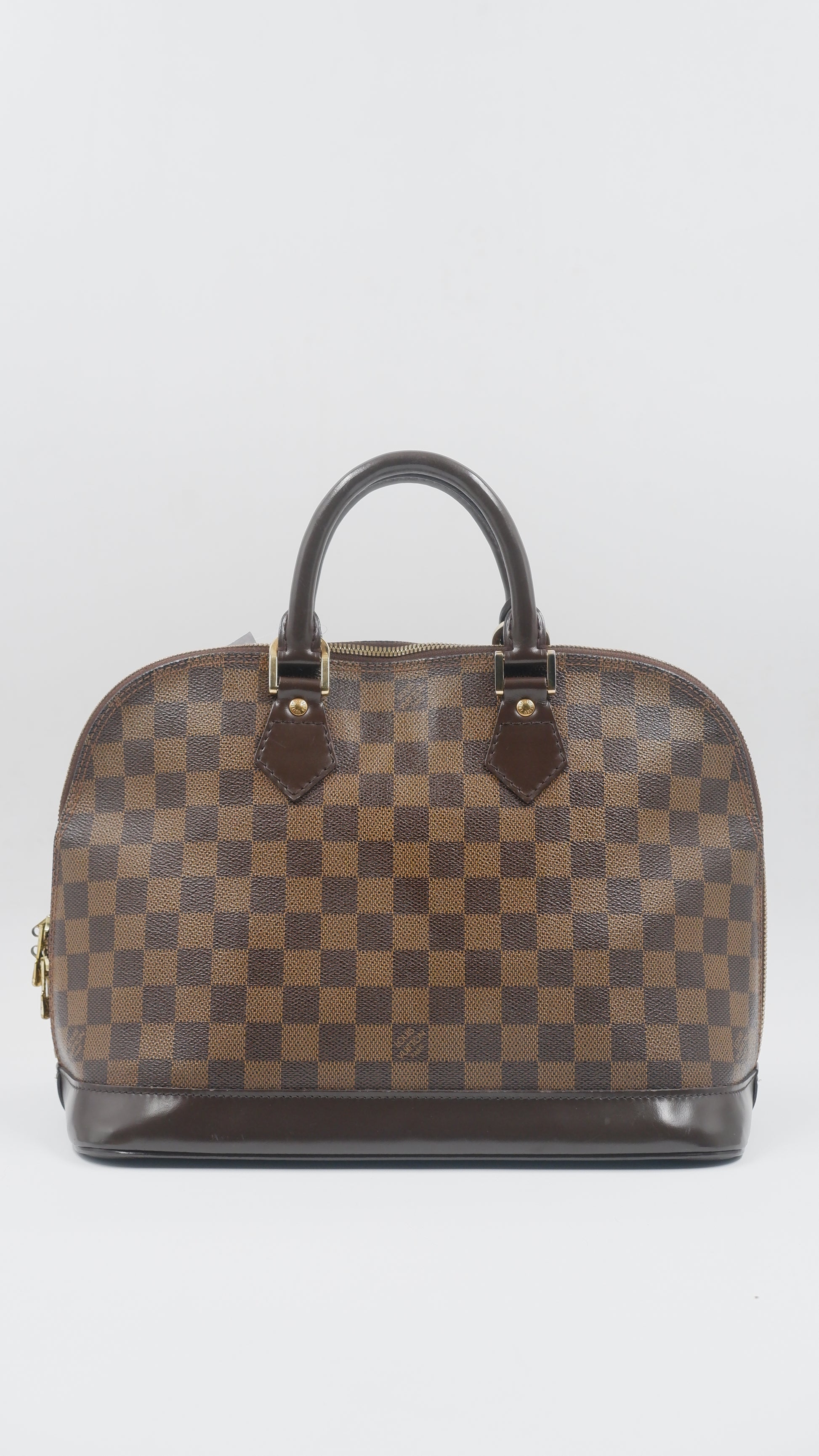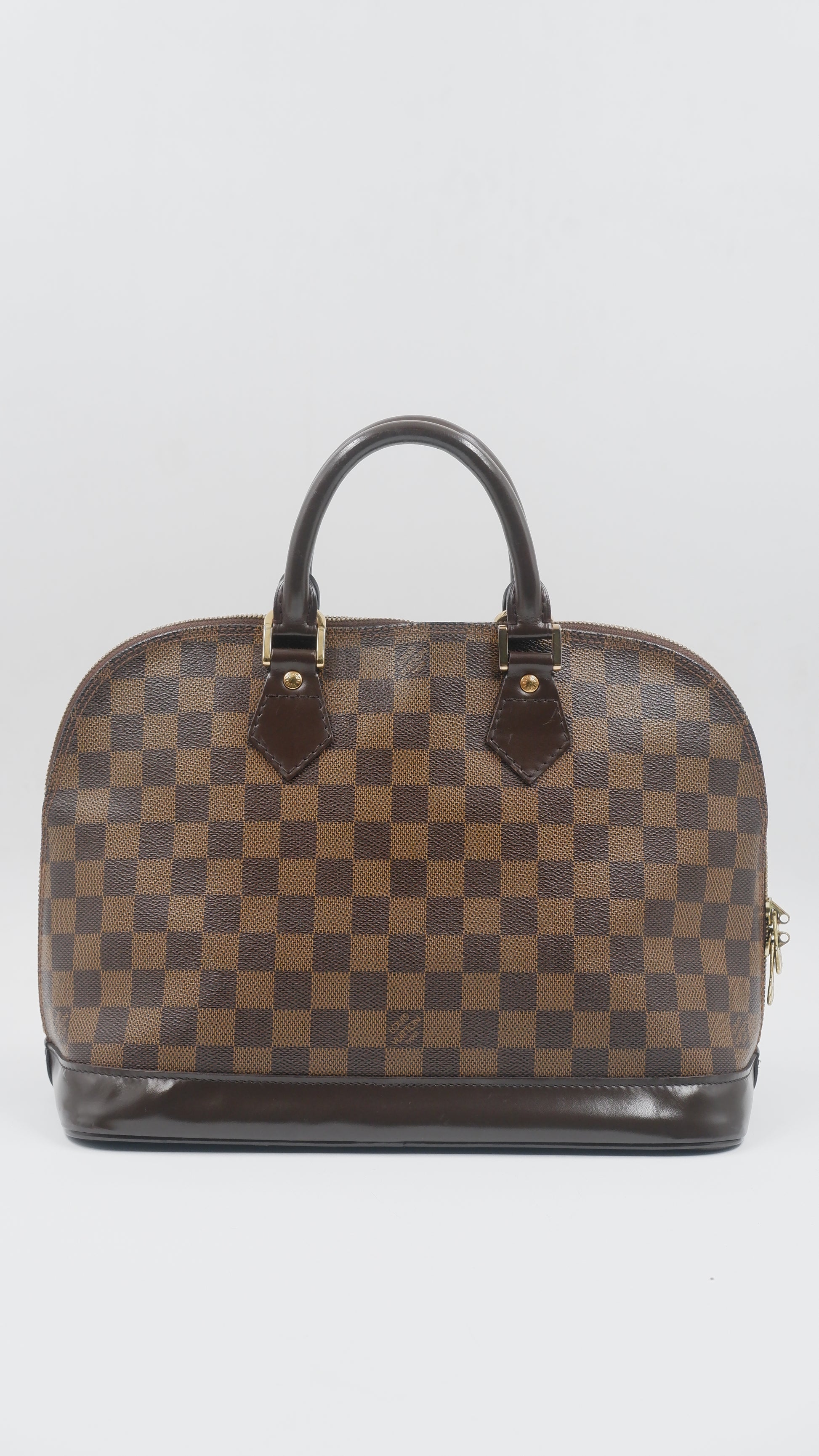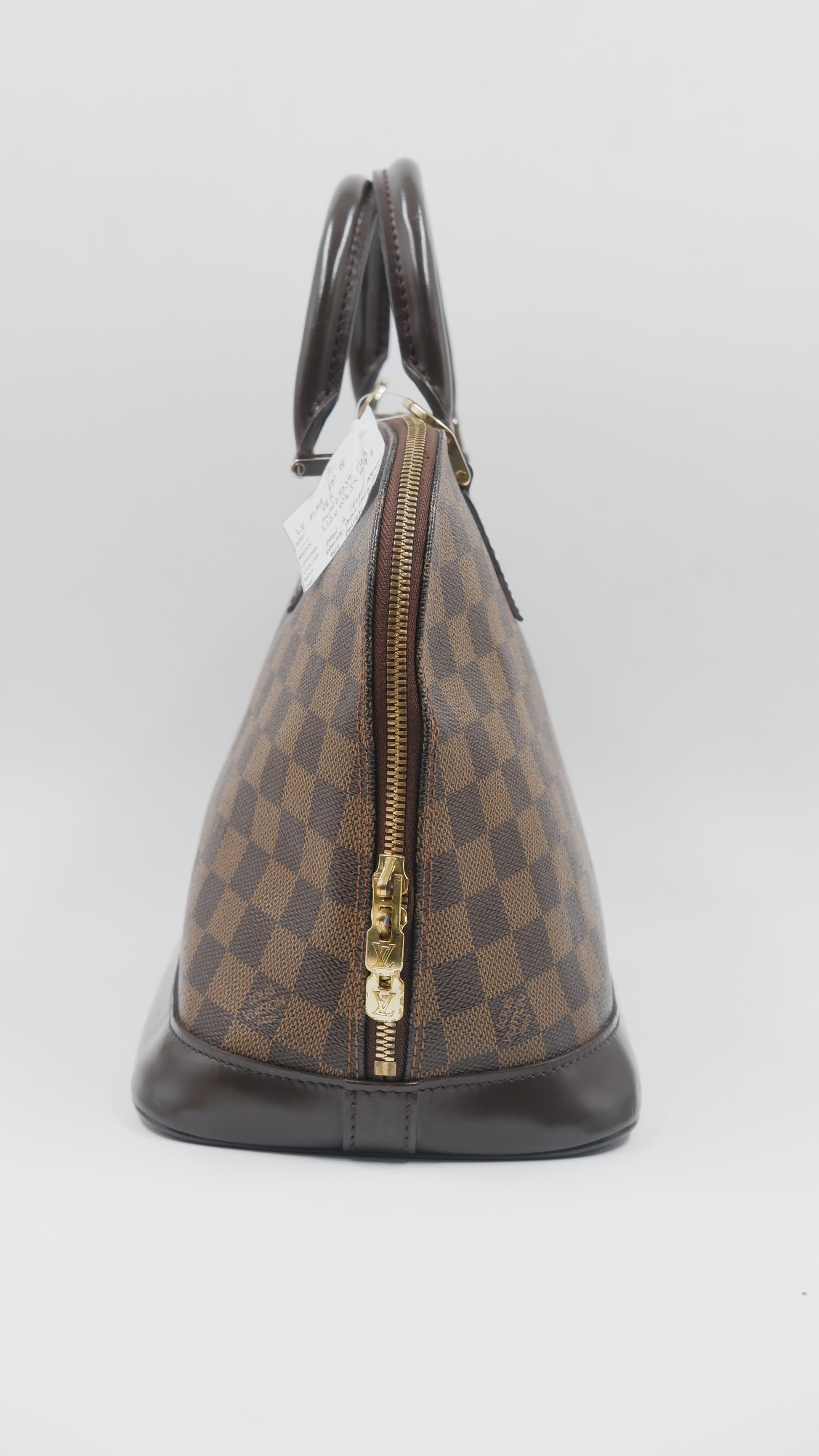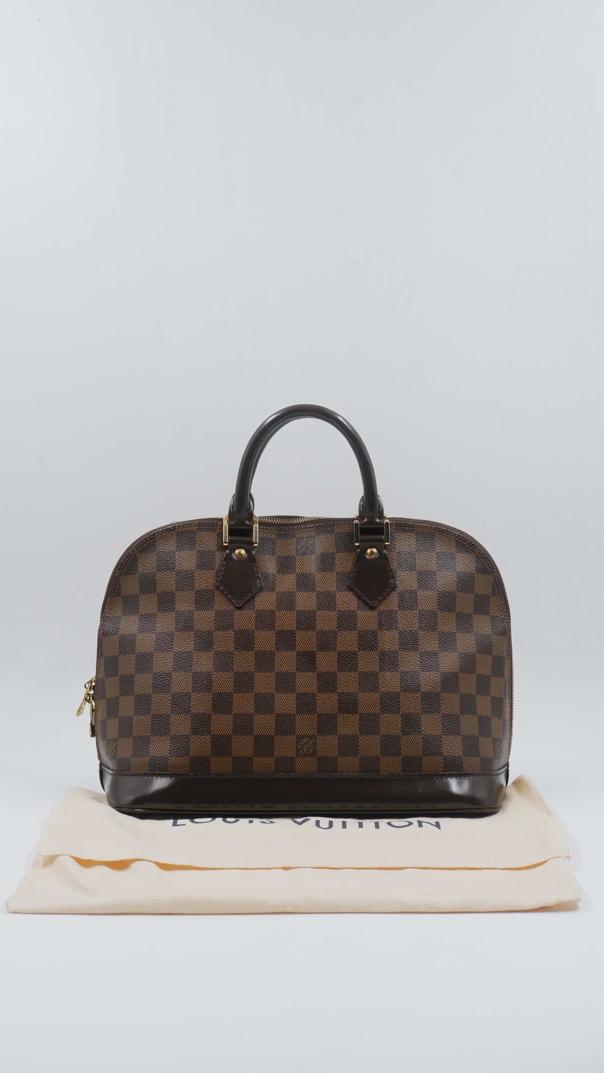 Alma PM DE is a refined handbag crafted from durable DE coated canvas, embodying timeless elegance with its sophisticated dark and light brown color palette. Exquisitely made in France, it boasts excellent overall condition, meticulously preserved both inside and out. Measuring L12 x W6.5 x H9.4, this compact yet spacious piece is complemented by gleaming gold-tone hardware (GHW), enhancing its luxurious appeal. The bag comes complete with the original dust bag, ensuring its protection. Ideal for those who appreciate classic French craftsmanship paired with enduring style and quality.