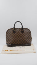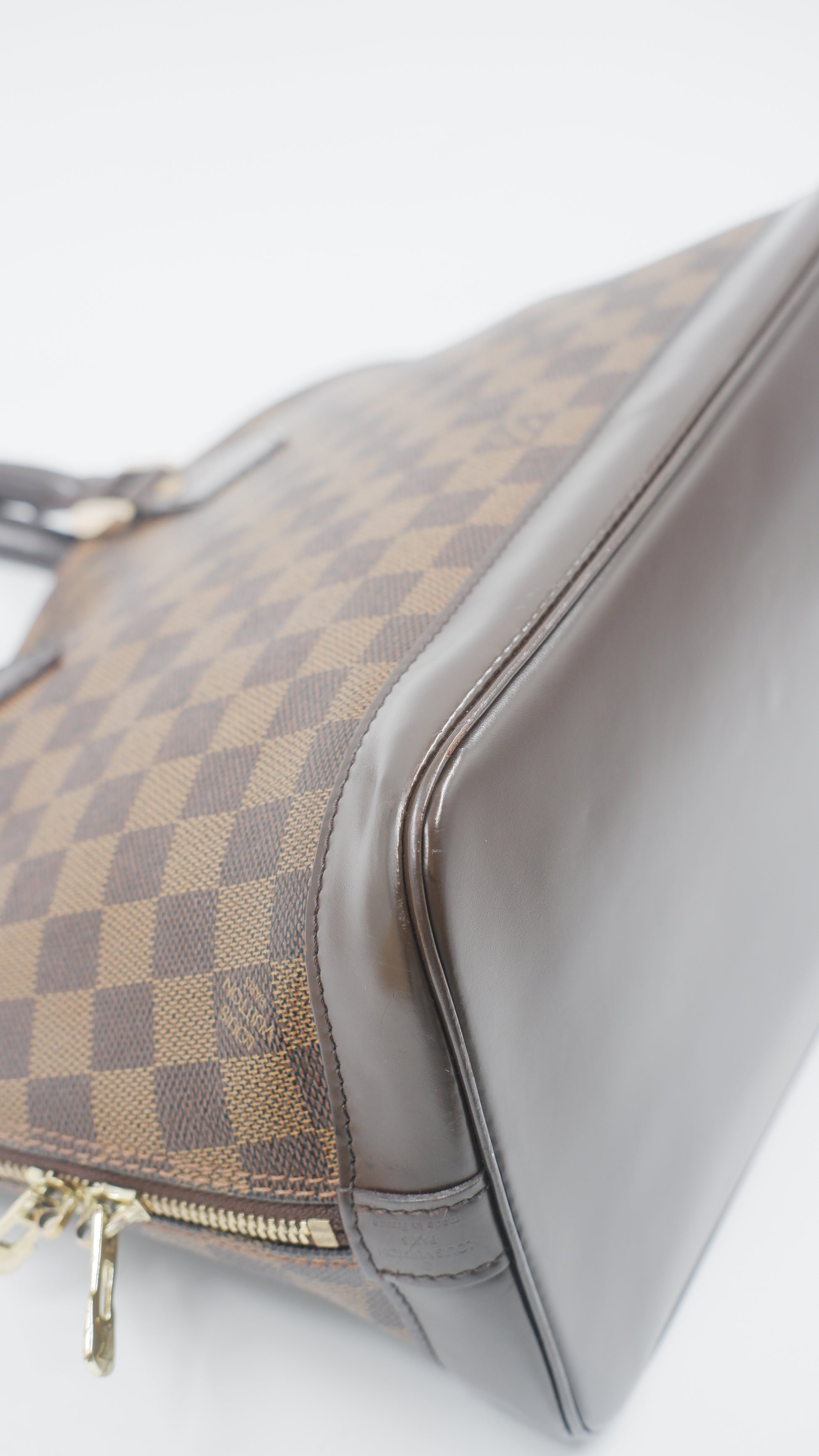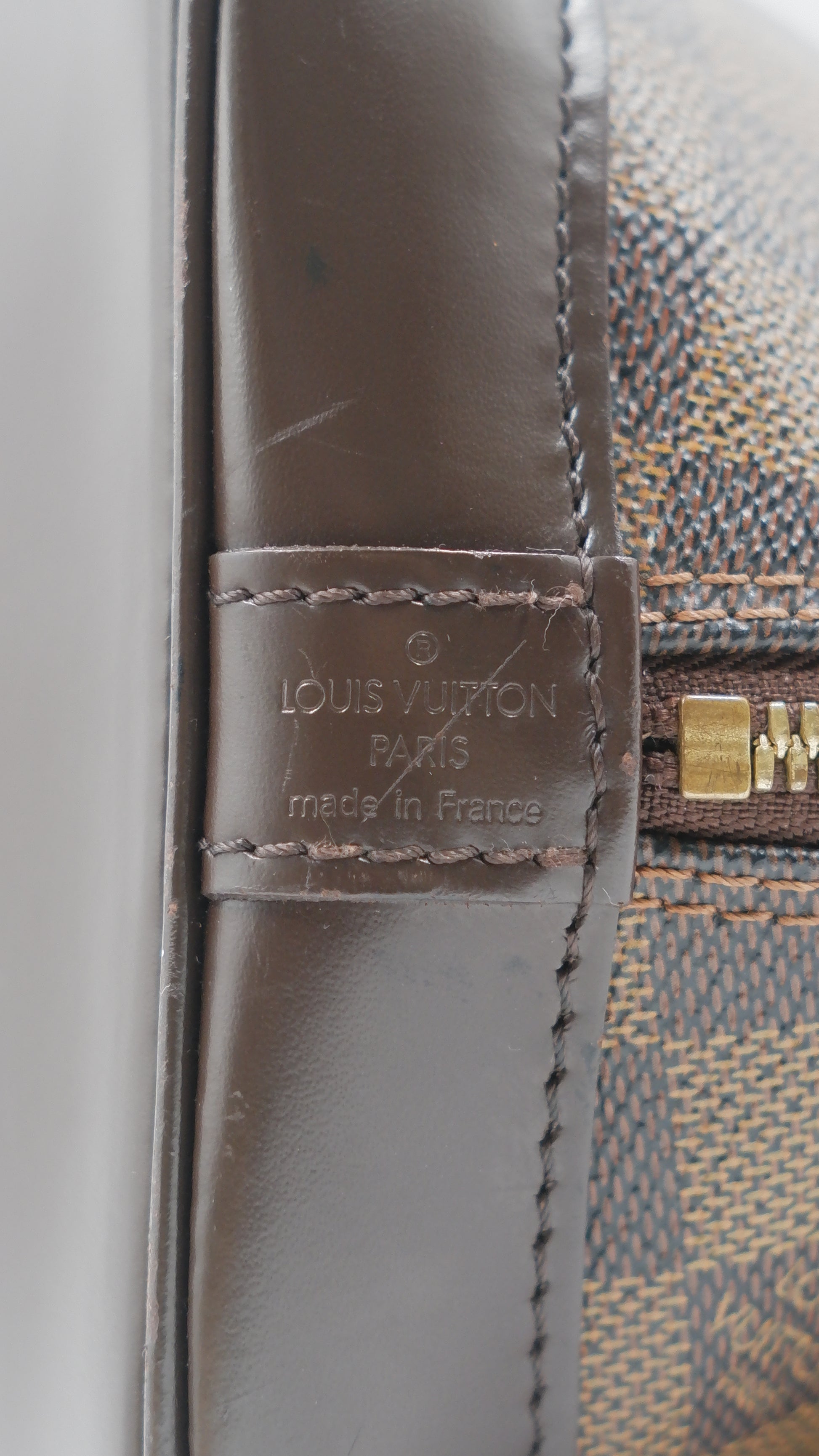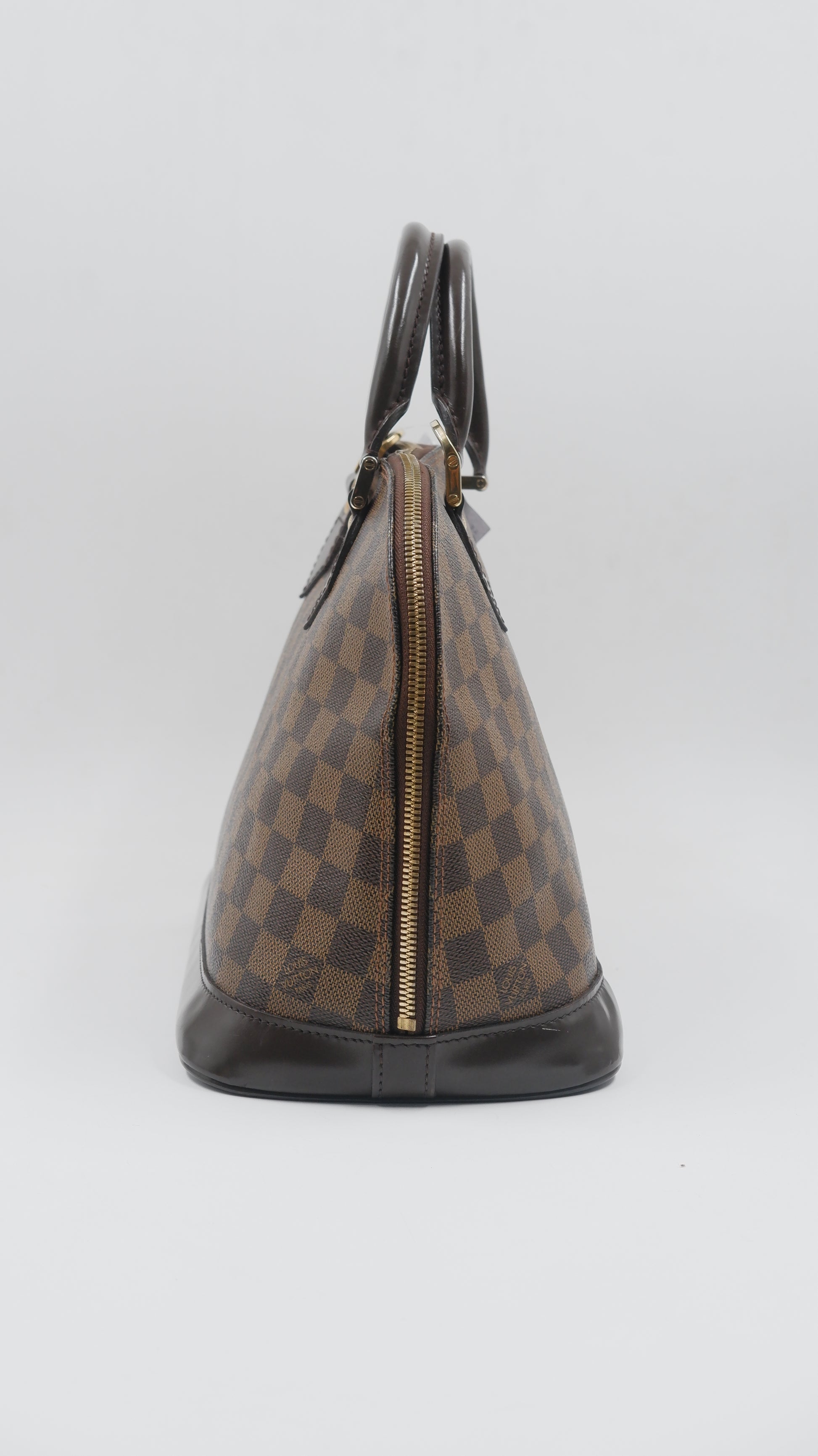 Alma PM DE is a refined handbag crafted from durable DE coated canvas, embodying timeless elegance with its sophisticated dark and light brown color palette. Exquisitely made in France, it boasts excellent overall condition, meticulously preserved both inside and out. Measuring L12 x W6.5 x H9.4, this compact yet spacious piece is complemented by gleaming gold-tone hardware (GHW), enhancing its luxurious appeal. The bag comes complete with the original dust bag, ensuring its protection. Ideal for those who appreciate classic French craftsmanship paired with enduring style and quality.