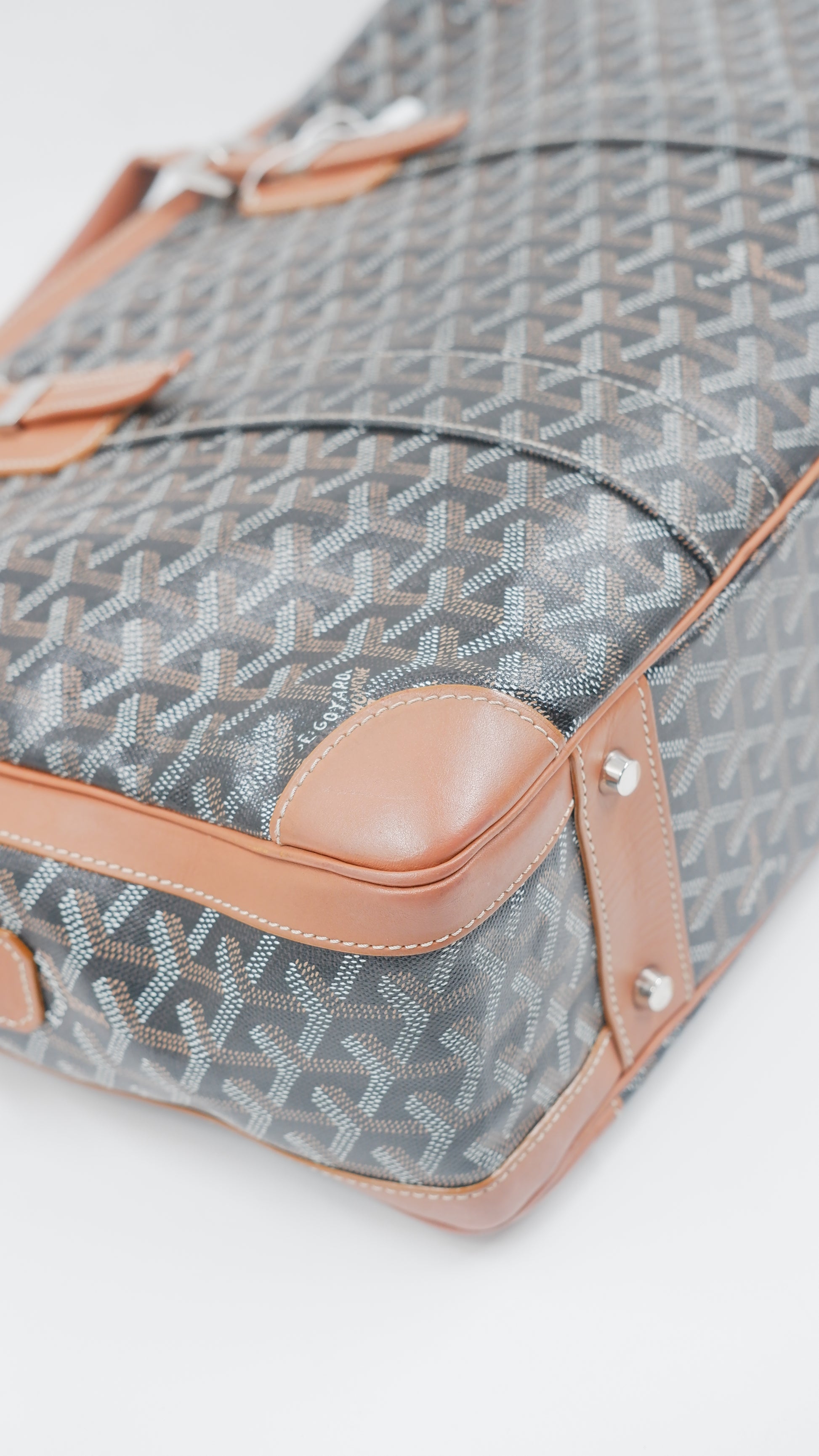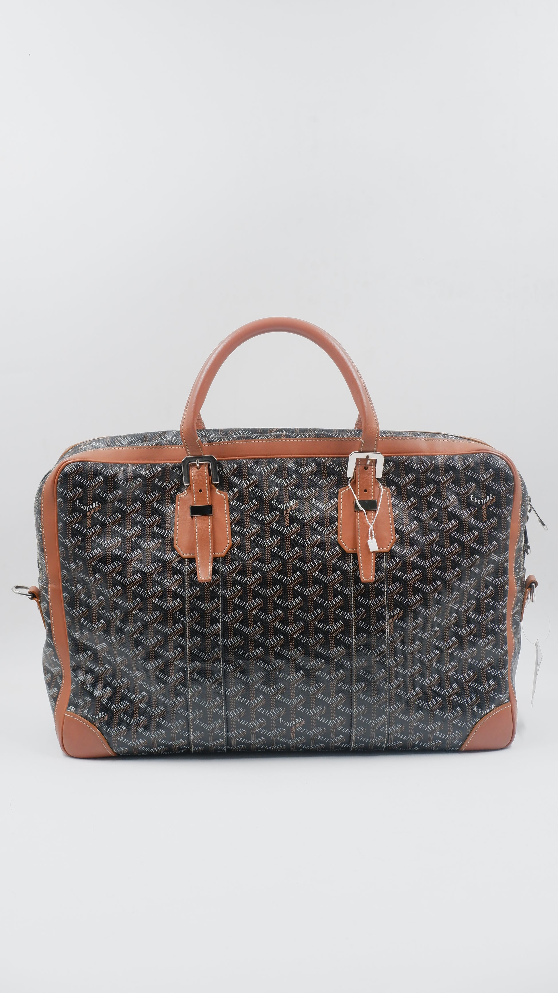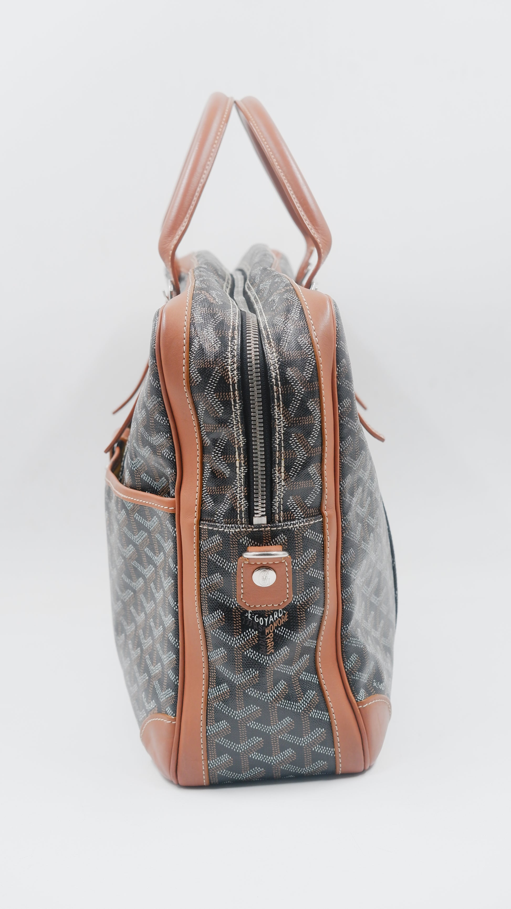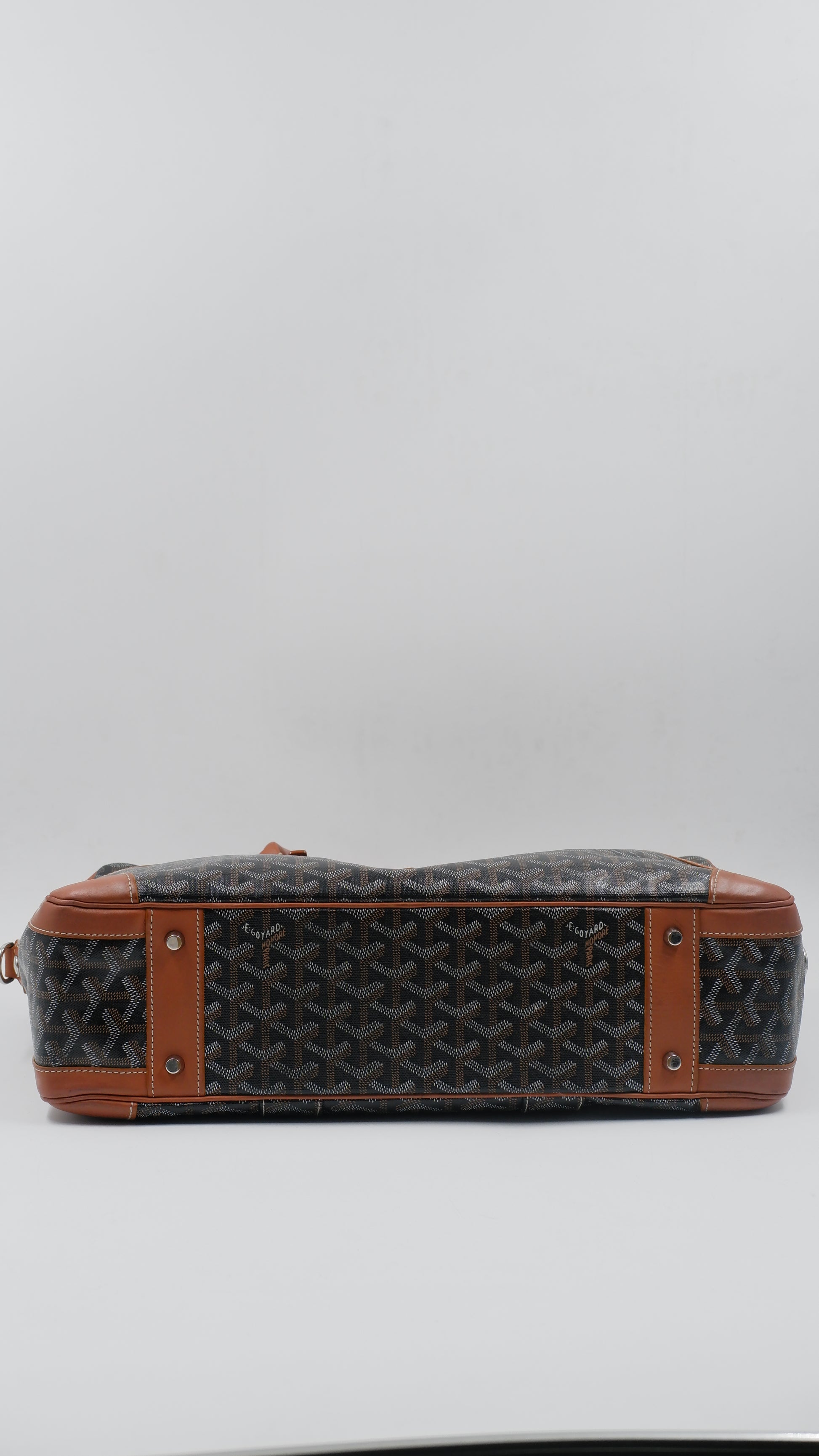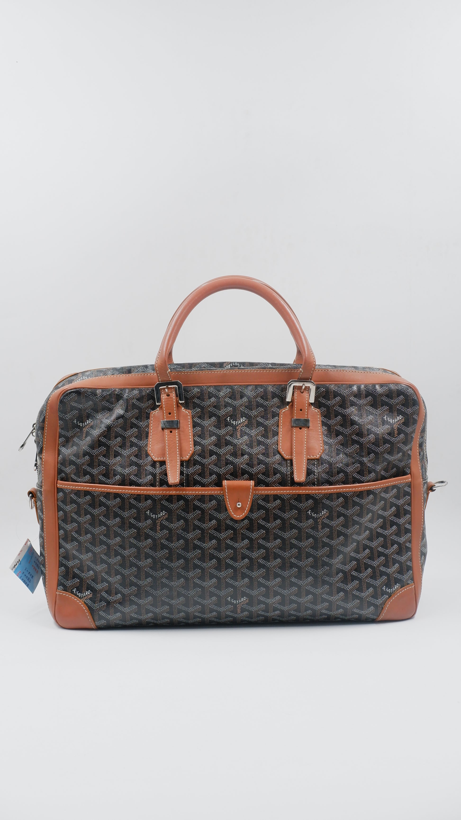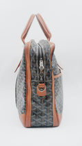 Experience timeless elegance with the Ambassade PM Briefcase, crafted in France from luxurious Goyardine canvas. This piece boasts a pristine mint condition both inside and out, reflecting meticulous care and quality. Its sophisticated black and tan color palette is complemented by sleek silver hardware, offering a refined, professional look. Measuring L16 x W4.5 x H12, it provides ample space while maintaining a slim profile. Included are a strap, original box, bag organizer, and dust bag, ensuring that your briefcase is ready to impress and protect. Elevate your daily essentials with this exceptional accessory ranked A+ for condition and style.