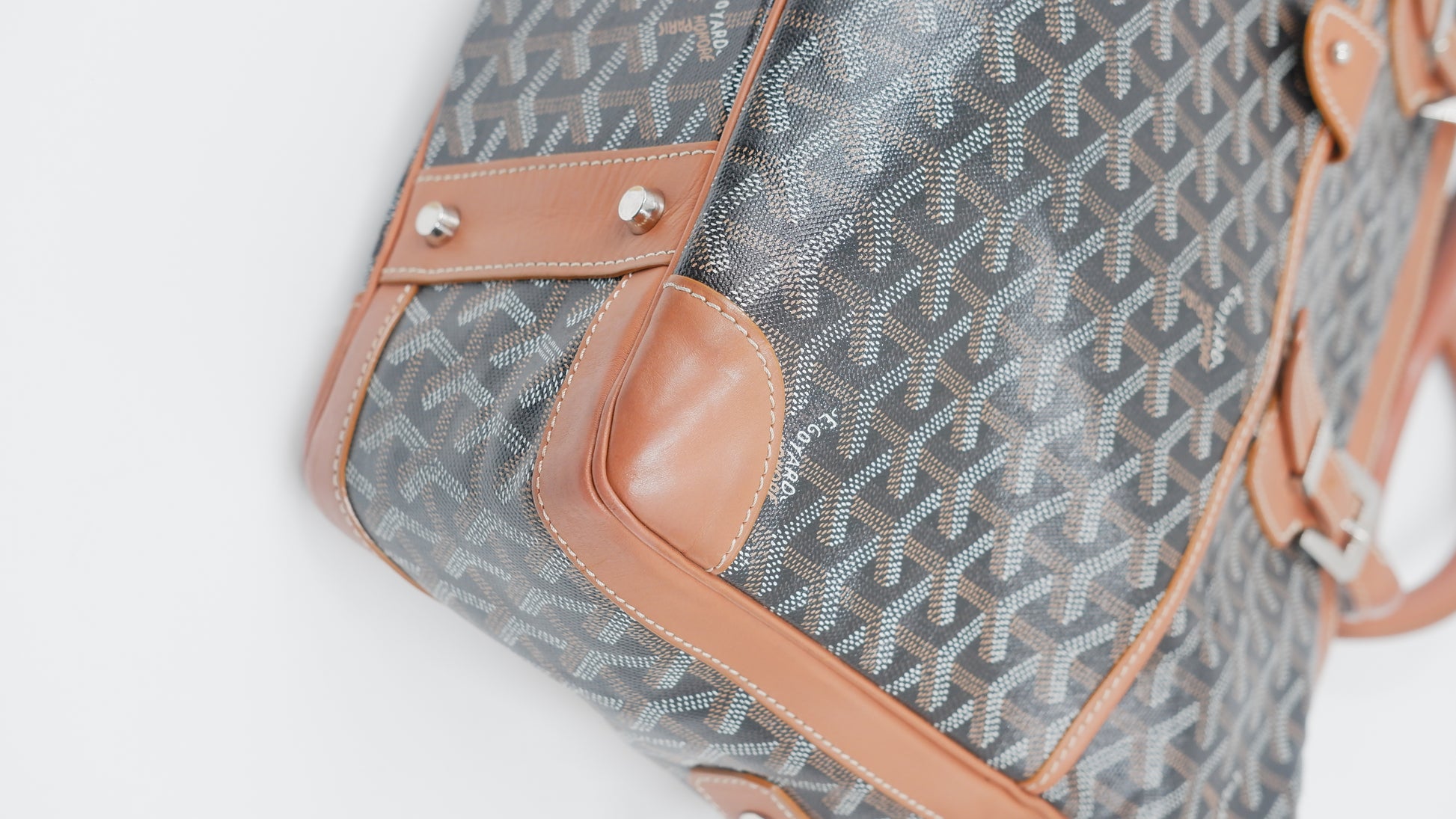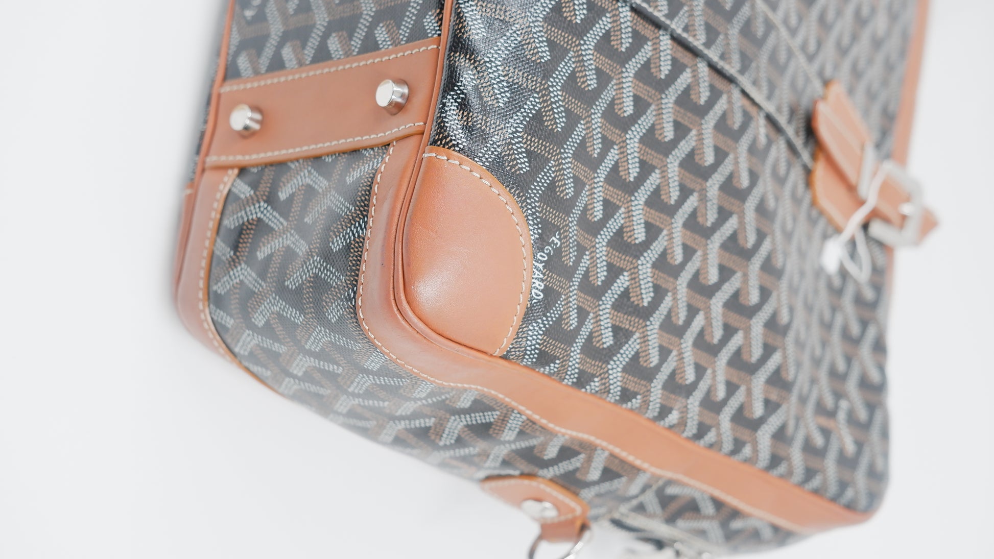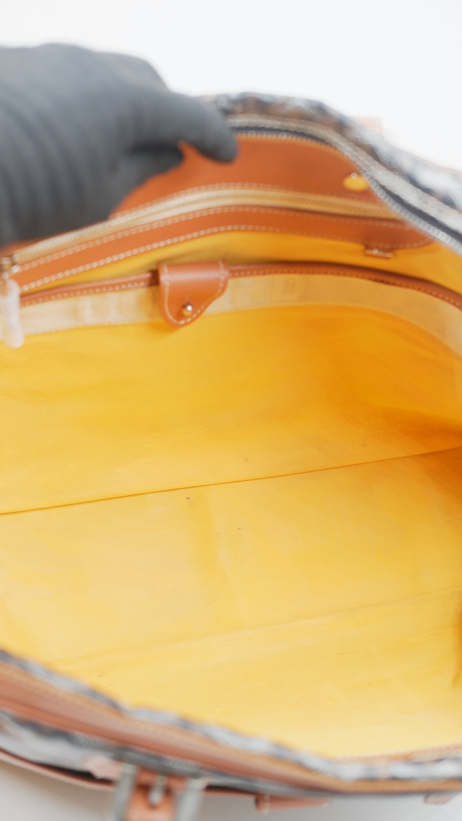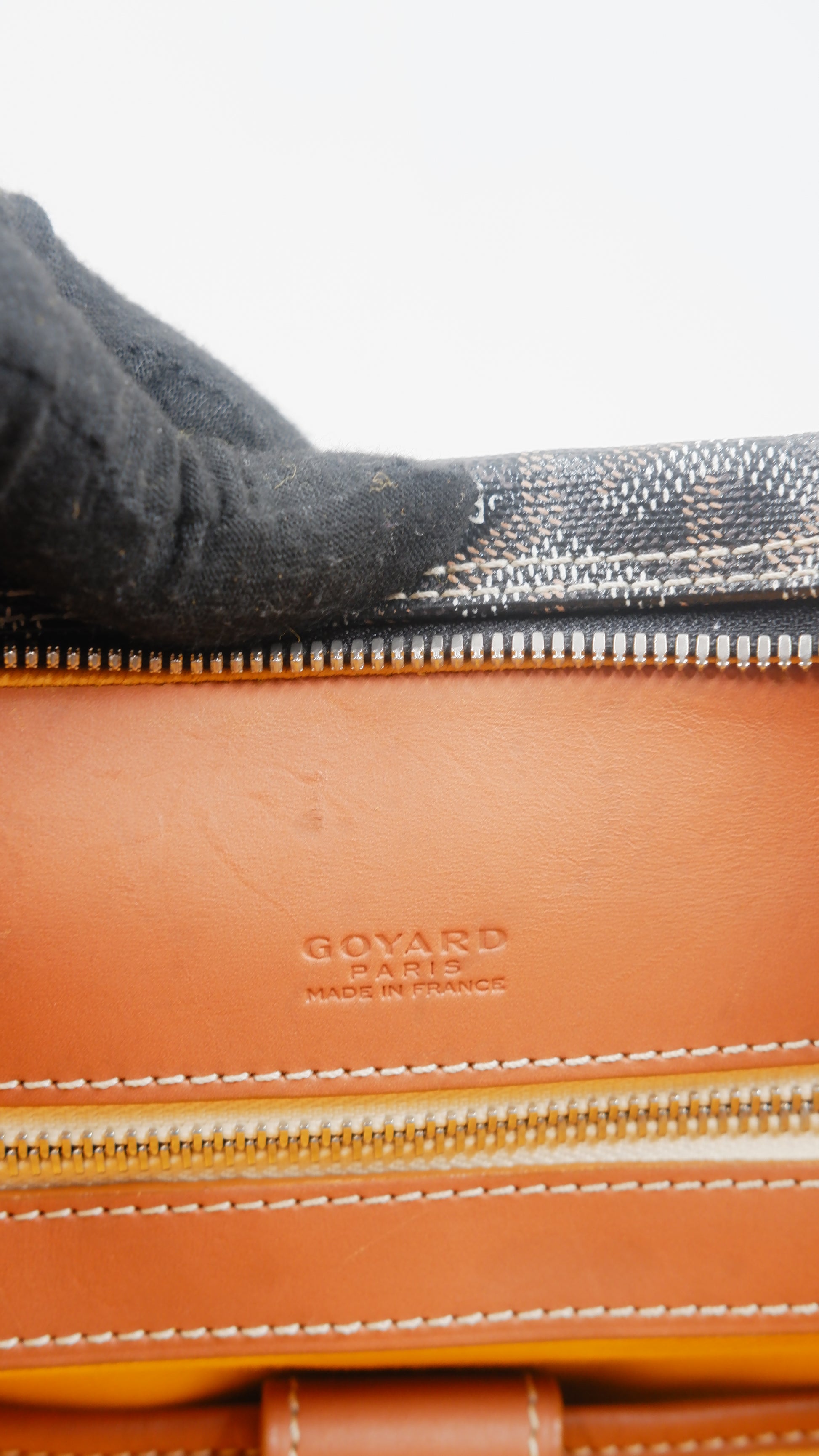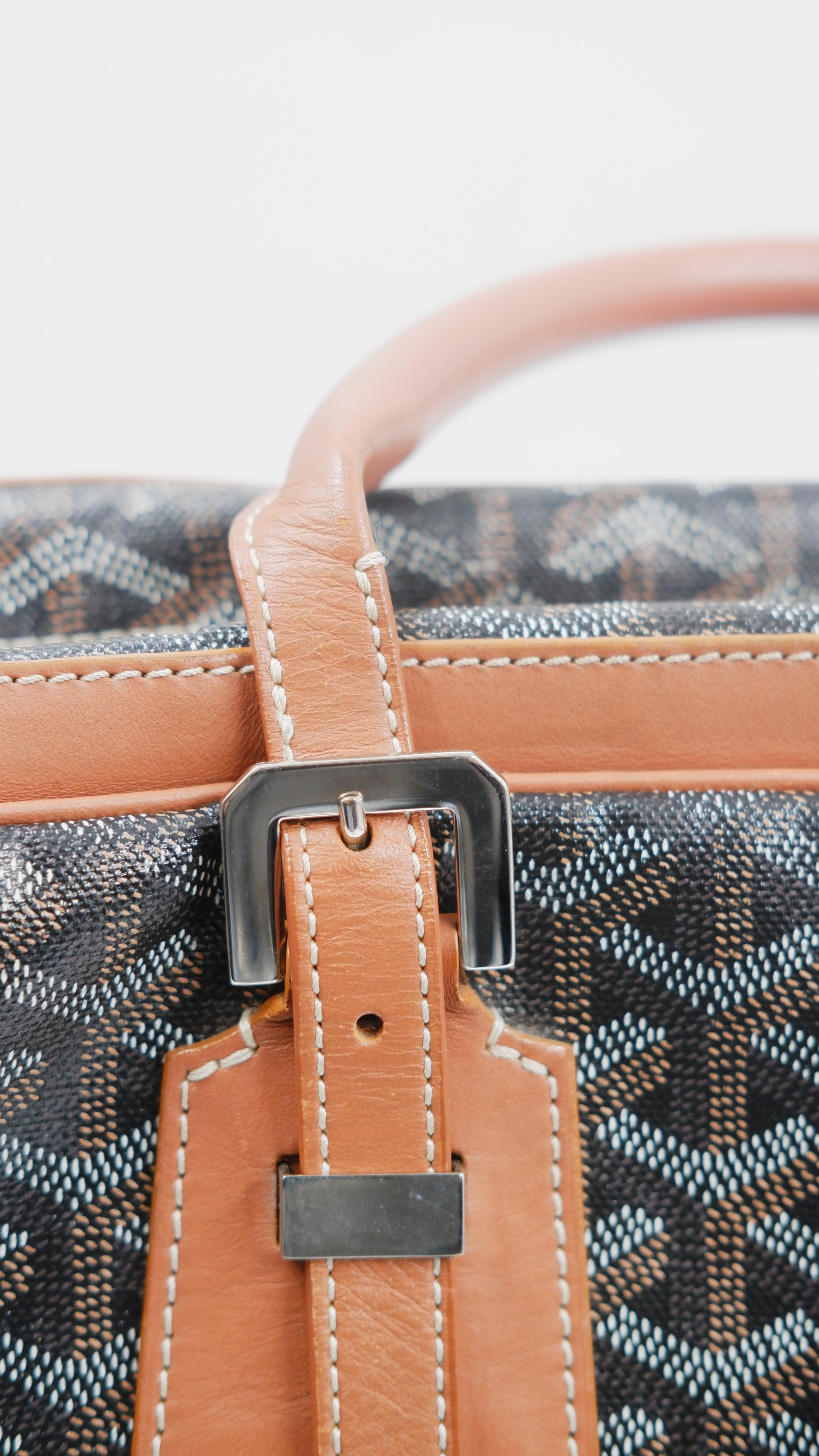 Experience timeless elegance with the Ambassade PM Briefcase, crafted in France from luxurious Goyardine canvas. This piece boasts a pristine mint condition both inside and out, reflecting meticulous care and quality. Its sophisticated black and tan color palette is complemented by sleek silver hardware, offering a refined, professional look. Measuring L16 x W4.5 x H12, it provides ample space while maintaining a slim profile. Included are a strap, original box, bag organizer, and dust bag, ensuring that your briefcase is ready to impress and protect. Elevate your daily essentials with this exceptional accessory ranked A+ for condition and style.