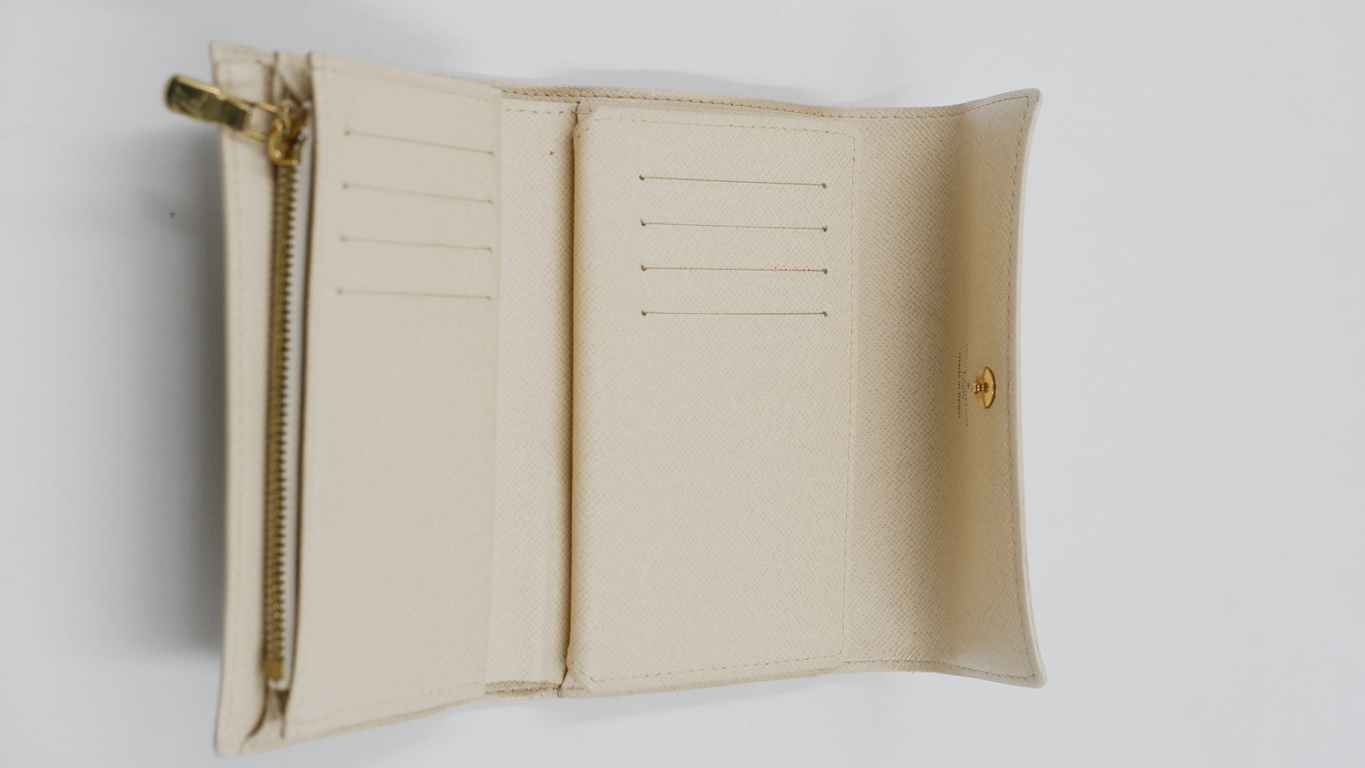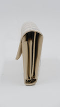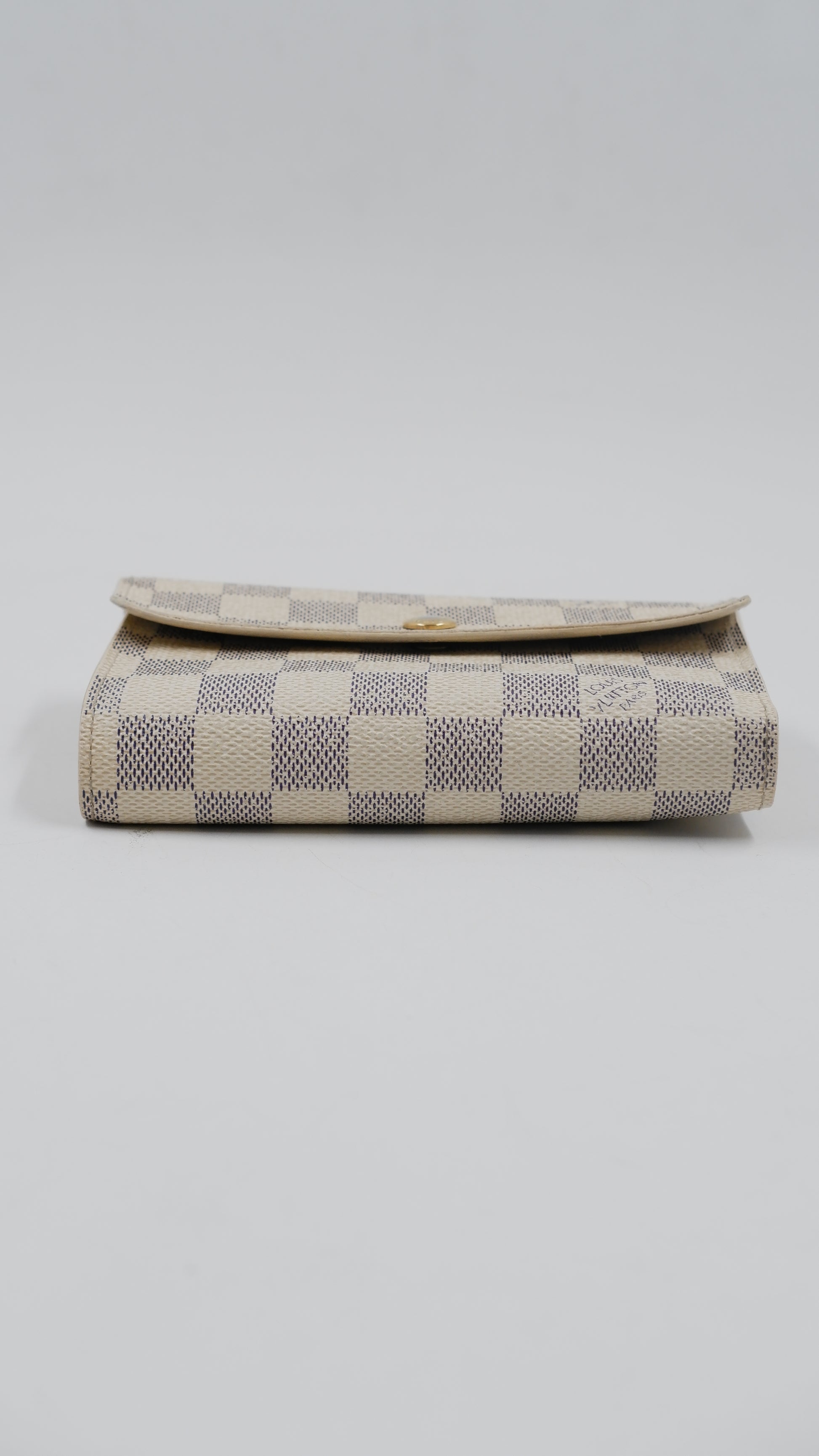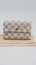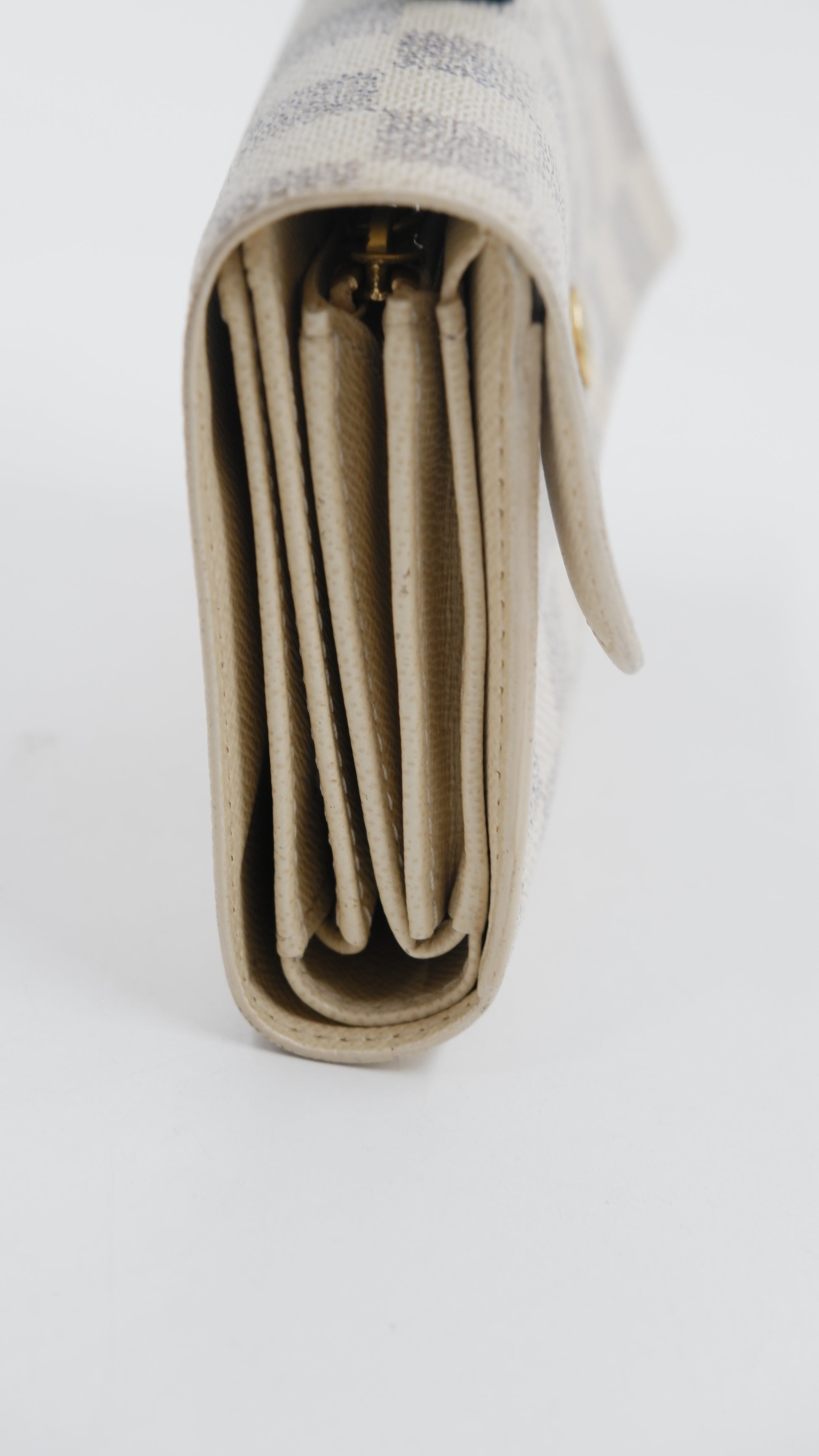 Experience refined elegance with the Azure Compact Wallet, expertly crafted in Spain from a luxurious blend of canvas and leather. This sophisticated accessory features a stunning grey and beige color palette complemented by gleaming gold hardware, adding a touch of timeless style to your collection. Meticulously maintained, it boasts excellent condition both inside and out, reflecting its high-quality craftsmanship. Compact yet practical, it measures L6 x H4, ideal for organizing essentials without sacrificing elegance. Included with your purchase is the original dust bag to preserve its pristine state, making this wallet a distinguished choice for the discerning individual.