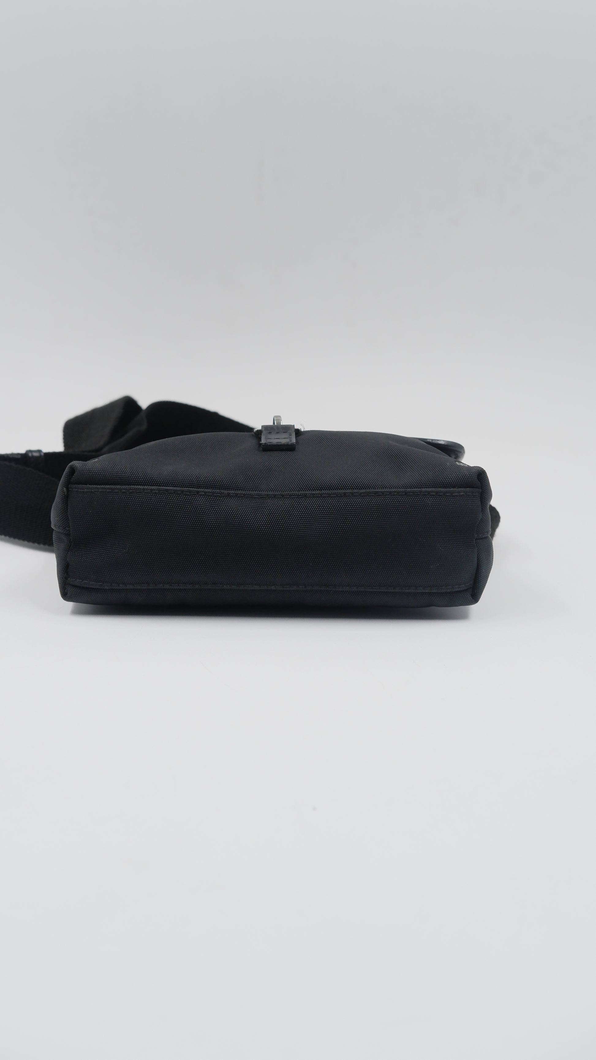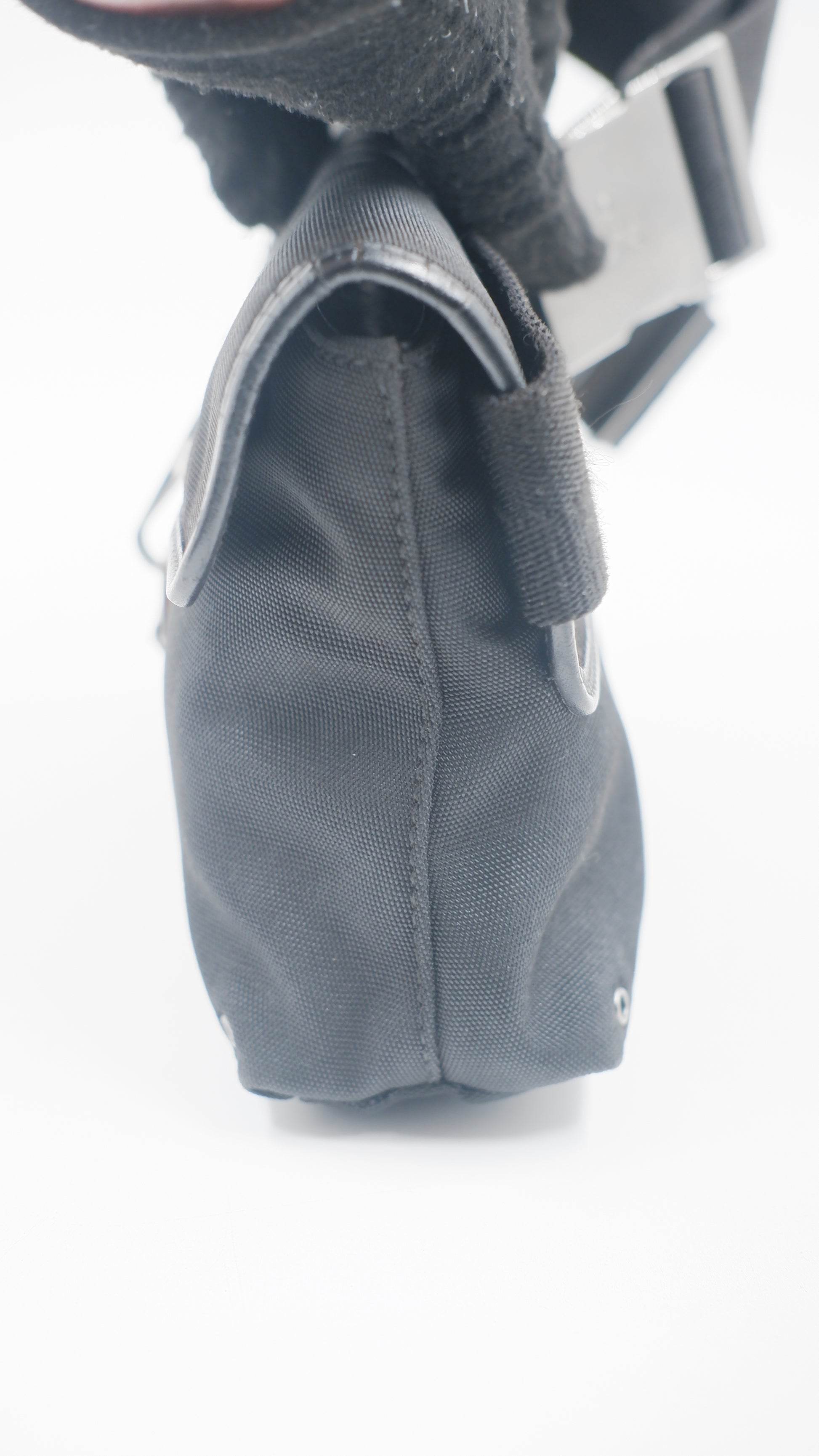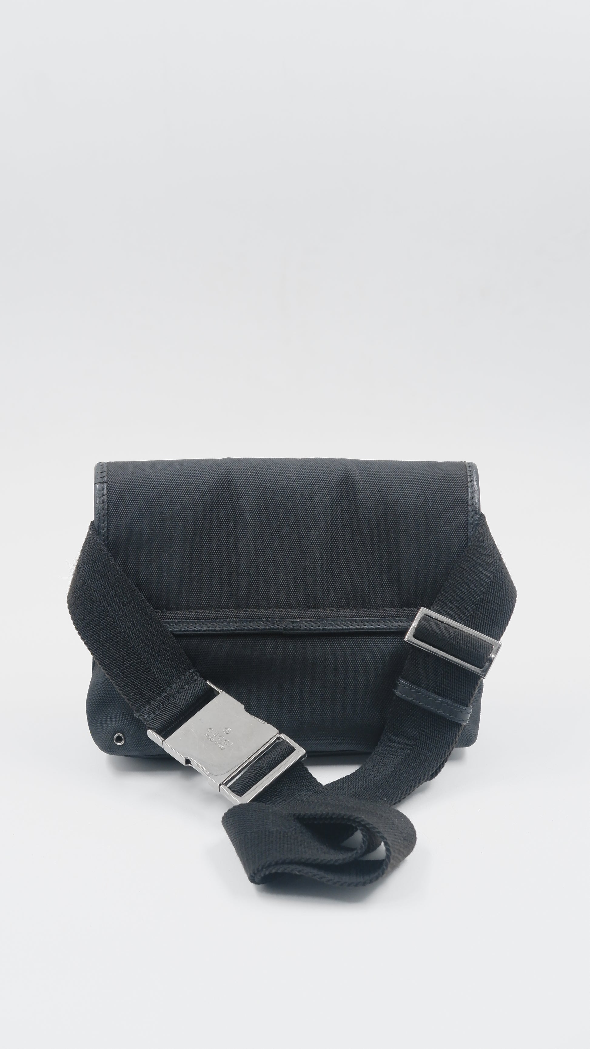 Elevate your accessory collection with this exquisitely crafted Beltbag, made in Italy from durable black nylon that combines both style and practicality. The bag features silver hardware accents that add a refined touch to its sleek silhouette. With dimensions measuring L7 x W2 x H6, it offers a compact yet functional space ideal for carrying essentials securely. This piece is in very good condition overall, including both the exterior and interior, reflecting careful use and excellent maintenance. Completing the package is the original dust bag, ensuring that your Beltbag remains protected when not in use. A timeless addition for the discerning individual.