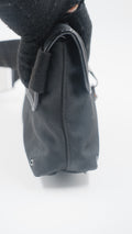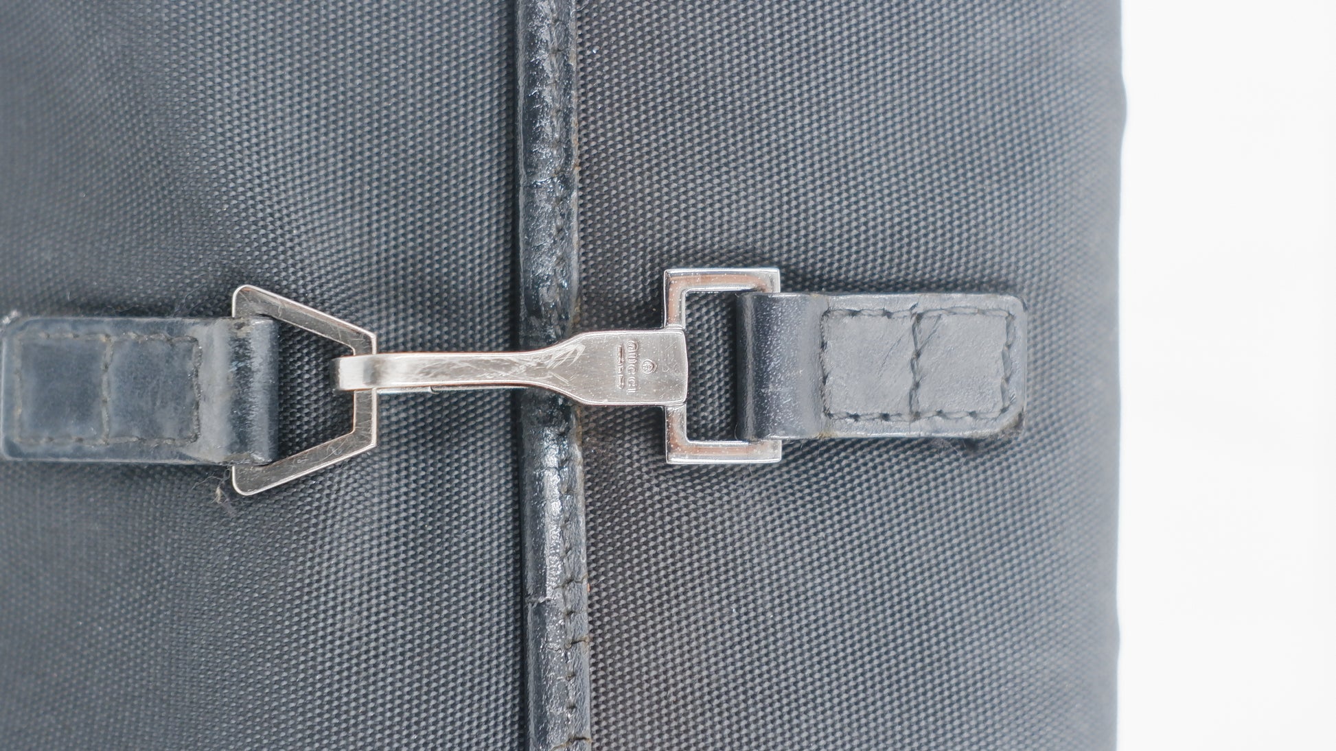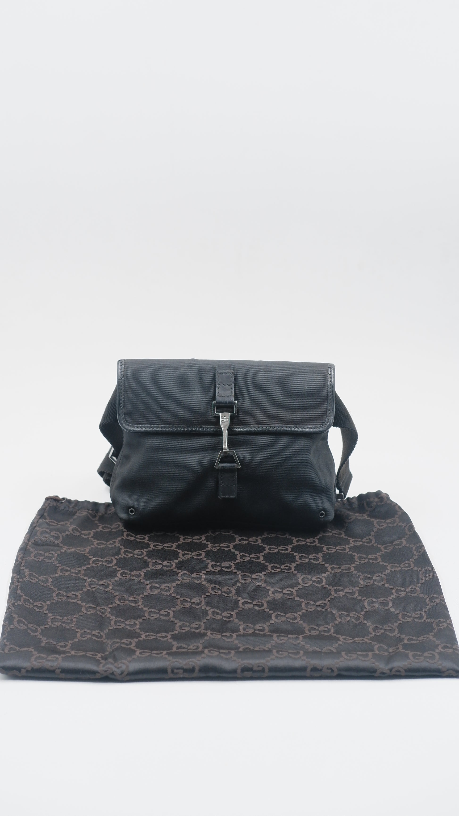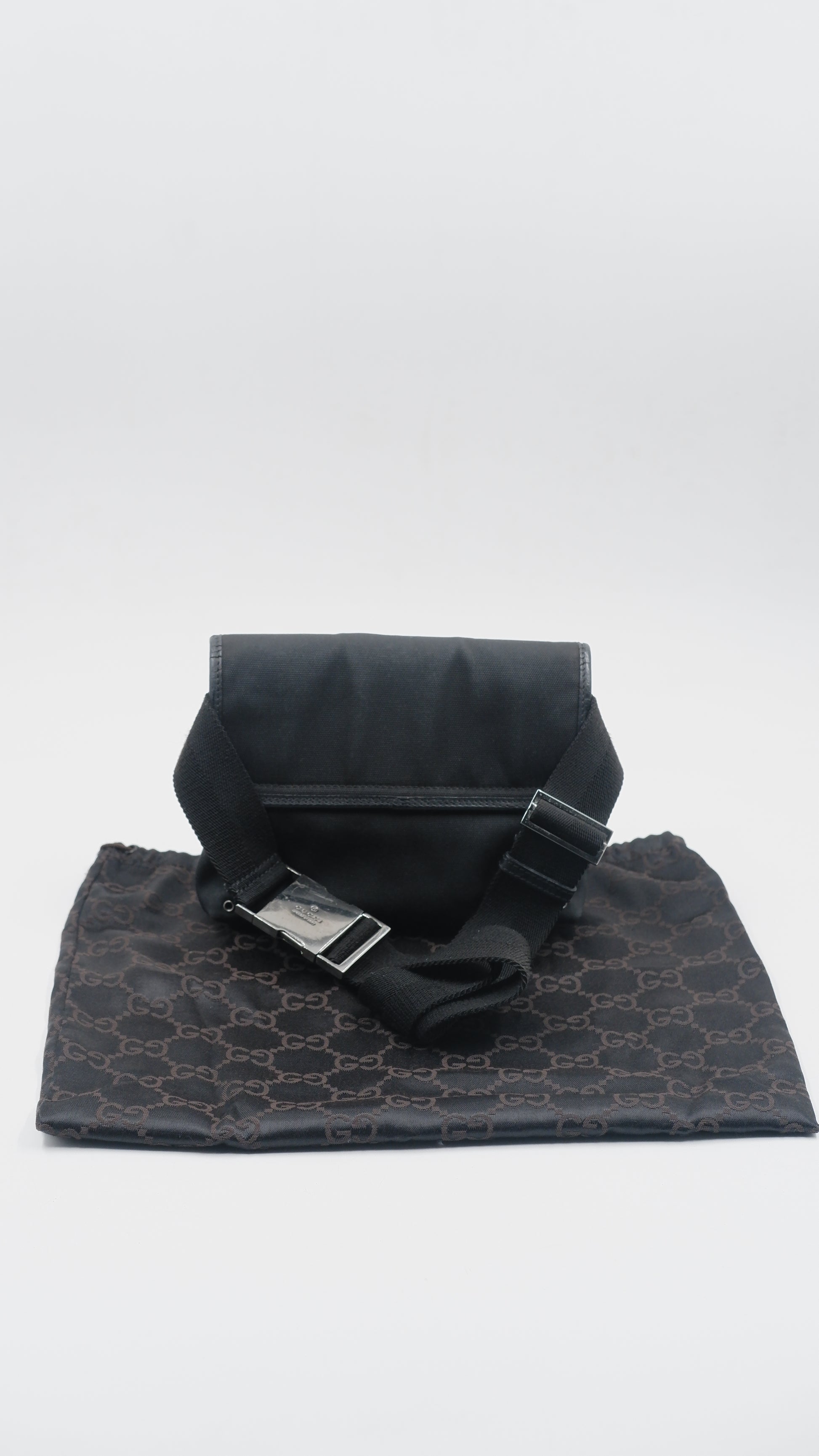 Elevate your accessory collection with this exquisitely crafted Beltbag, made in Italy from durable black nylon that combines both style and practicality. The bag features silver hardware accents that add a refined touch to its sleek silhouette. With dimensions measuring L7 x W2 x H6, it offers a compact yet functional space ideal for carrying essentials securely. This piece is in very good condition overall, including both the exterior and interior, reflecting careful use and excellent maintenance. Completing the package is the original dust bag, ensuring that your Beltbag remains protected when not in use. A timeless addition for the discerning individual.