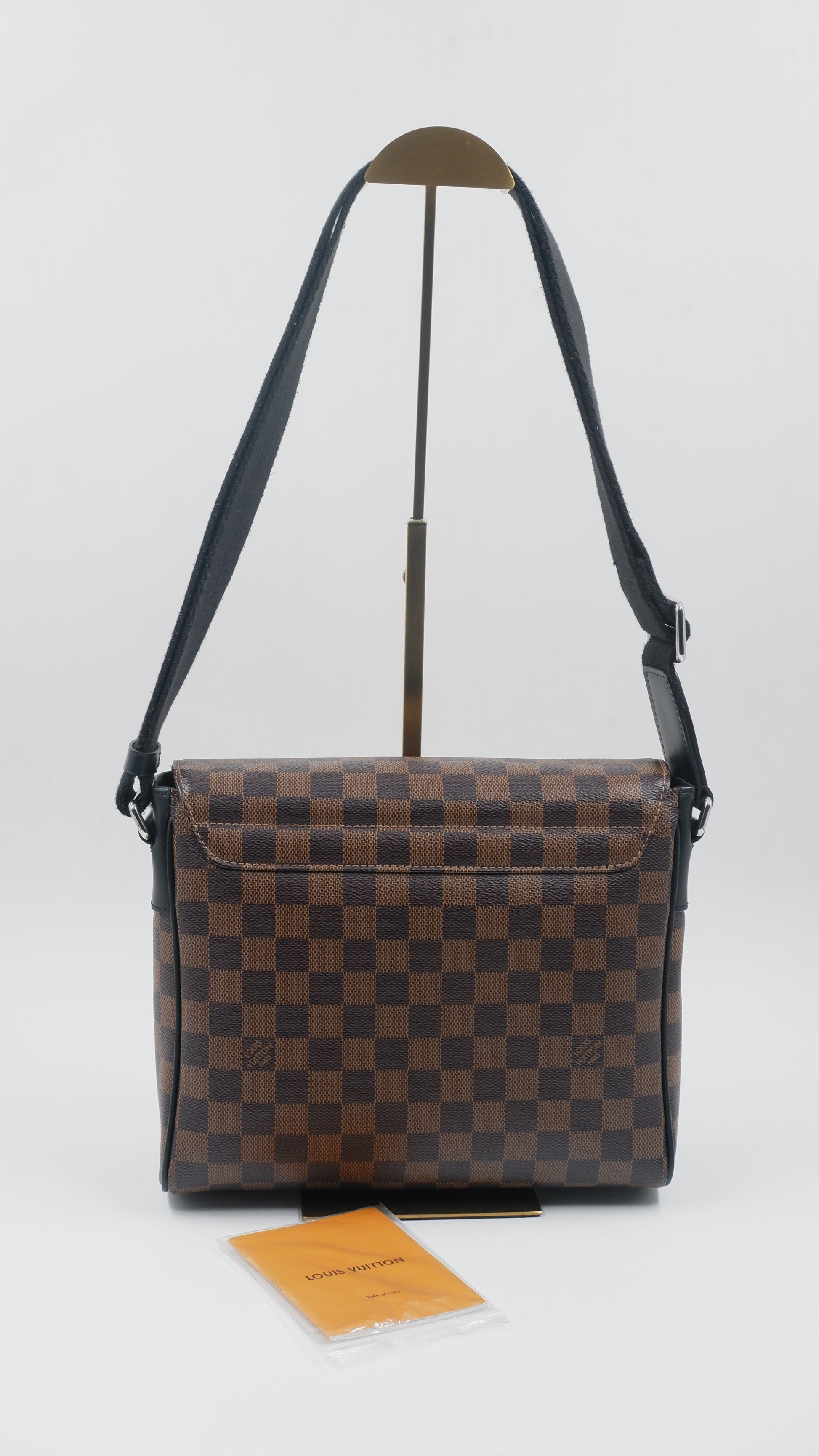 Experience timeless elegance with the DE Messenger Bag, crafted from premium DE coated canvas in a rich brown hue. Featuring silver hardware, this bag effortlessly blends style with function, offering spacious dimensions of 10.1” L x 3.1” W x 8.5” H. Meticulously maintained and classified in like-new condition both inside and out, it ensures durability and a refined aesthetic. Made in France, it comes complete with a care booklet and a protective dust bag, making it an exquisite addition to any sophisticated wardrobe. Perfect for those who appreciate superior quality and subtle luxury in everyday accessories.