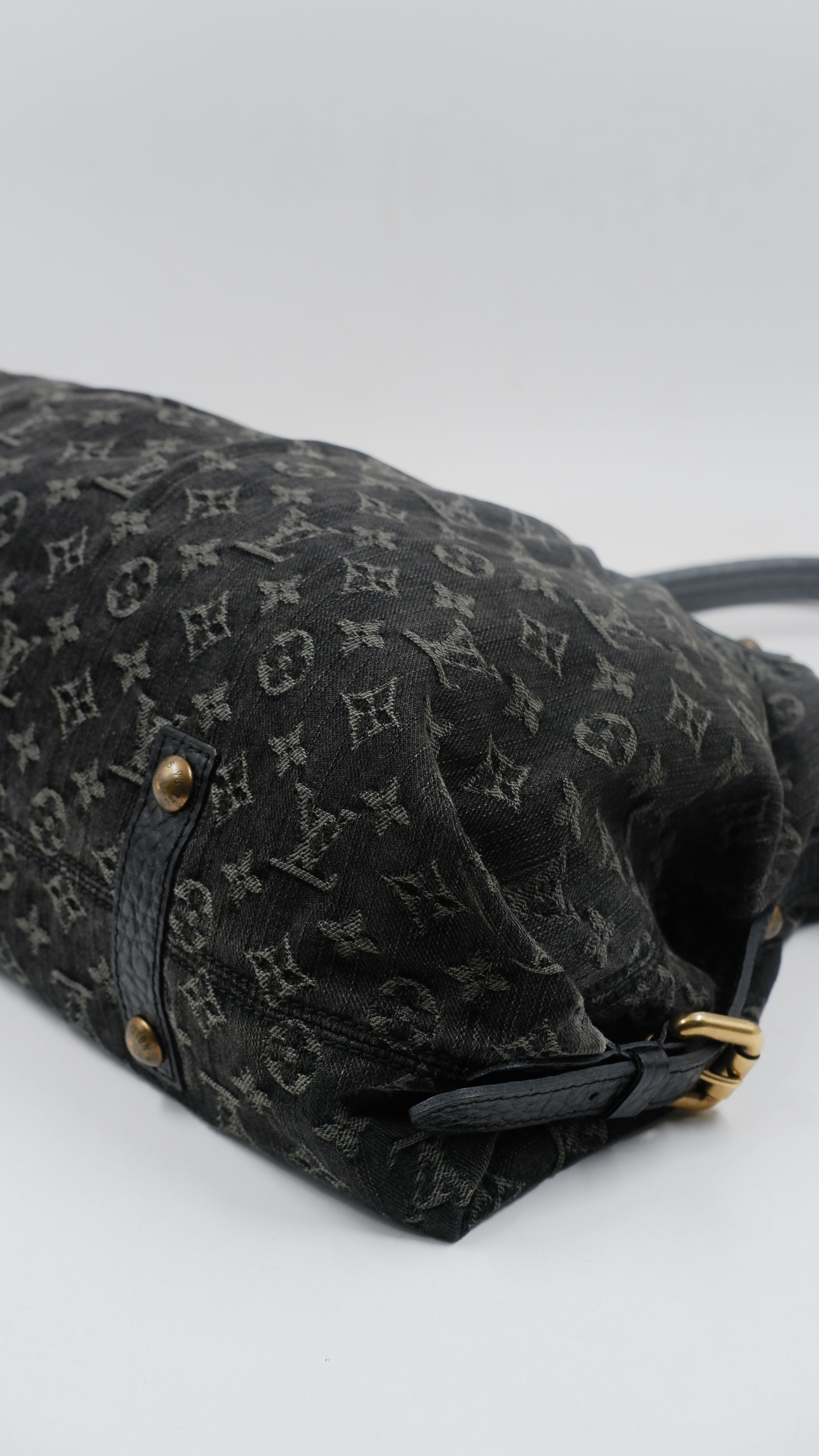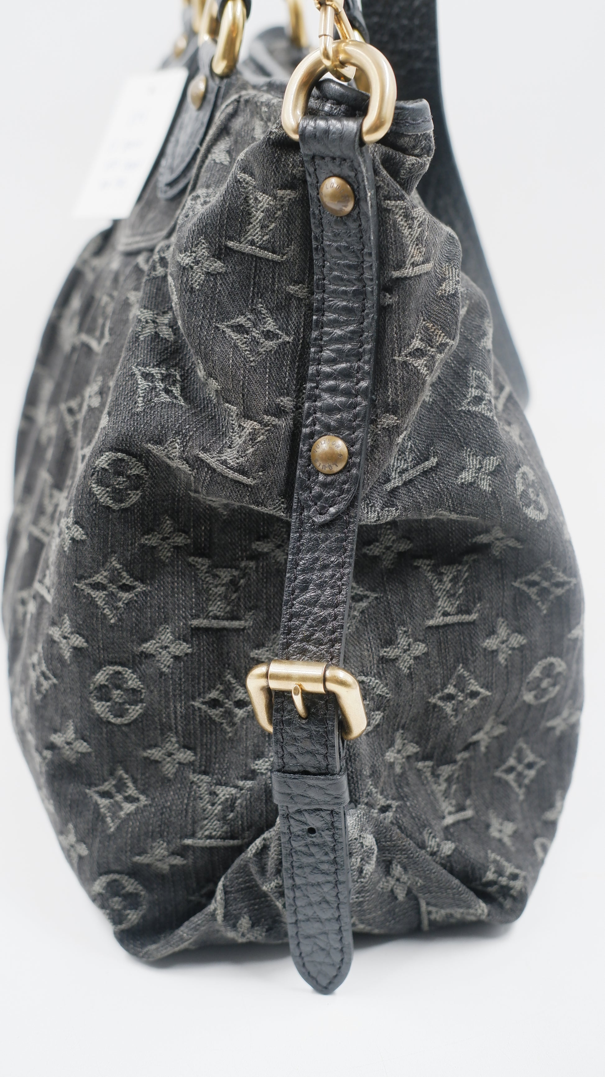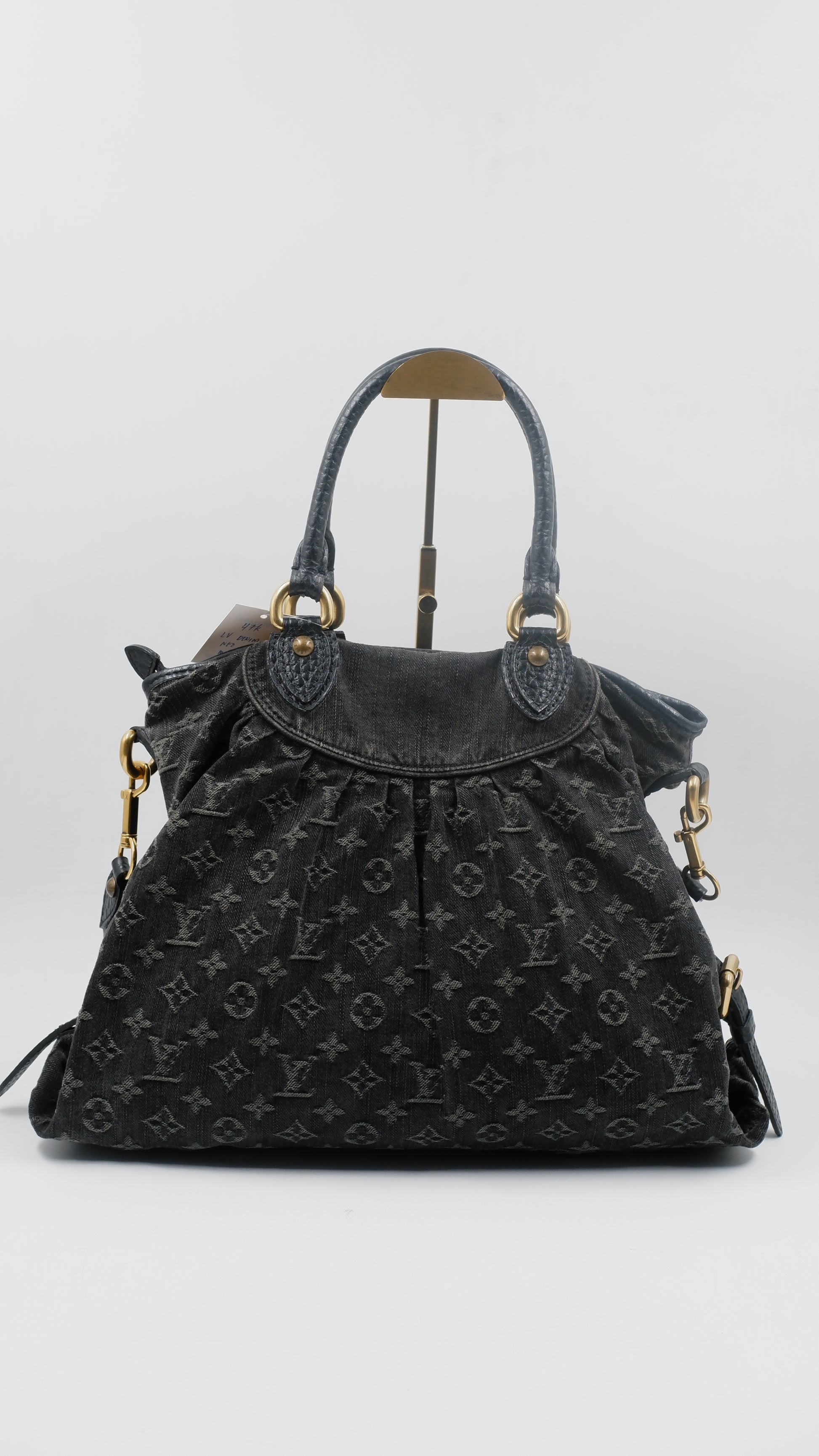 The Denim Neo Cabby MM Bag embodies timeless elegance crafted from premium Monogram Denim, reflecting exceptional quality with its flawless exterior and interior condition. Expertly made in France and adorned with gleaming gold hardware, this sophisticated black bag measures a practical L17 x W5.5 x H12 cm, offering ample space while maintaining a chic silhouette. Included are a matching strap for versatile wear and a dust bag to preserve its pristine condition. Perfect for those who appreciate understated luxury and refined craftsmanship, this bag promises both style and durability for everyday use or special occasions.
