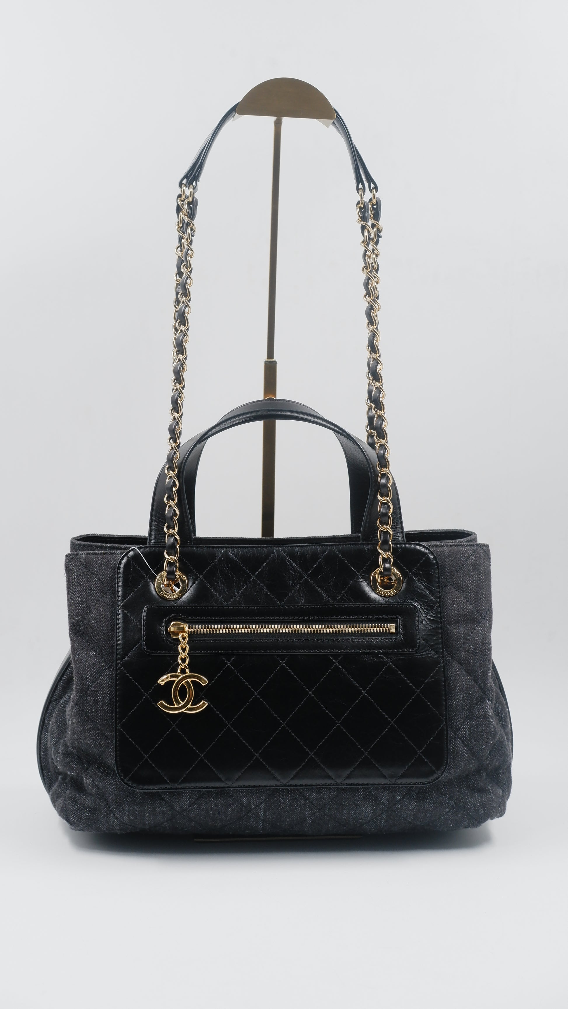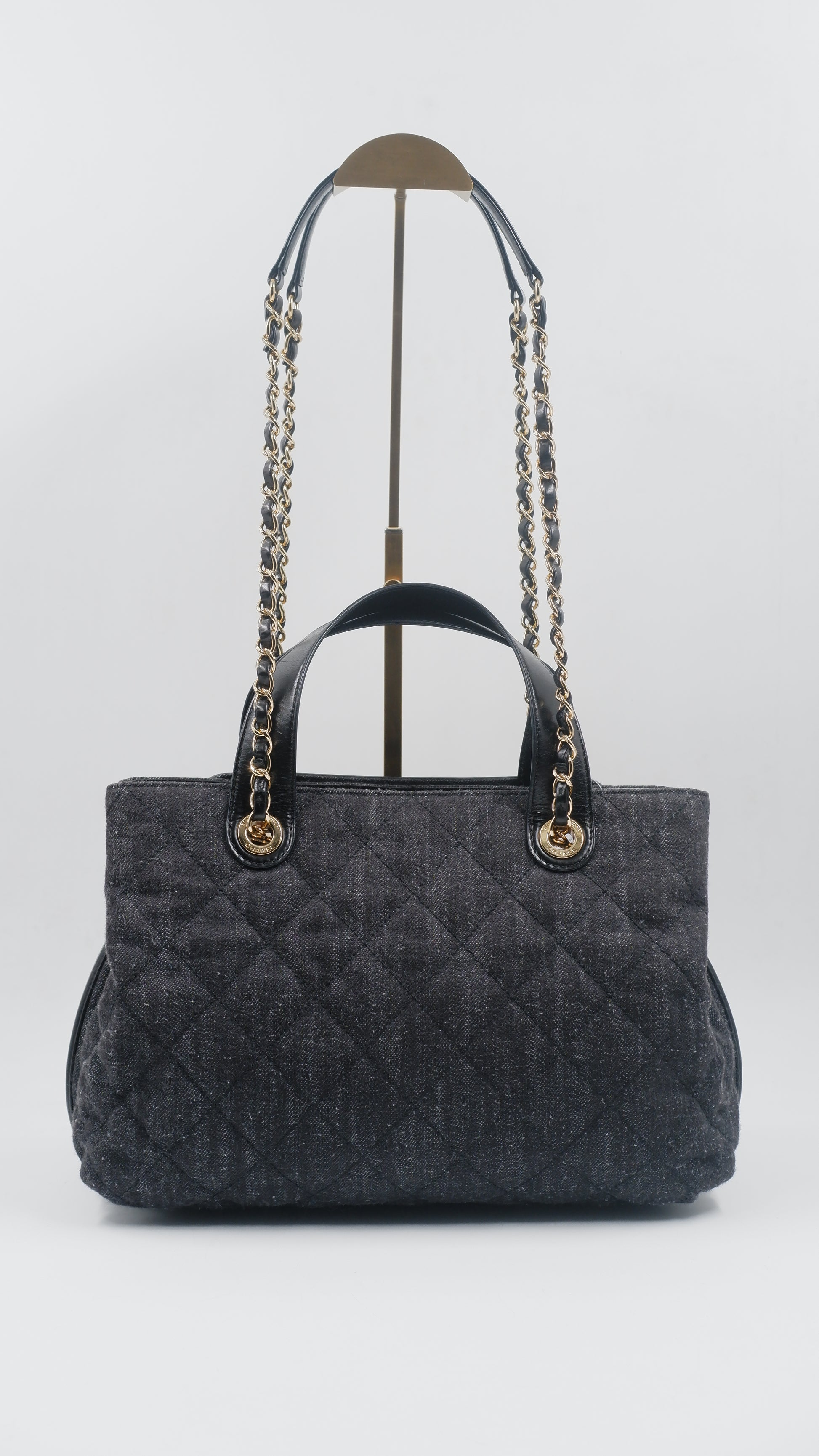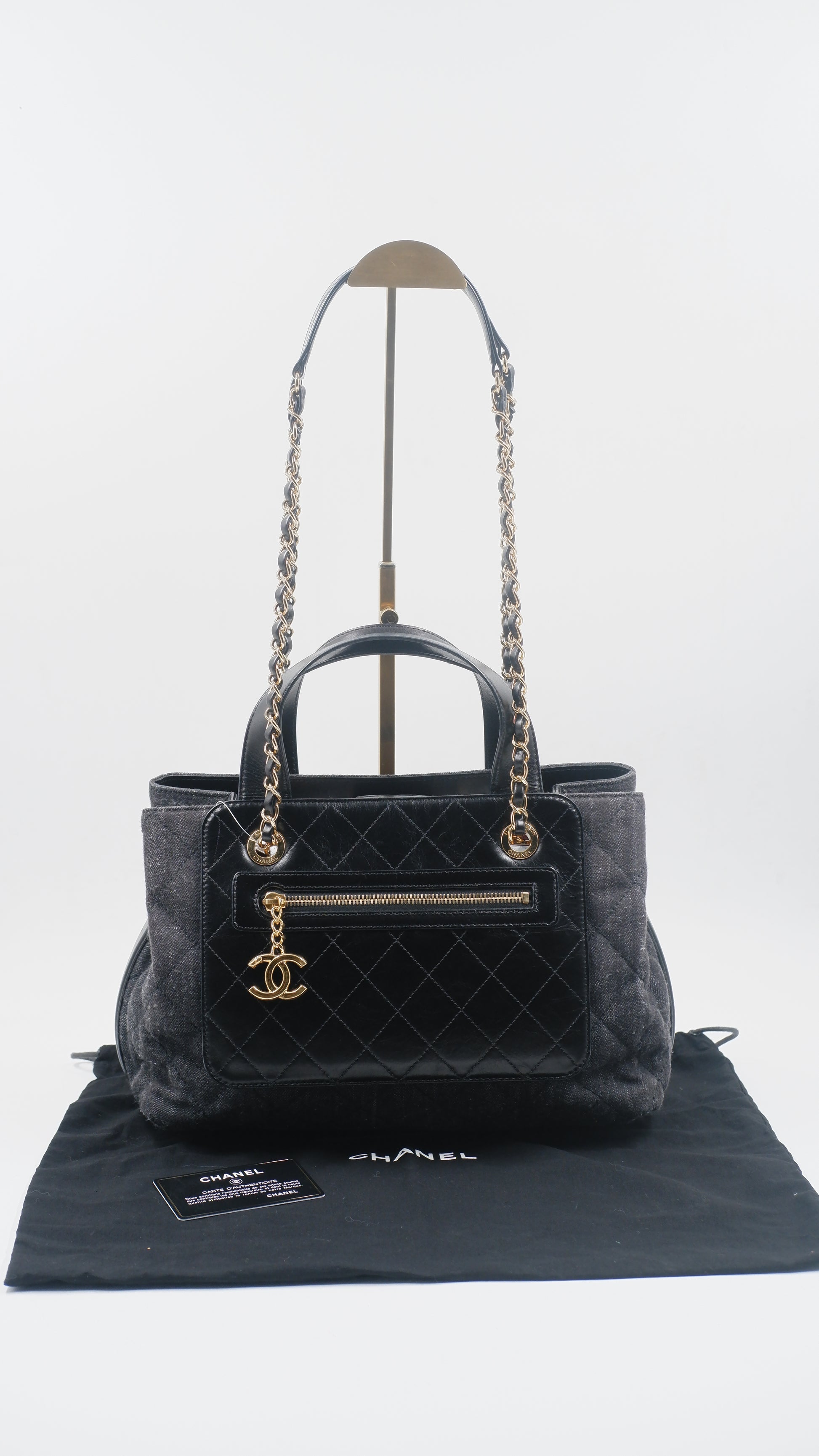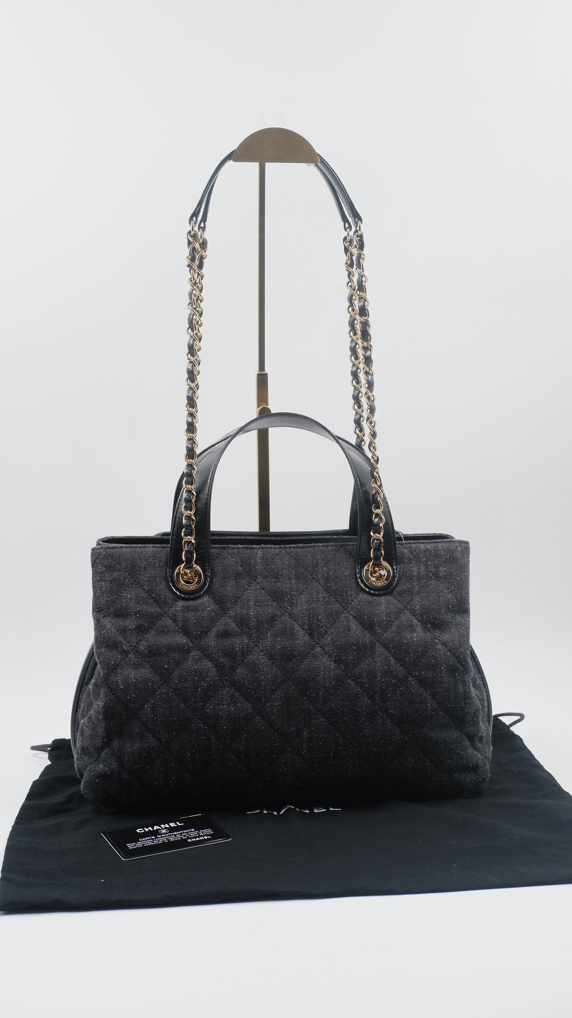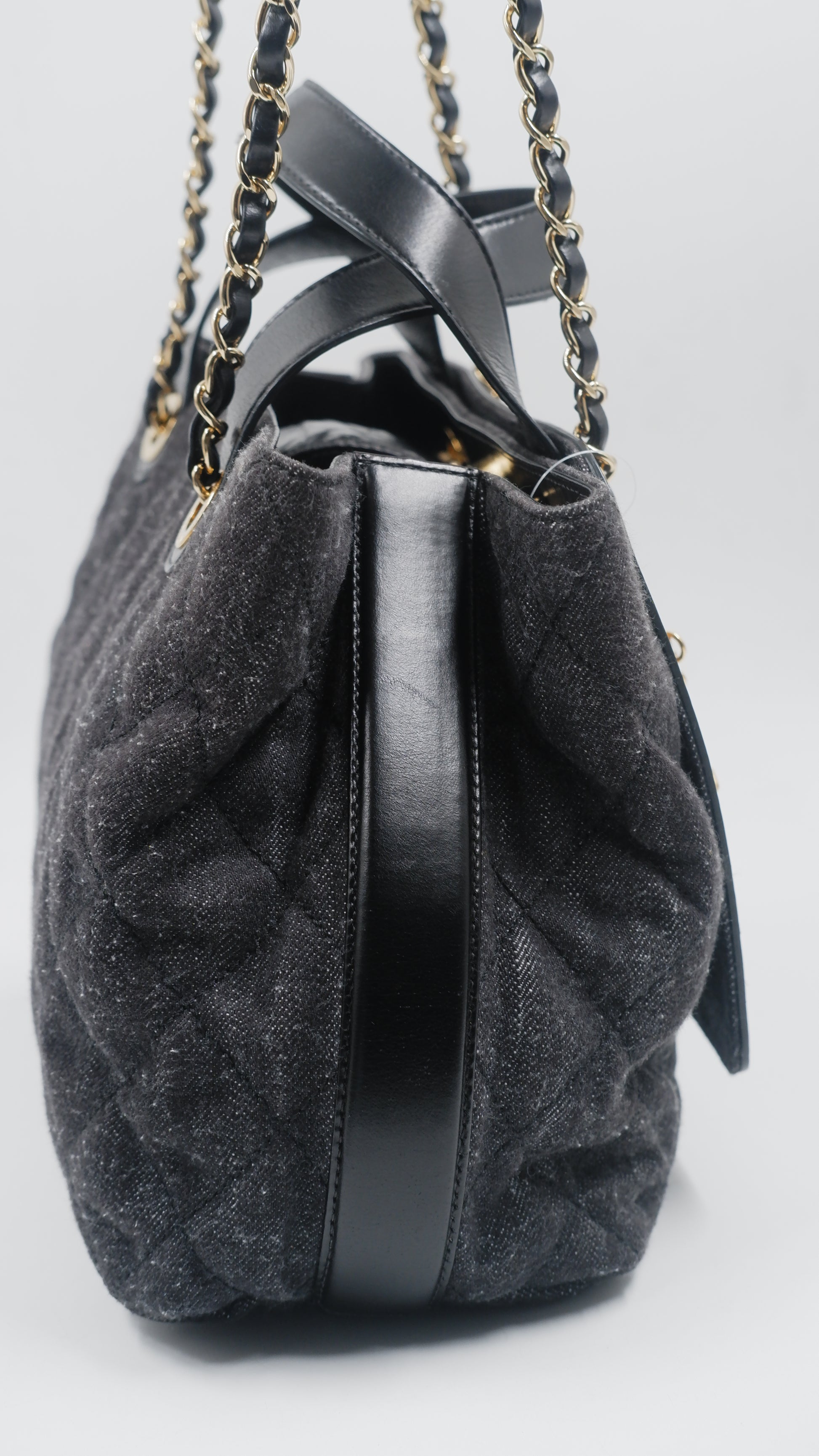 Experience elegance with the Denim Quilted Shoulder Bag, a flawless blend of casual denim and luxurious lambskin leather crafted in Italy. This mint condition accessory boasts pristine exterior and interior, reflecting exceptional care and quality. Measuring L12 x W6.3 x H8.9 inches, its sophisticated black hue is complemented by gleaming gold hardware, enhancing its timeless appeal. Ideal for both day and evening wear, it offers versatility and refinement. Included are an authenticity card and original dust bag, ensuring complete confidence in your investment. Elevate your collection with this A+ ranked masterpiece that embodies effortless style and enduring luxury.