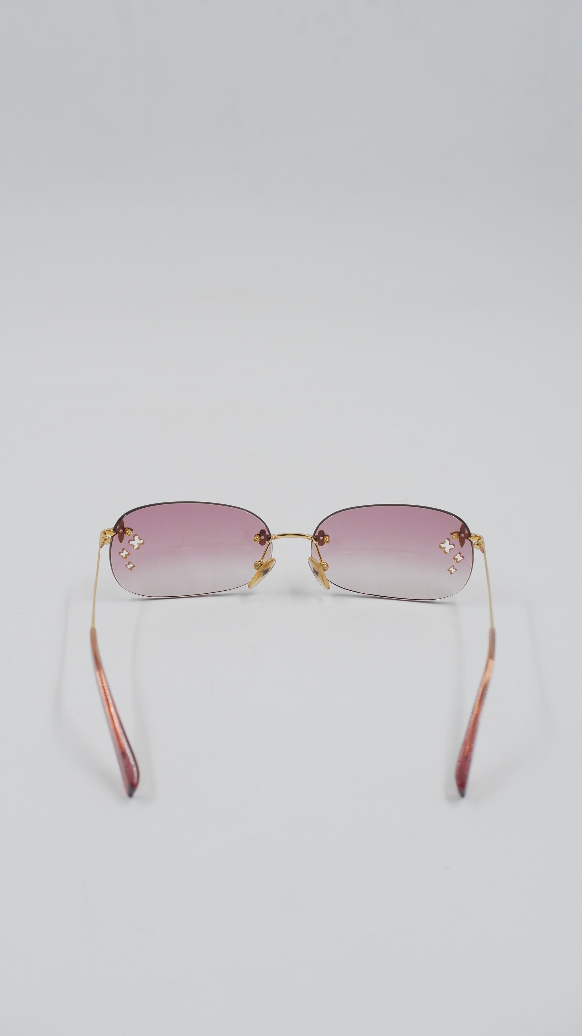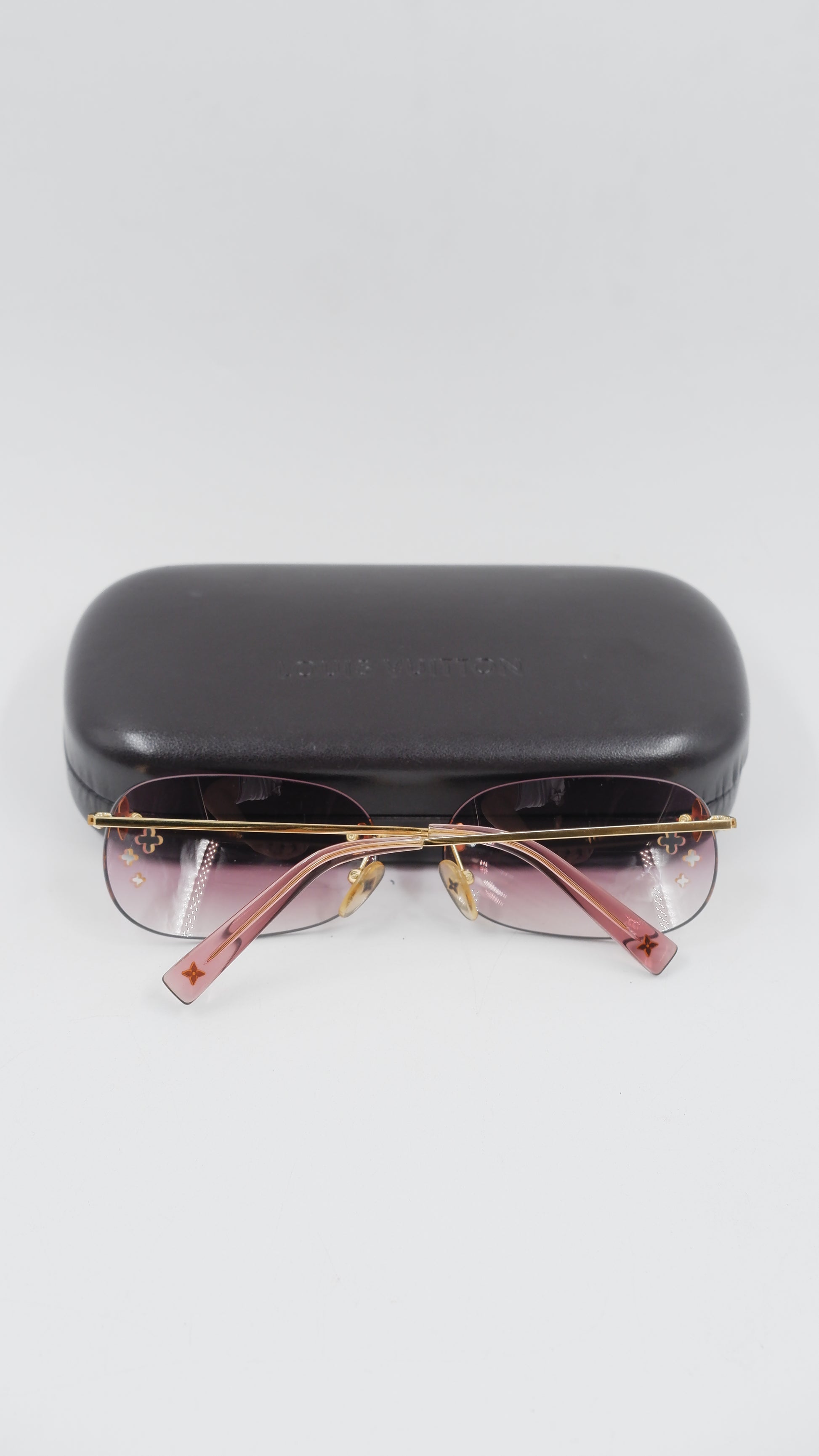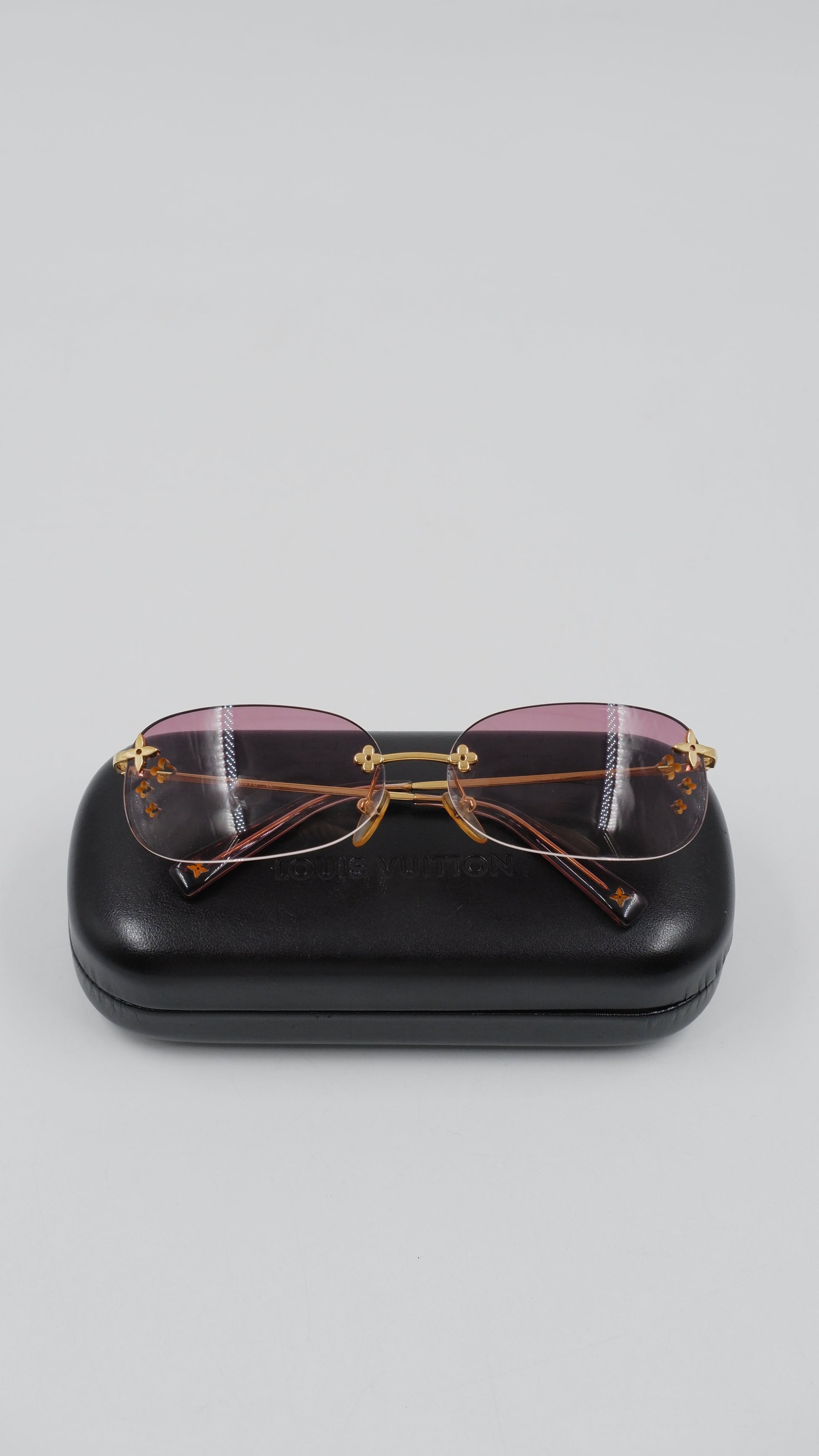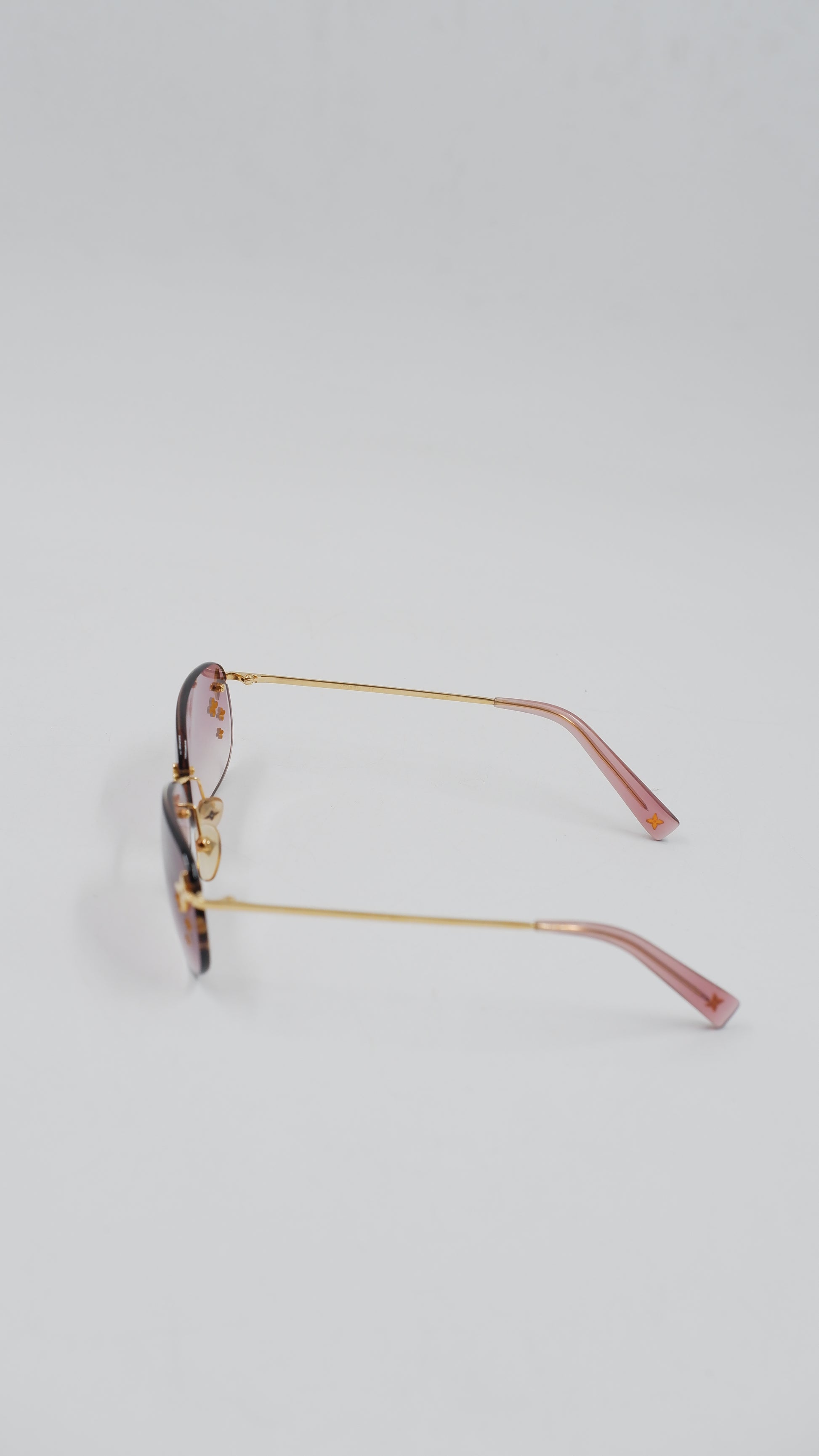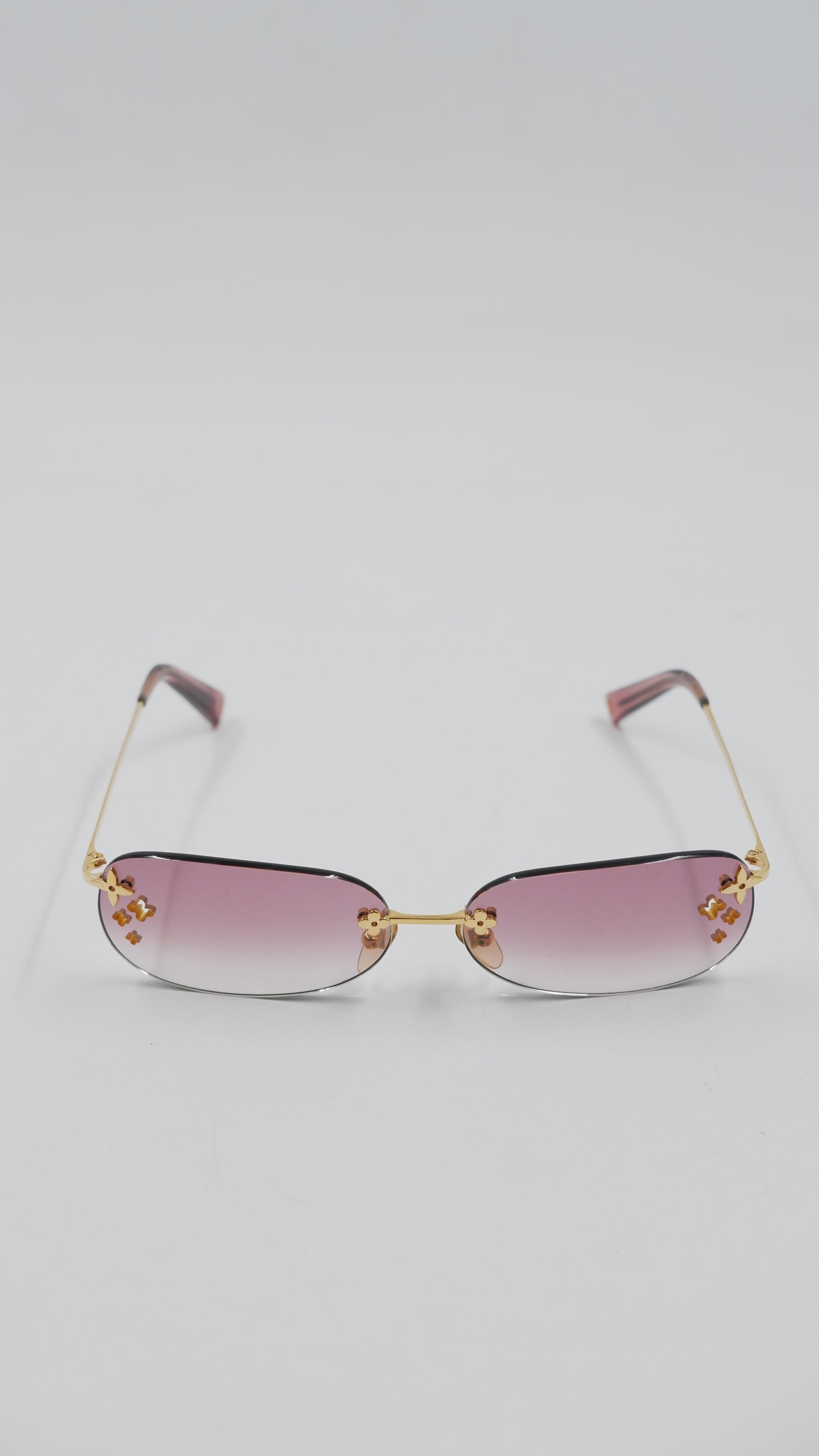 Elevate your style with the Desmayo Sunglasses, featuring a luxurious gold frame paired elegantly with soft pink lenses. These sunglasses are in superb used condition, rated as like new, ensuring you receive impeccable quality and timeless appeal. Included with your purchase is the original case, protecting your investment while adding to the sophisticated charm. Perfect for adding a subtle touch of color and refinement to any ensemble, these glasses blend fashion and function effortlessly. Whether for sunny city strolls or chic outdoor events, Desmayo offers unparalleled grace and durability.