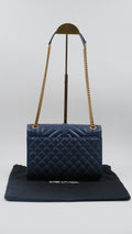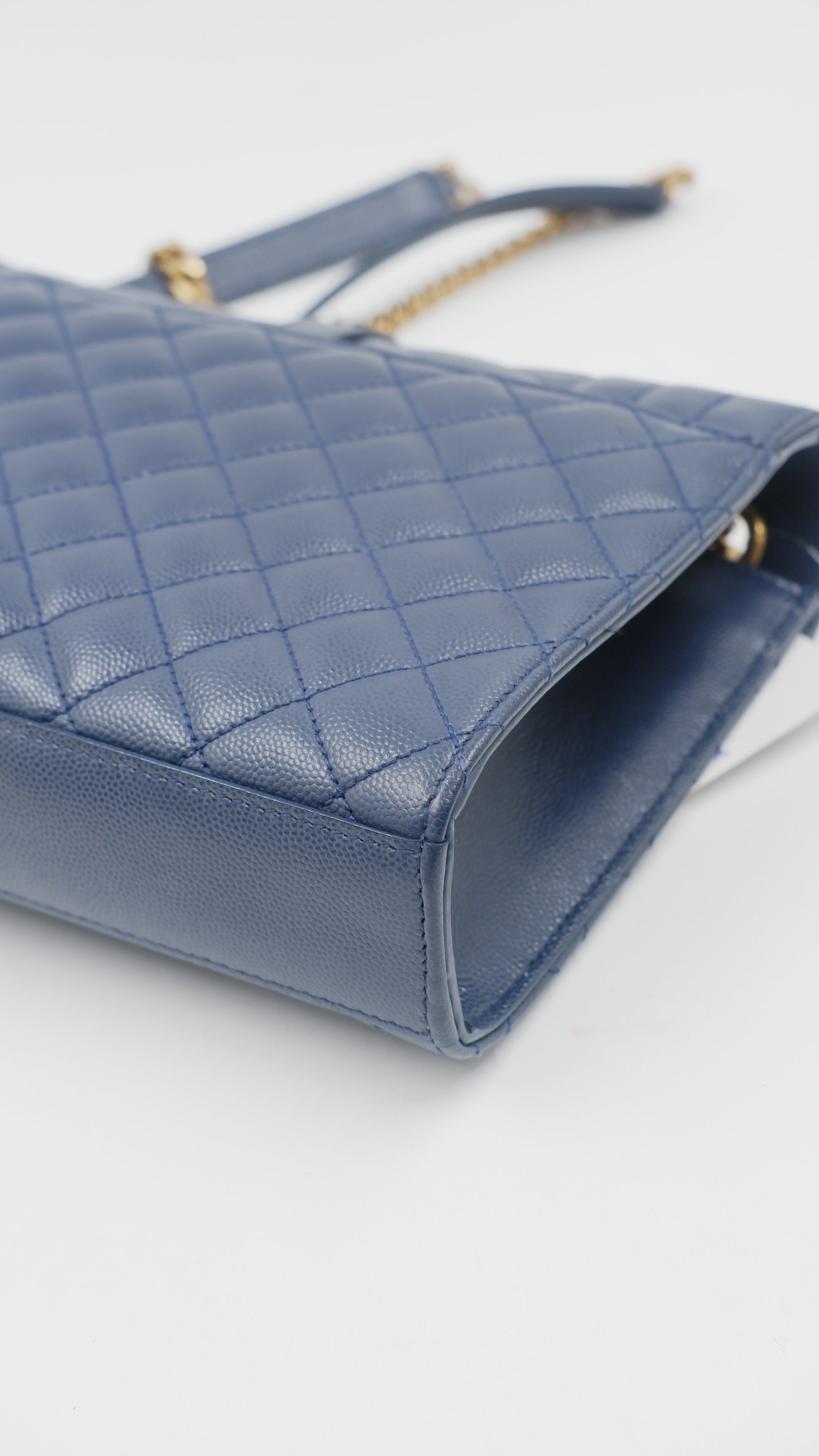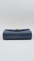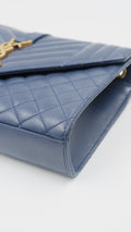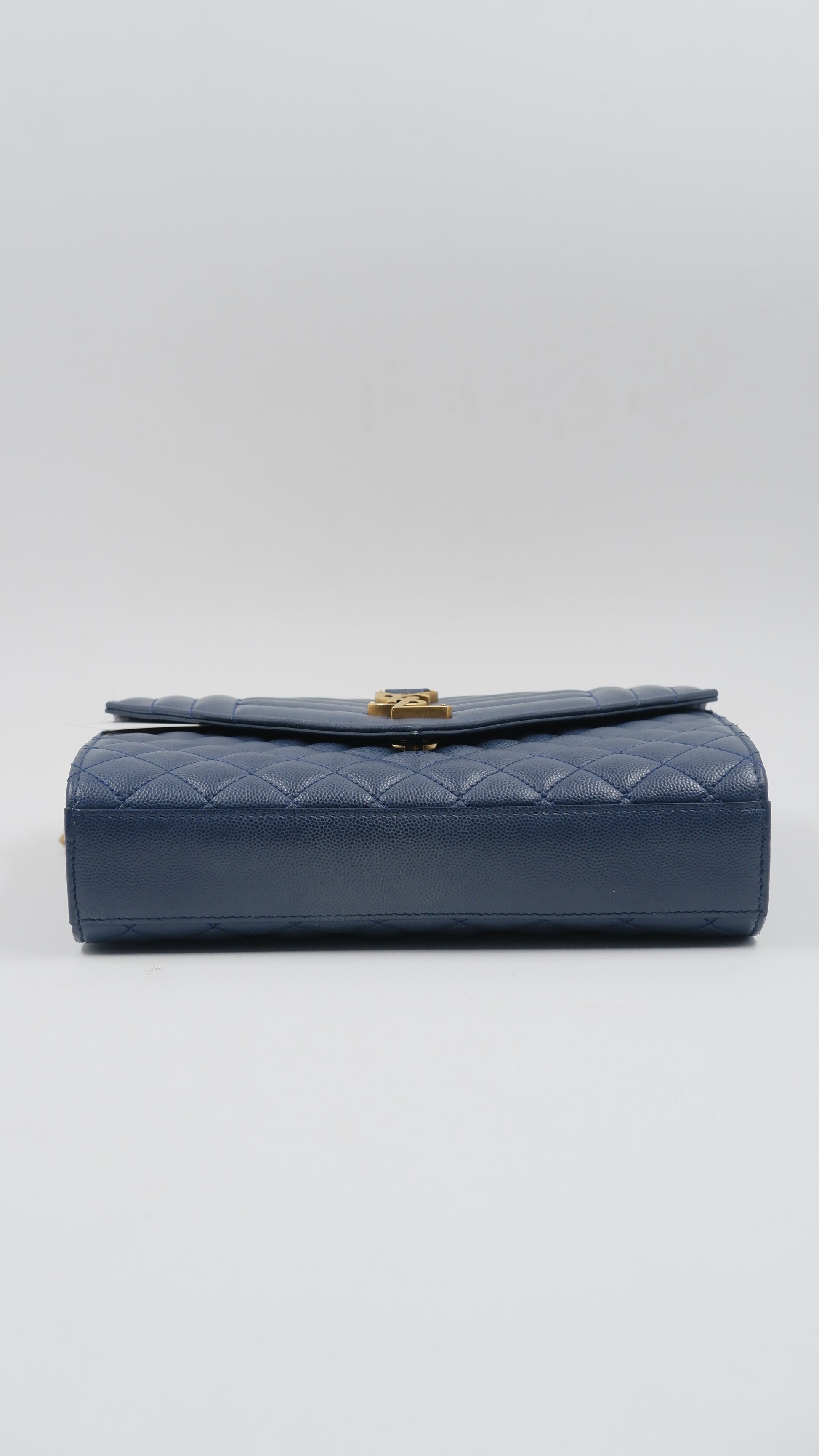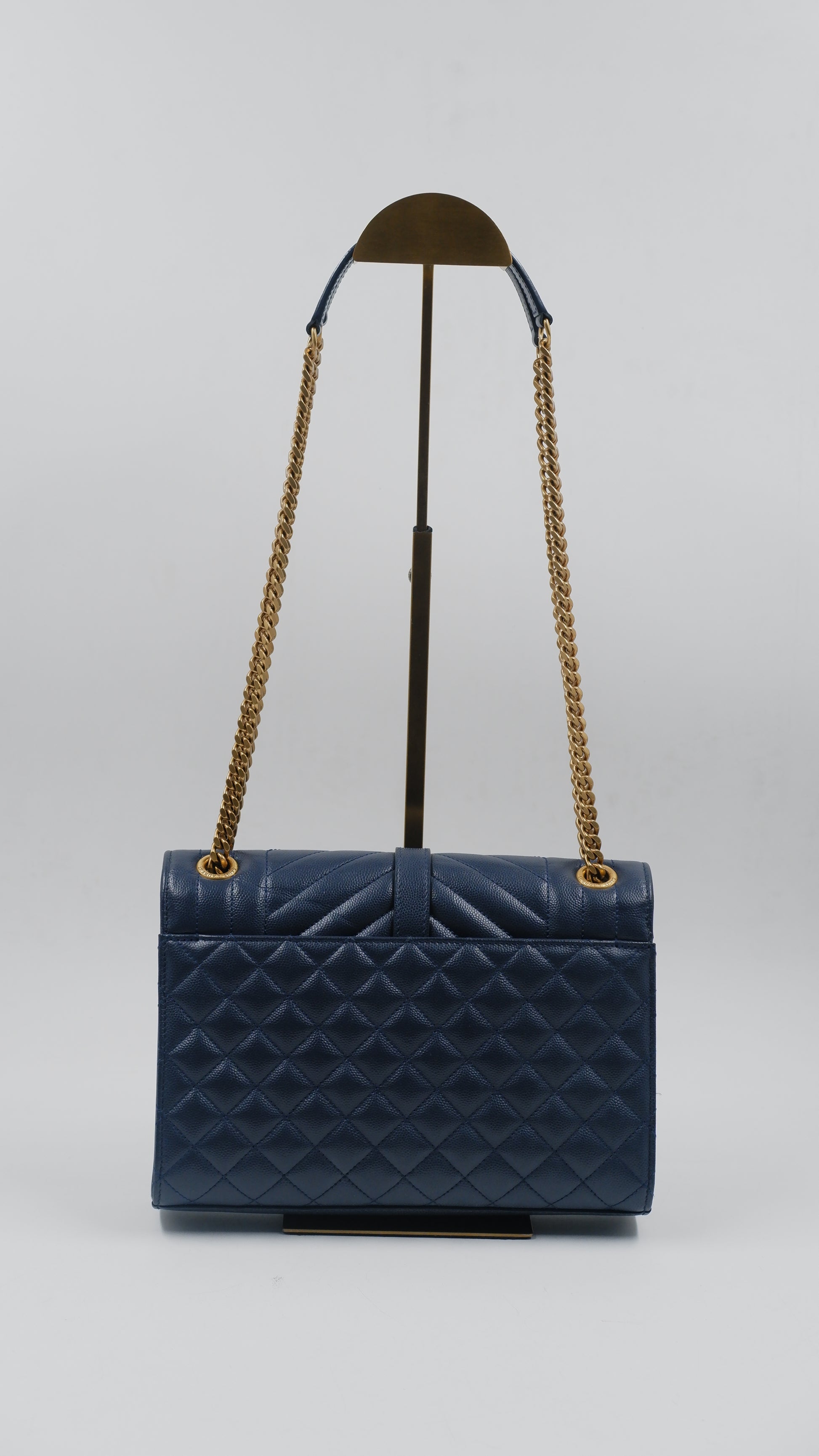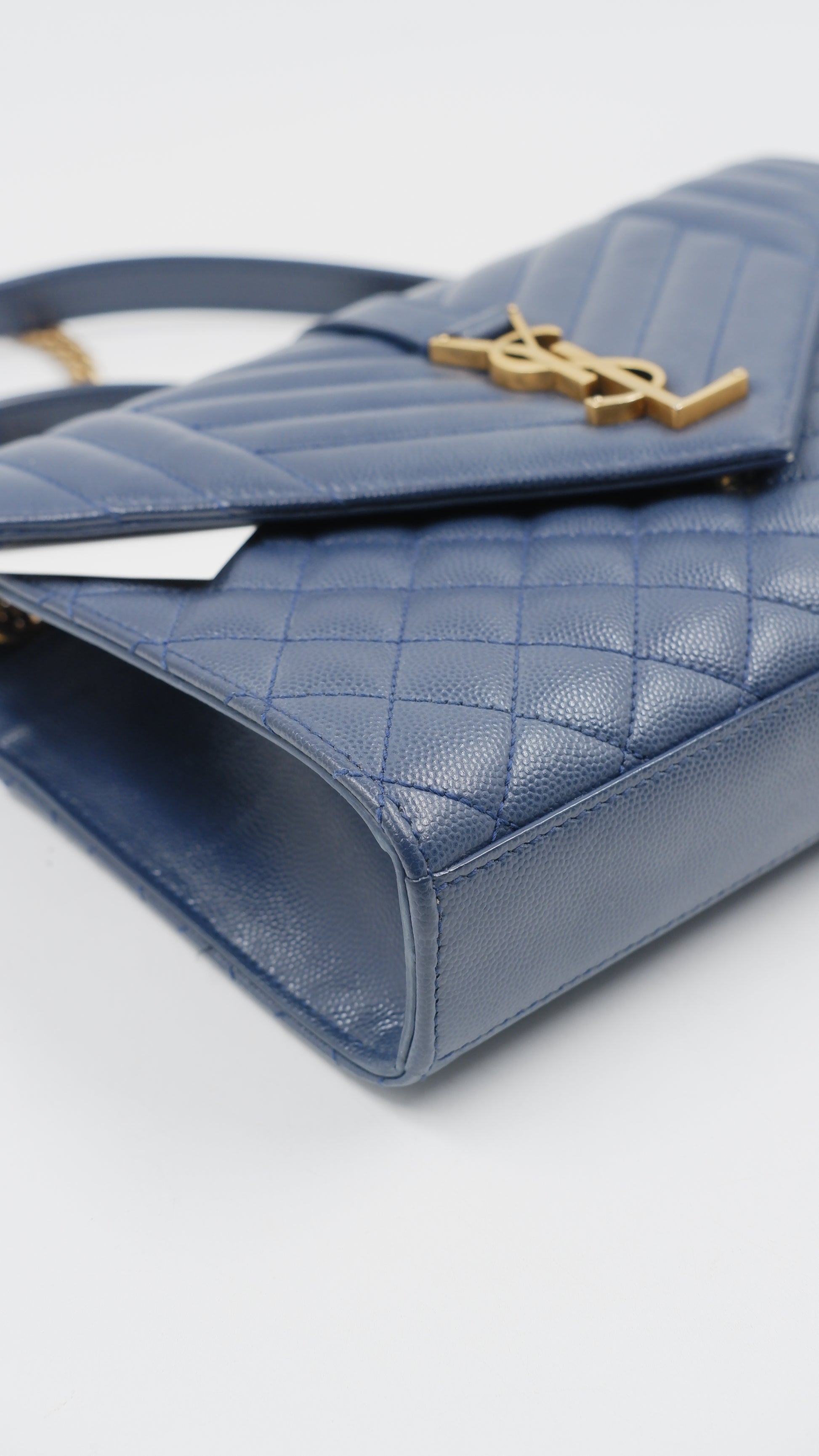 Discover timeless elegance with this exquisite Envelope Small in captivating blue. Meticulously crafted from premium grained leather in Italy, this A+ ranked piece exemplifies luxury at its finest. The sophisticated silhouette measures L9.5 x W2 x H7, offering the perfect balance of refined style and practical functionality. Pristine throughout—mint condition exterior, interior, and overall presentation—this envelope clutch showcases impeccable craftsmanship with its gleaming gold-toned hardware. Every detail speaks to quality and attention to refinement. Accompanied by its original dustbag, this investment piece is ready to elevate your collection. A statement accessory for the discerning individual who appreciates authentic luxury and timeless design.