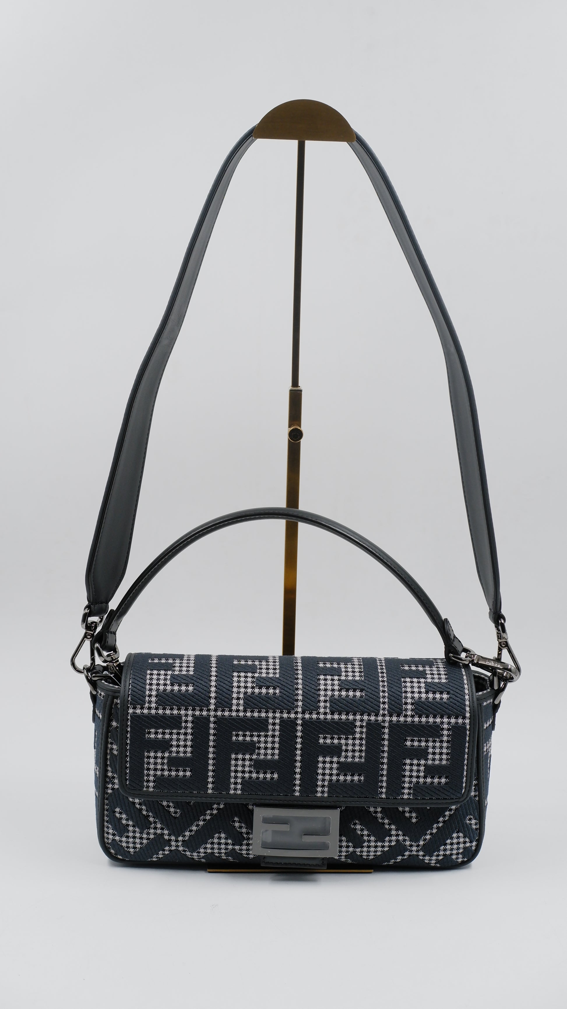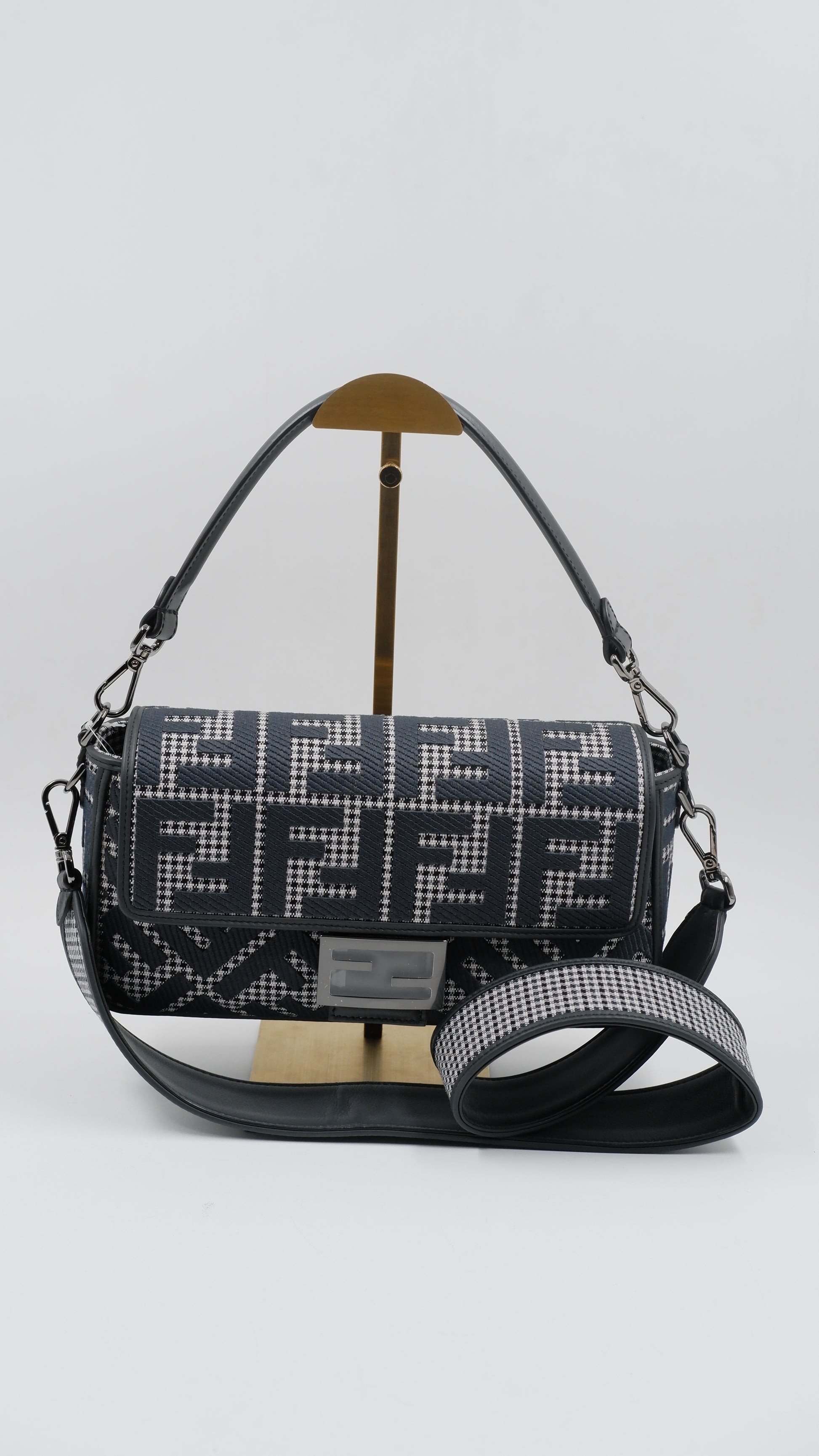 Experience timeless elegance with this Baguette handbag crafted from exquisite jacquard fabric in sophisticated black and gray hues. Made in Italy, it boasts an impeccable overall condition, both inside and out, reflecting a like-new quality with an S-rank rating. Measuring L11 x W2.9 x H6, this refined accessory features polished black hardware (BHW) that complements its understated design. Included are a versatile strap, card holder, and the original dust bag, ensuring both practicality and preservation. Perfect for elevating your ensemble, this Baguette combines classic style with modern functionality for discerning tastes.