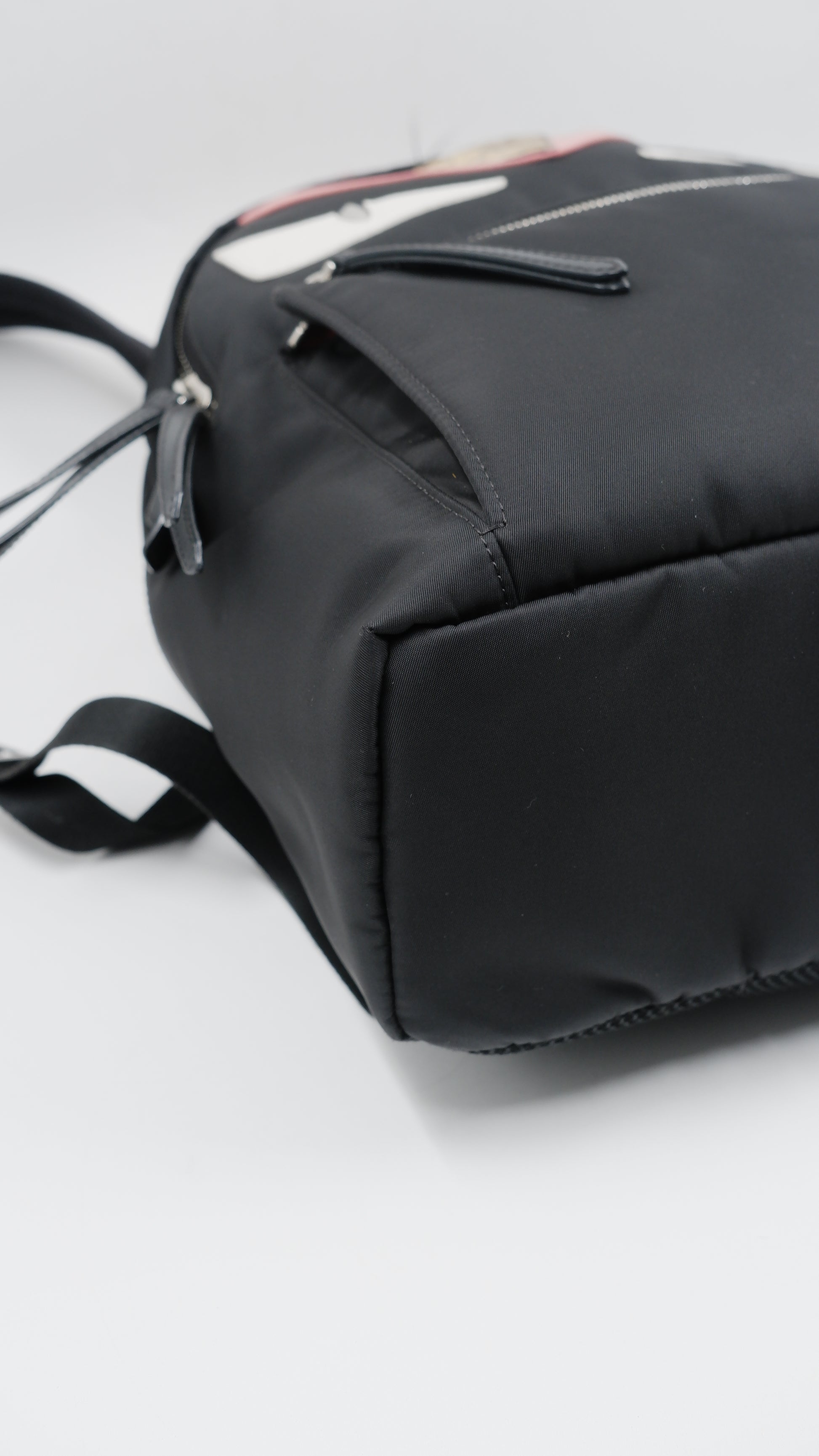 Experience elegance and durability with the Monster Backpack, impeccably crafted from premium black nylon in Italy. This sophisticated accessory boasts excellent overall condition, radiating quality from its pristine exterior to its flawless interior. Its sleek dimensions (L11.5 x W5 x H13) offer ample space while maintaining a streamlined silhouette. Accentuated with polished silver hardware (SHW), this backpack effortlessly blends style and functionality, making it an ideal companion for both urban commutes and refined outings. A true testament to Italian craftsmanship, it caters to those who seek both luxury and practicality in their everyday essentials.