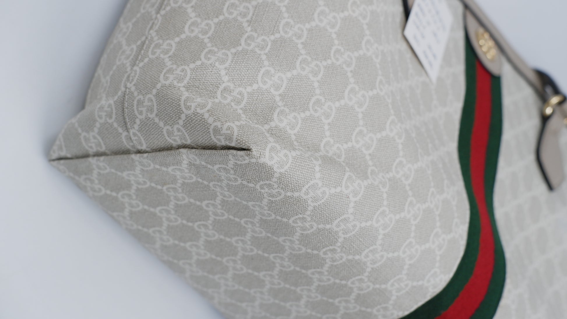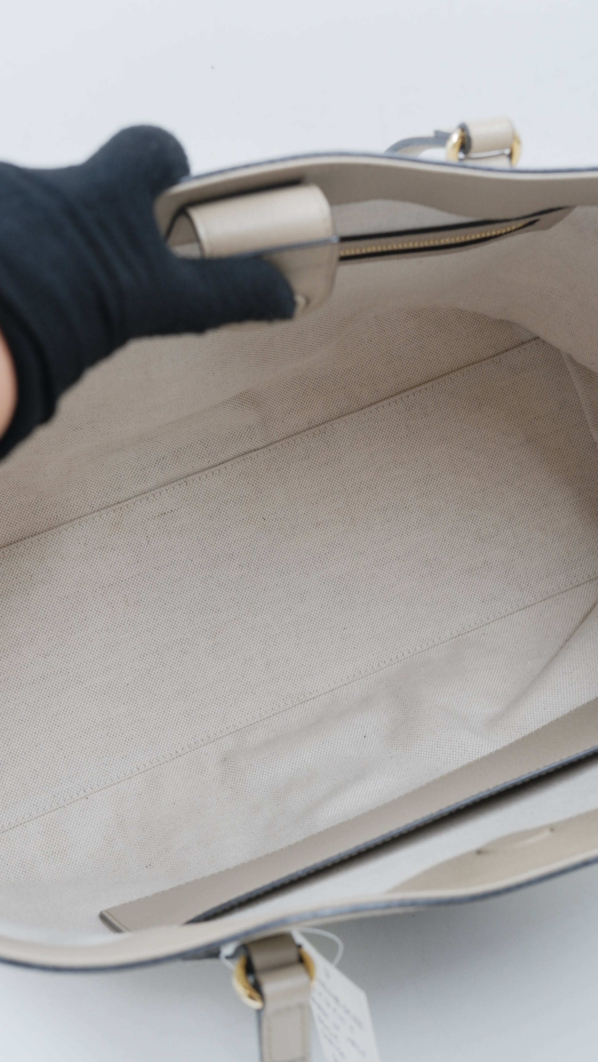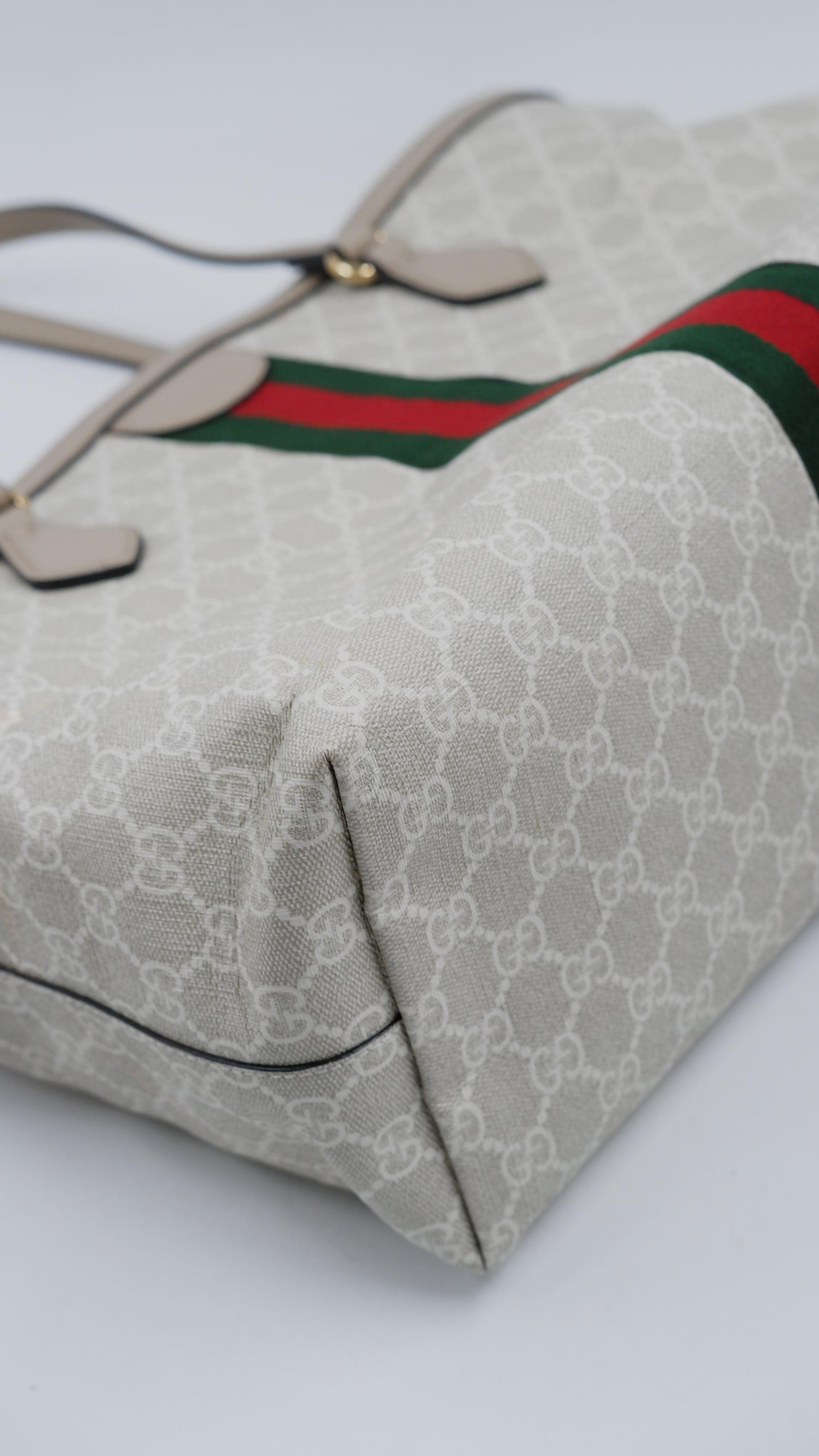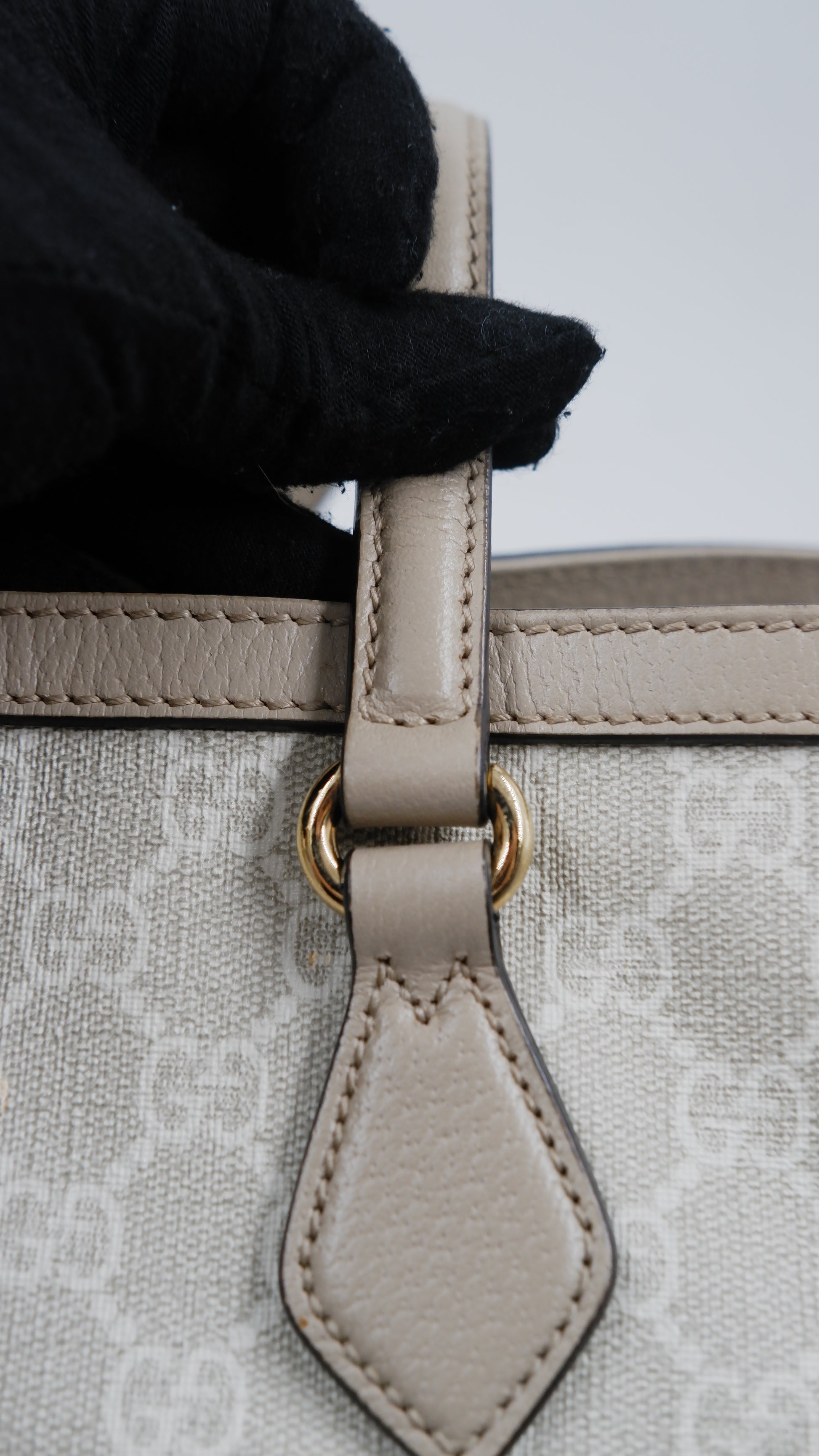 The Ophidia Tote Bag exemplifies refined elegance with its impeccable condition, showcasing excellent quality both on the exterior and interior. Crafted in Italy from durable coated canvas, this sophisticated beige tote pairs timeless style with practical functionality. Its dimensions (L14 x W6 x H10.5 inches) offer ample space for essentials while maintaining a sleek silhouette. Accented with exquisite gold hardware, the bag reflects superior craftsmanship. Included is the original dust bag, ensuring the protection and preservation of this luxurious accessory. Perfect for elevating your everyday ensemble with a touch of classic Italian luxury.