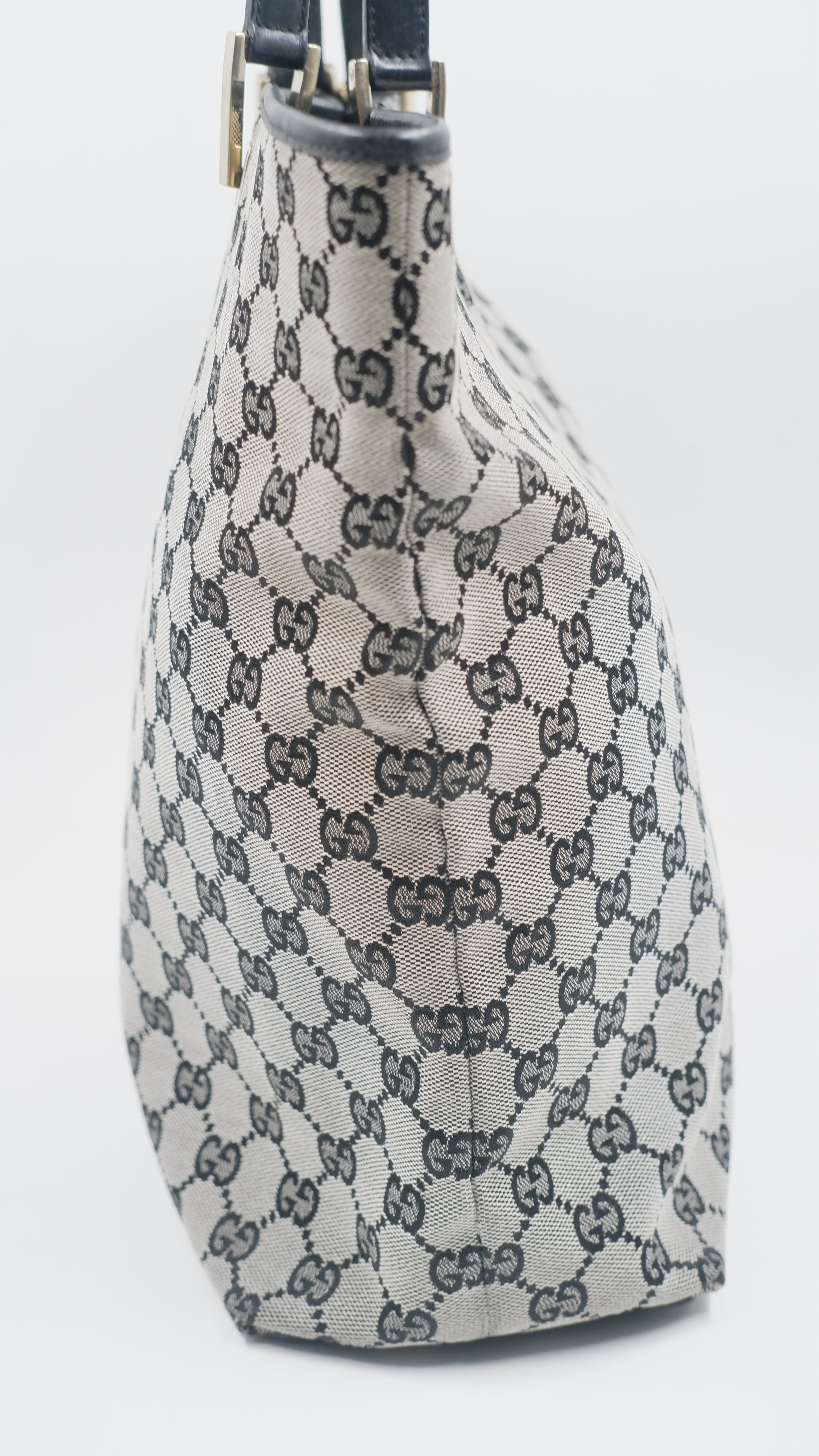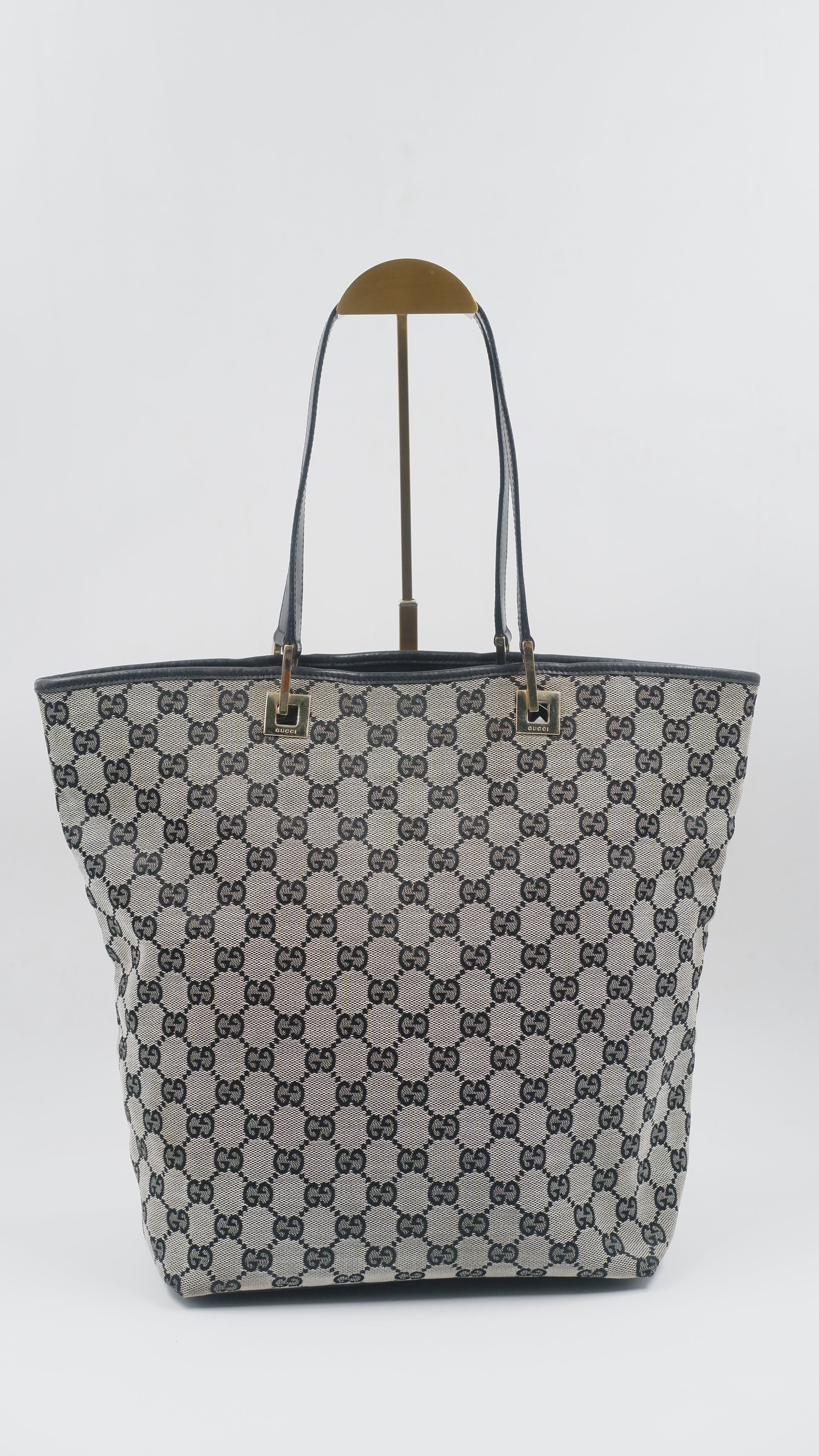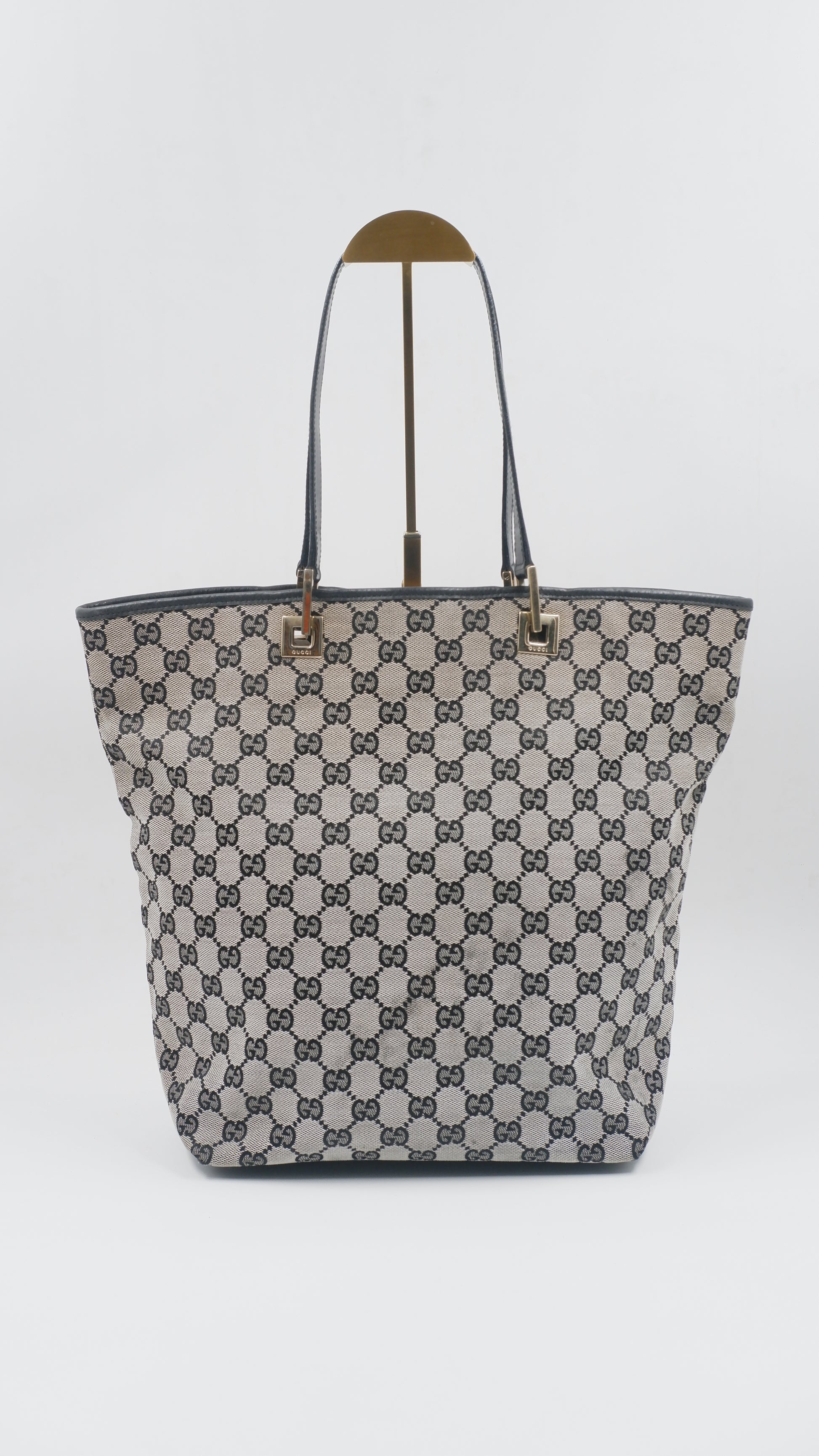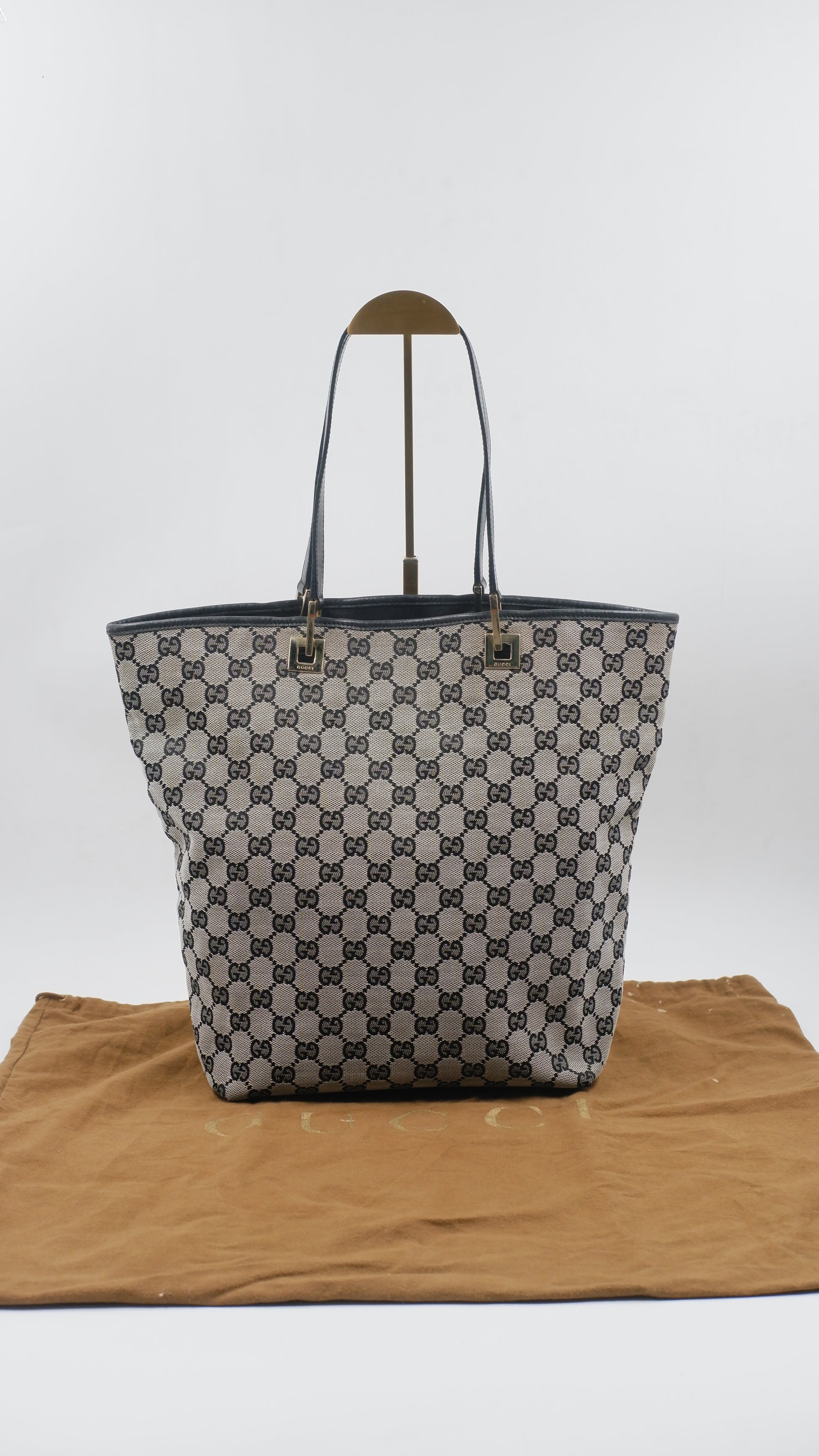 Crafted from high-quality canvas and meticulously made in Italy, this Canvas Tote effortlessly combines durability with refined elegance. Its grey and black color palette complements any ensemble, while the gold hardware adds a subtle touch of luxury. With dimensions of L9.5 x W4.5 x H12.5 inches, it offers ample space without compromising on style. The tote is in excellent overall, exterior, and interior condition, reflecting careful use and premium craftsmanship. Included with the purchase is the original dust bag, ensuring your tote remains pristine. This versatile accessory is ideal for elevating everyday looks with understated sophistication.