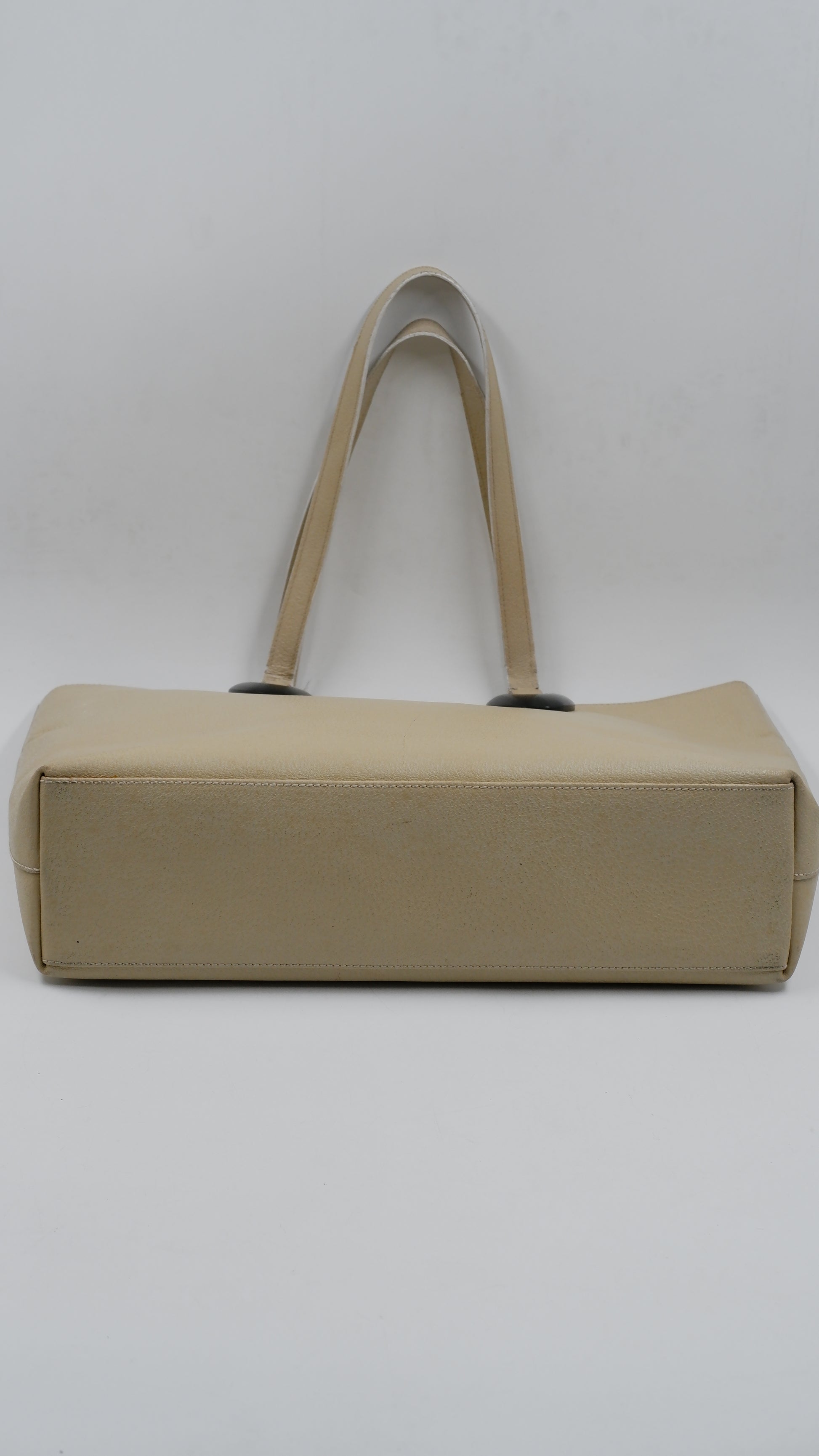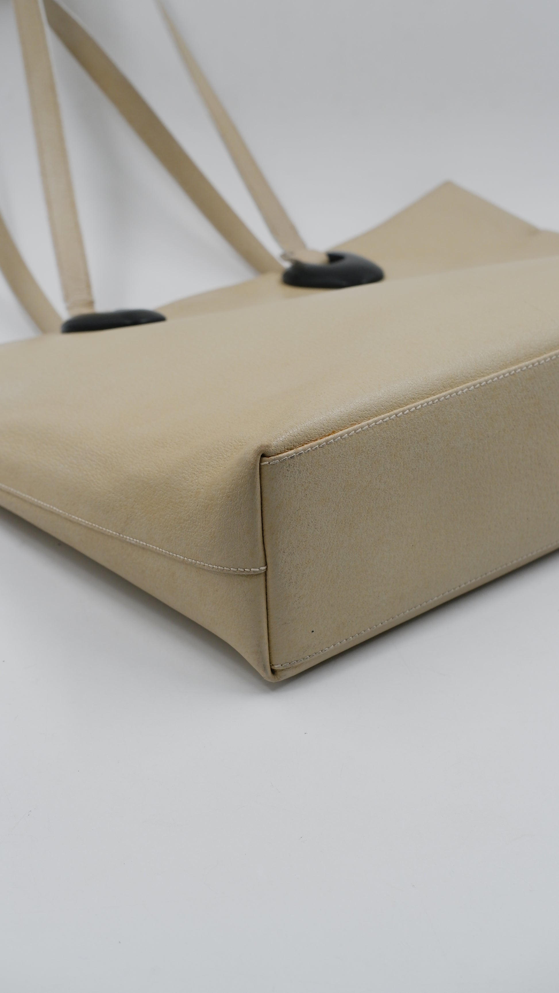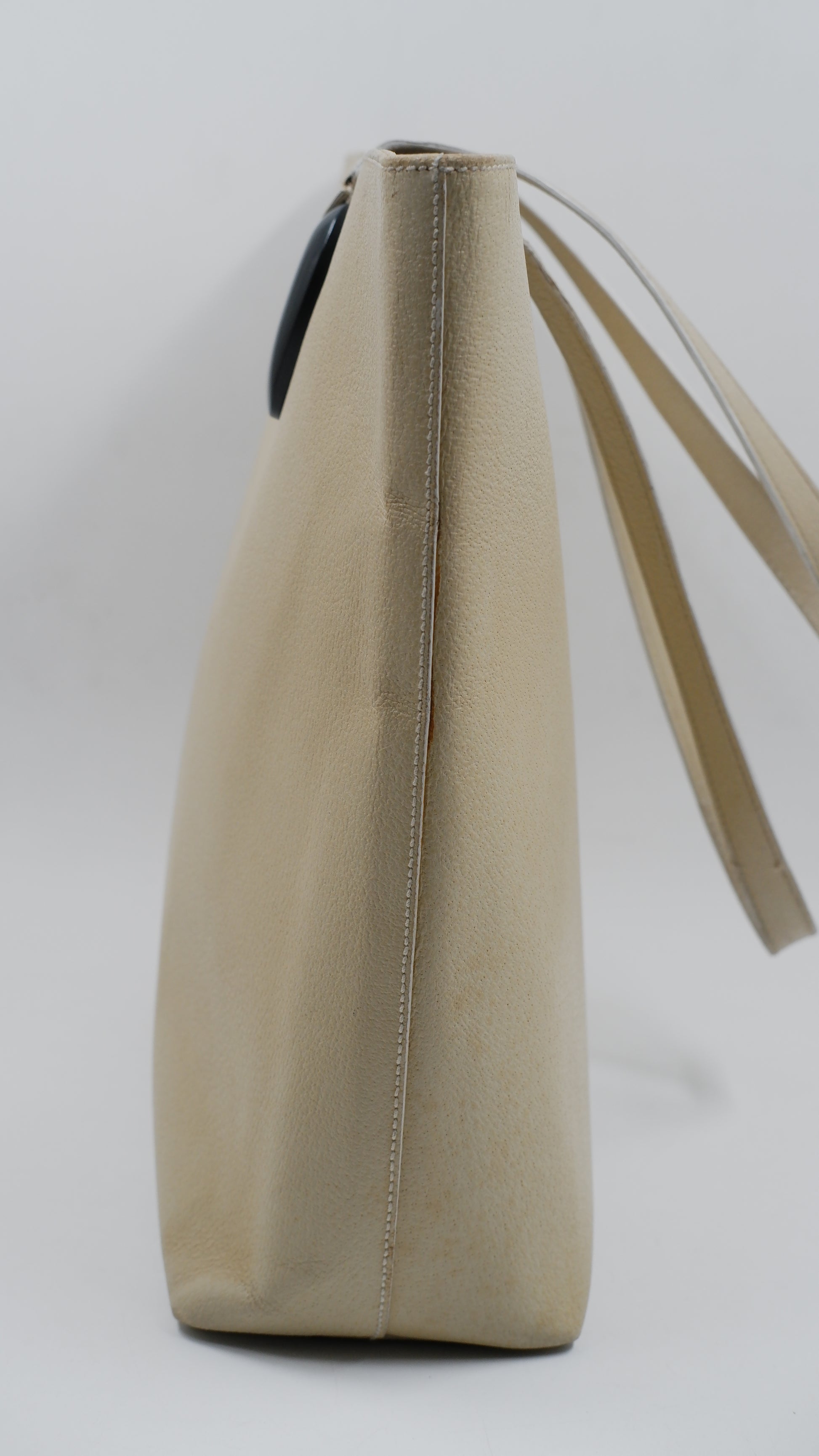 The Totissima Tote Bag is an elegant accessory crafted from luxurious grained leather, showcasing impeccable Italian artistry. Its beige exterior boasts a very good condition, free from noticeable wear, while the interior is equally well-maintained, making it a timeless piece for daily use or special occasions. Measuring 15.5 inches in length, 4.2 inches in width, and 13 inches in height, this tote offers a generous yet refined capacity to carry your essentials with style. Accompanied by a dust bag for protection, this sophisticated tote seamlessly blends functionality with classic design, perfect for elevating any ensemble.