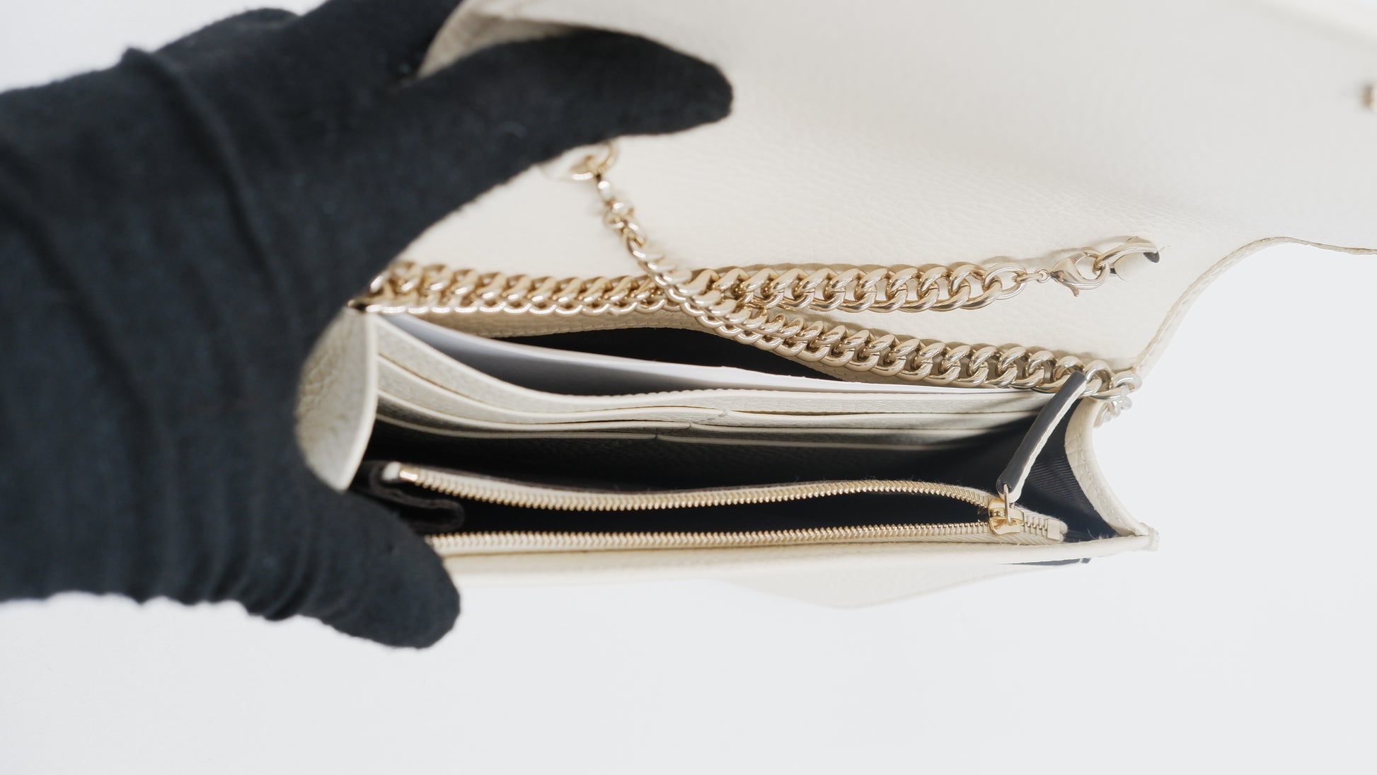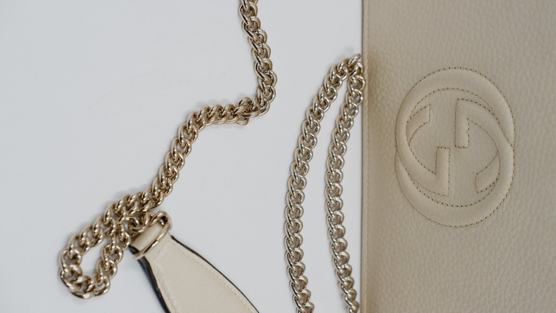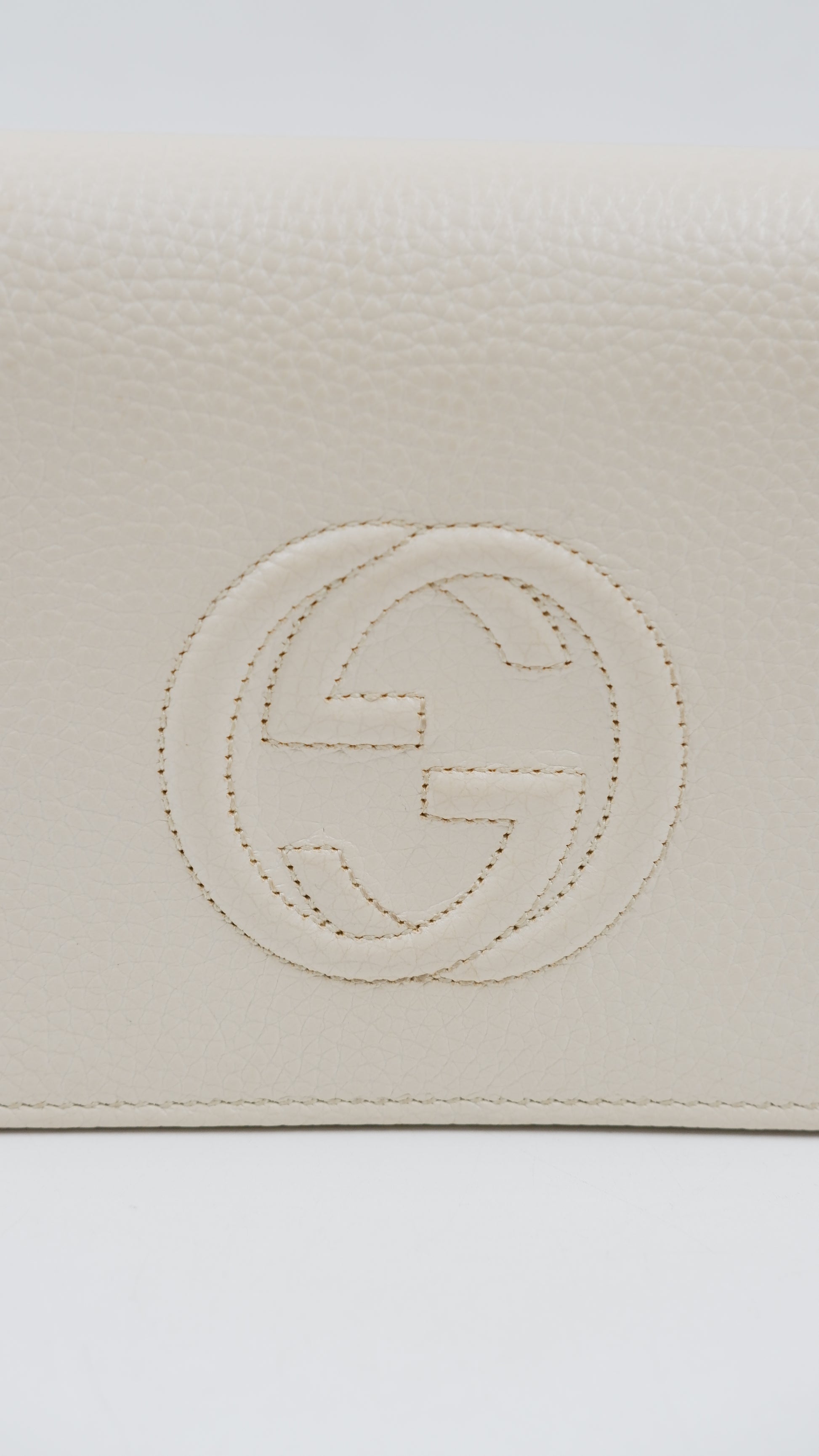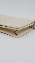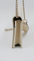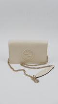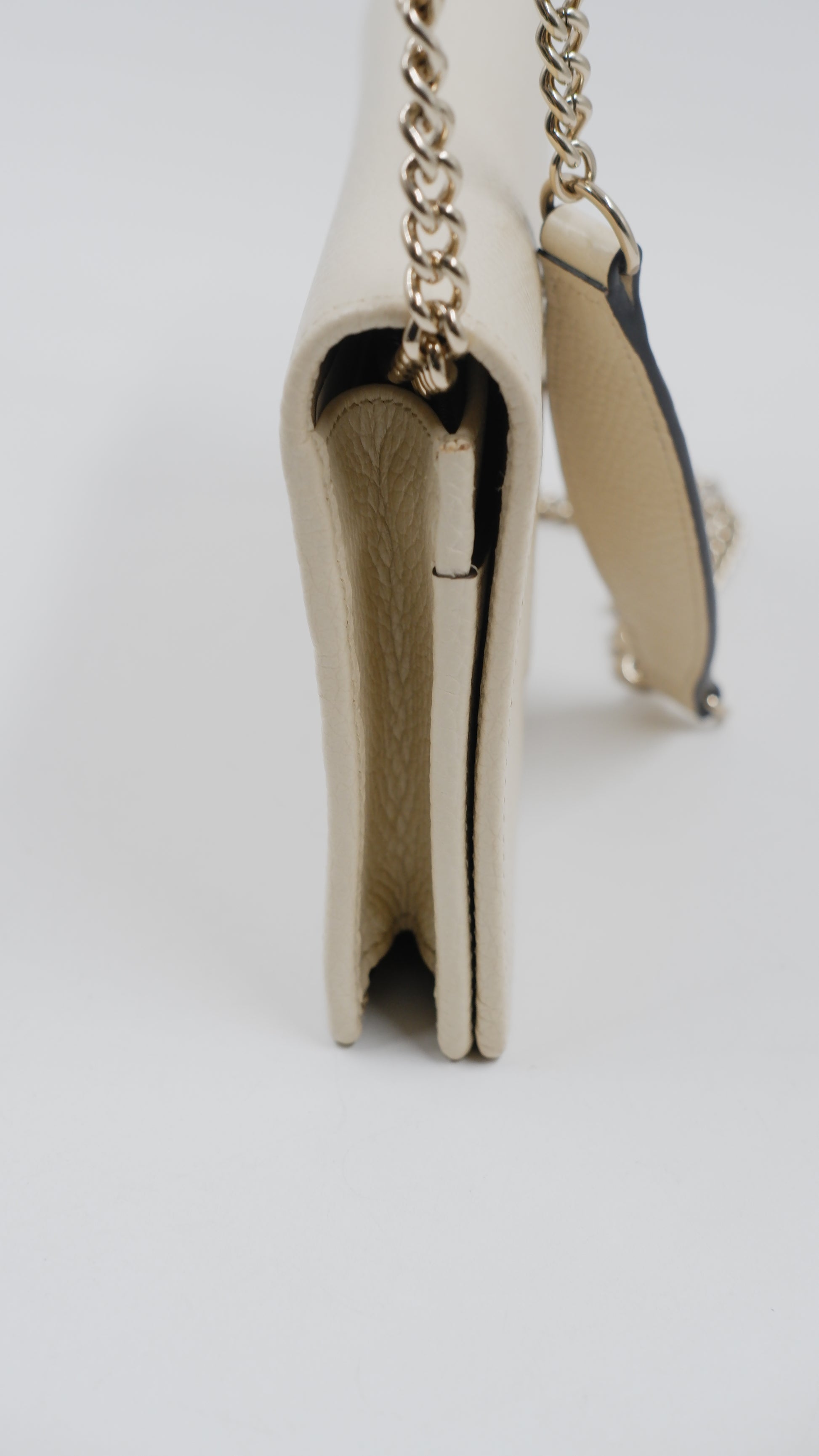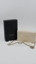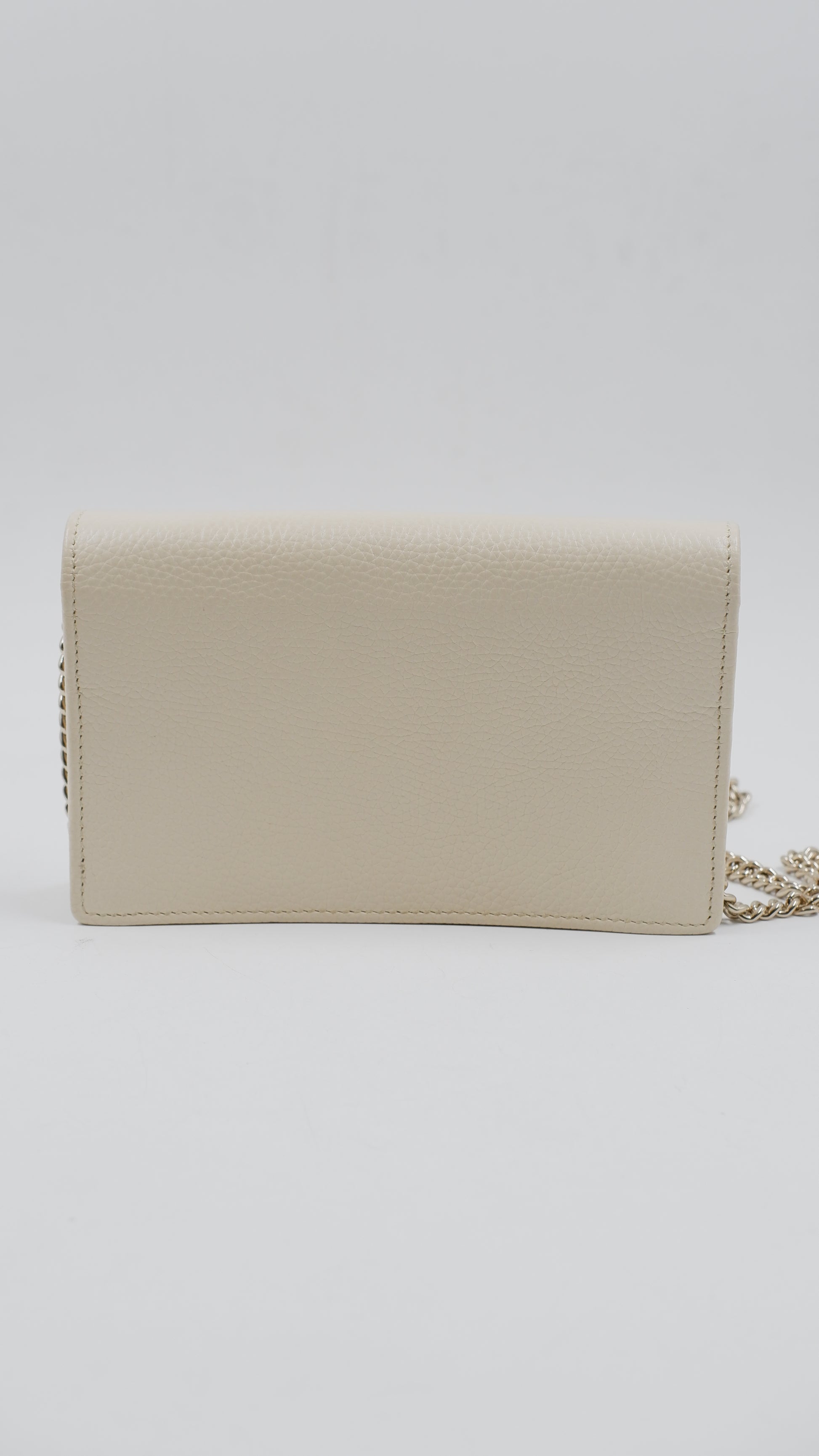 Elevate your accessory collection with the Soho Wallet on Chain, a refined piece crafted in Italy from luxurious pebbled leather that promises both durability and timeless elegance. Presented in a sophisticated beige hue, this wallet combines practicality with style, featuring gold hardware accents that enhance its classic appeal. Designed with meticulous attention to detail, the interior and exterior both remain in mint condition, reflecting its exceptional quality and care. Sized perfectly at 8 cm in length and 5 cm in height, it offers ample space for essentials without compromising on sleekness. Delivered with the original dust bag and box, this rank A+ wallet is a distinguished addition for those who appreciate understated luxury.