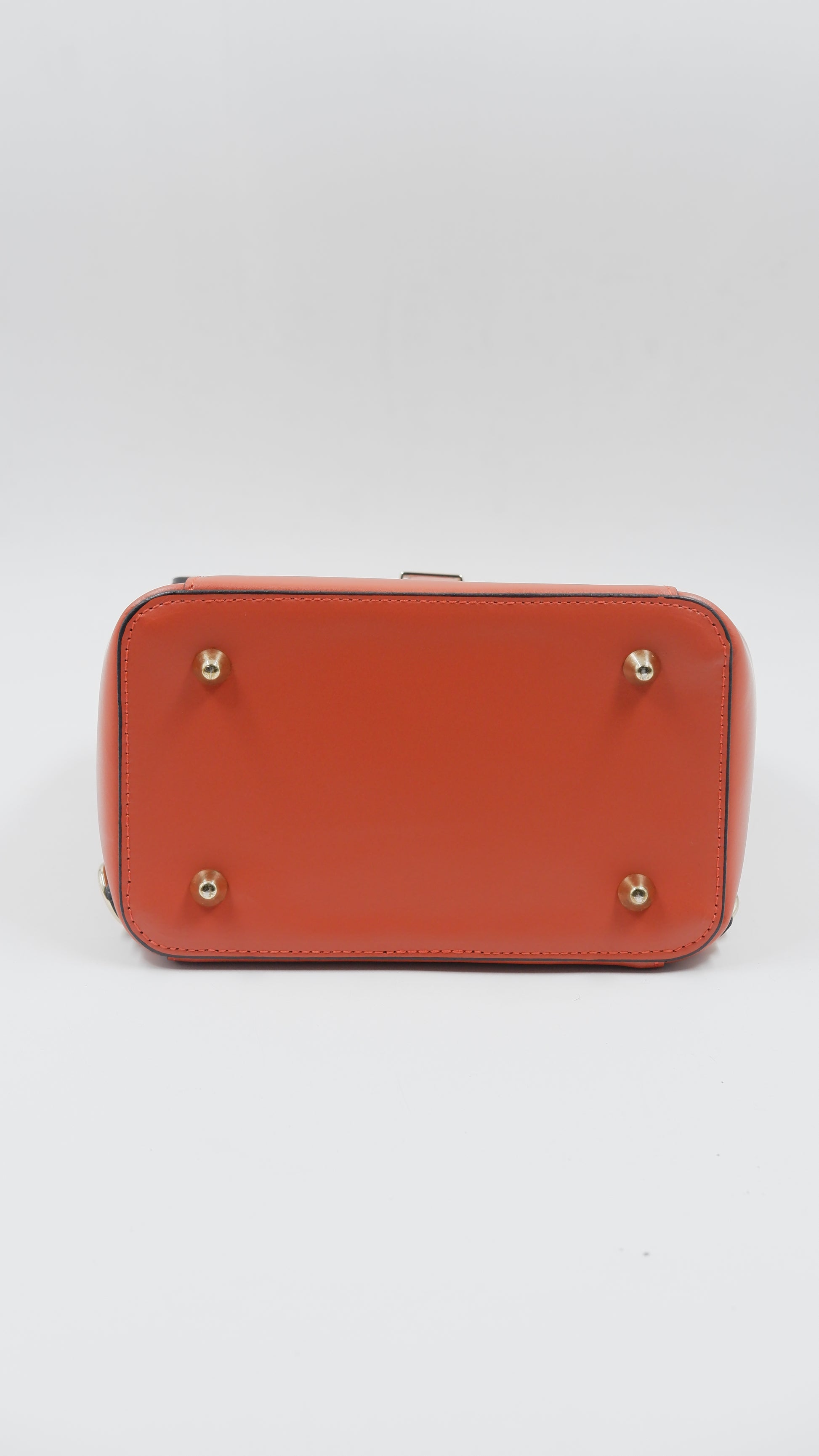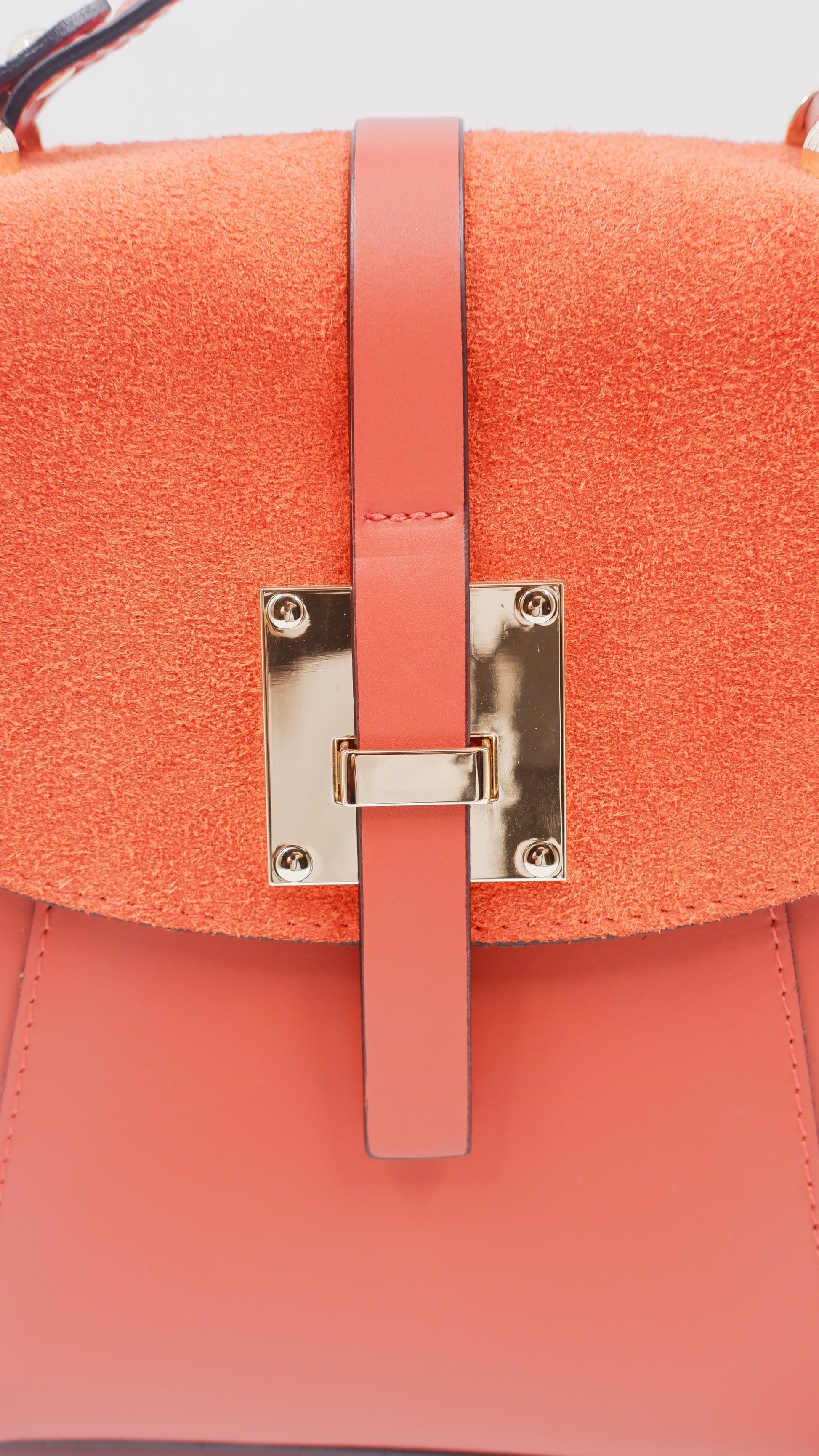 Experience refined elegance with this Italian Made Suede Backpack, crafted from a luxurious blend of leather and suede in a captivating suede red hue. Impeccably maintained, it boasts excellent exterior and interior condition, earning an A rank for quality. Its compact dimensions (L8.1 x W5 x H8.6) make it an ideal accessory that balances style and practicality. Finished with gleaming gold hardware and accompanied by a strap and dust bag, this backpack exemplifies Italian craftsmanship tailored for those who appreciate sophistication and durability in their everyday essentials.
