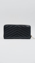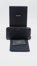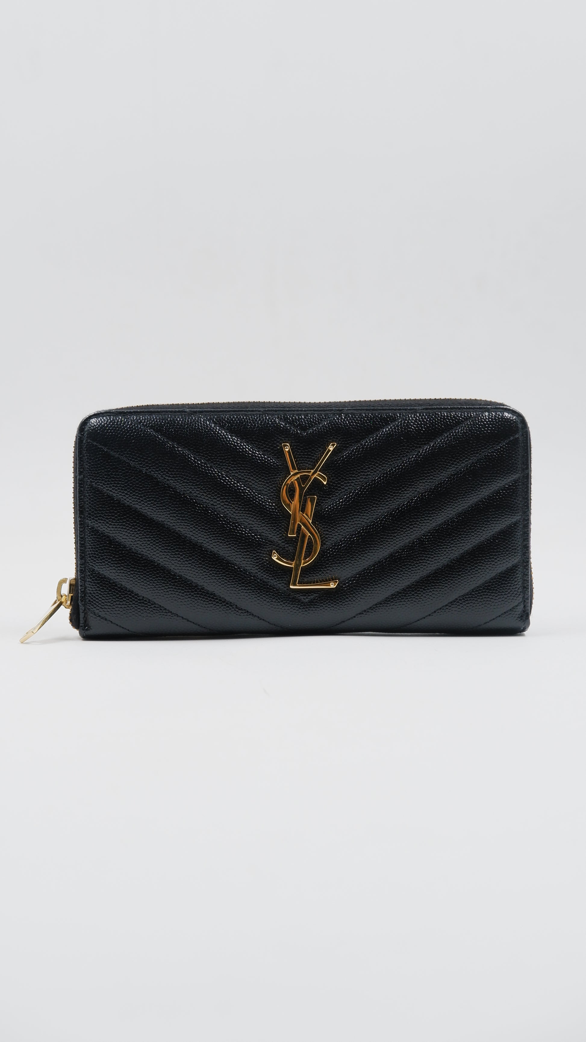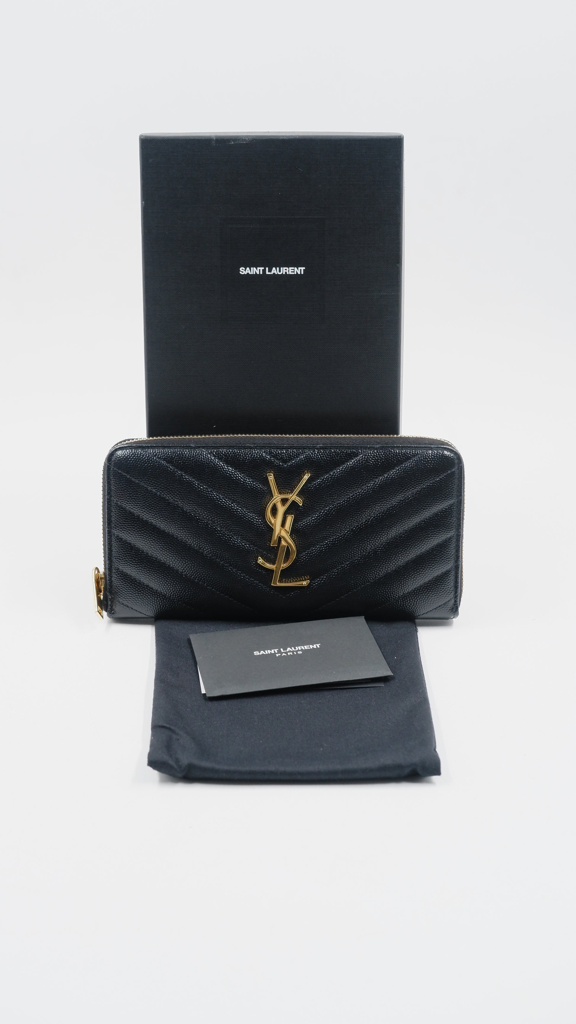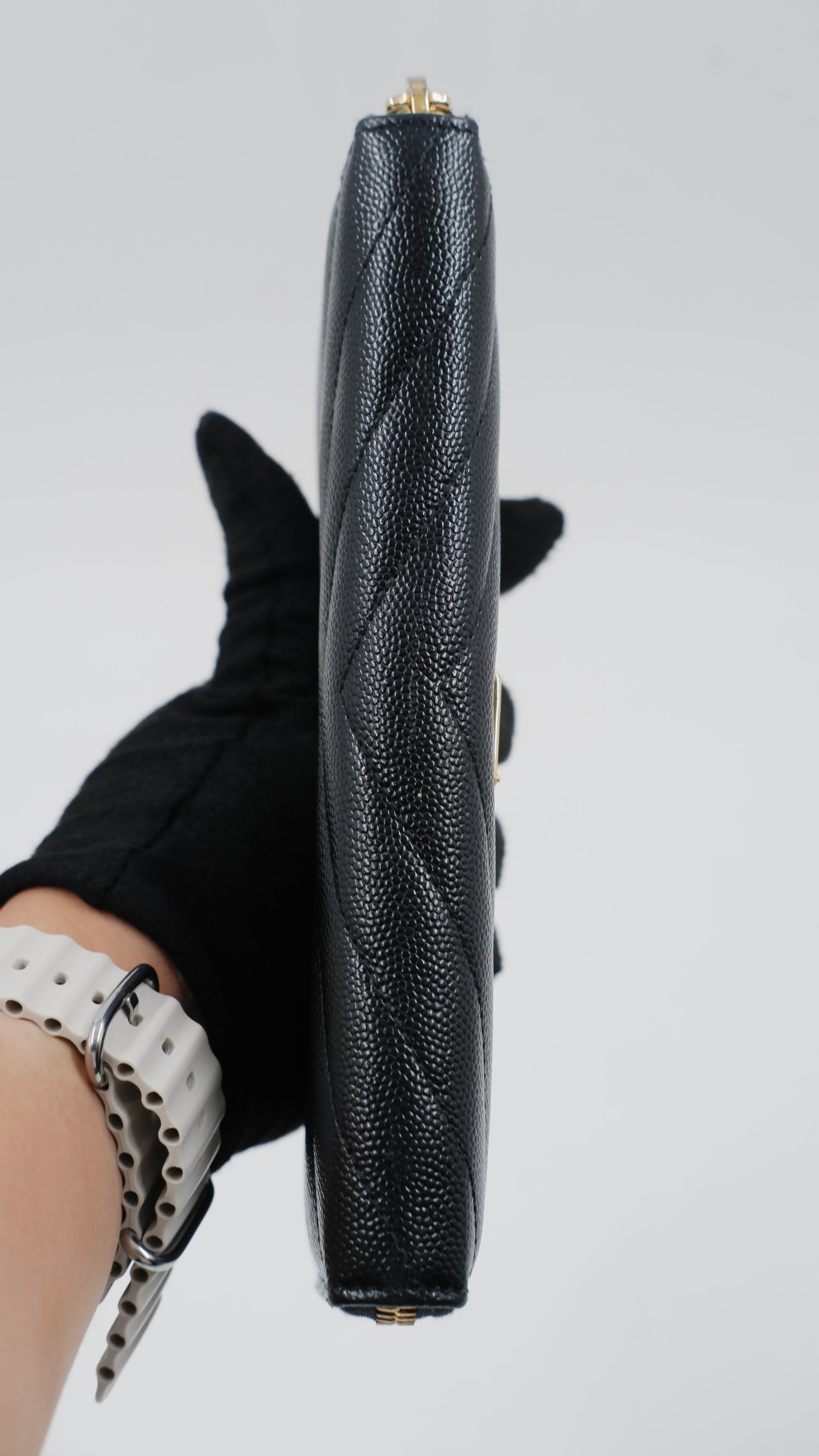 Experience timeless elegance with this Long Zippy Wallet, crafted from luxurious caviar leather in a deep black hue. Made in Italy with meticulous attention to detail, it boasts gold hardware that adds a refined touch. The wallet is in mint condition inside and out, rated A+ for quality assurance. Its spacious design measures 7.5 inches long by 3.5 inches high, offering ample room for cards and essentials. Complete with original dust bag and box, this wallet is the perfect blend of functionality and sophistication for the discerning individual.