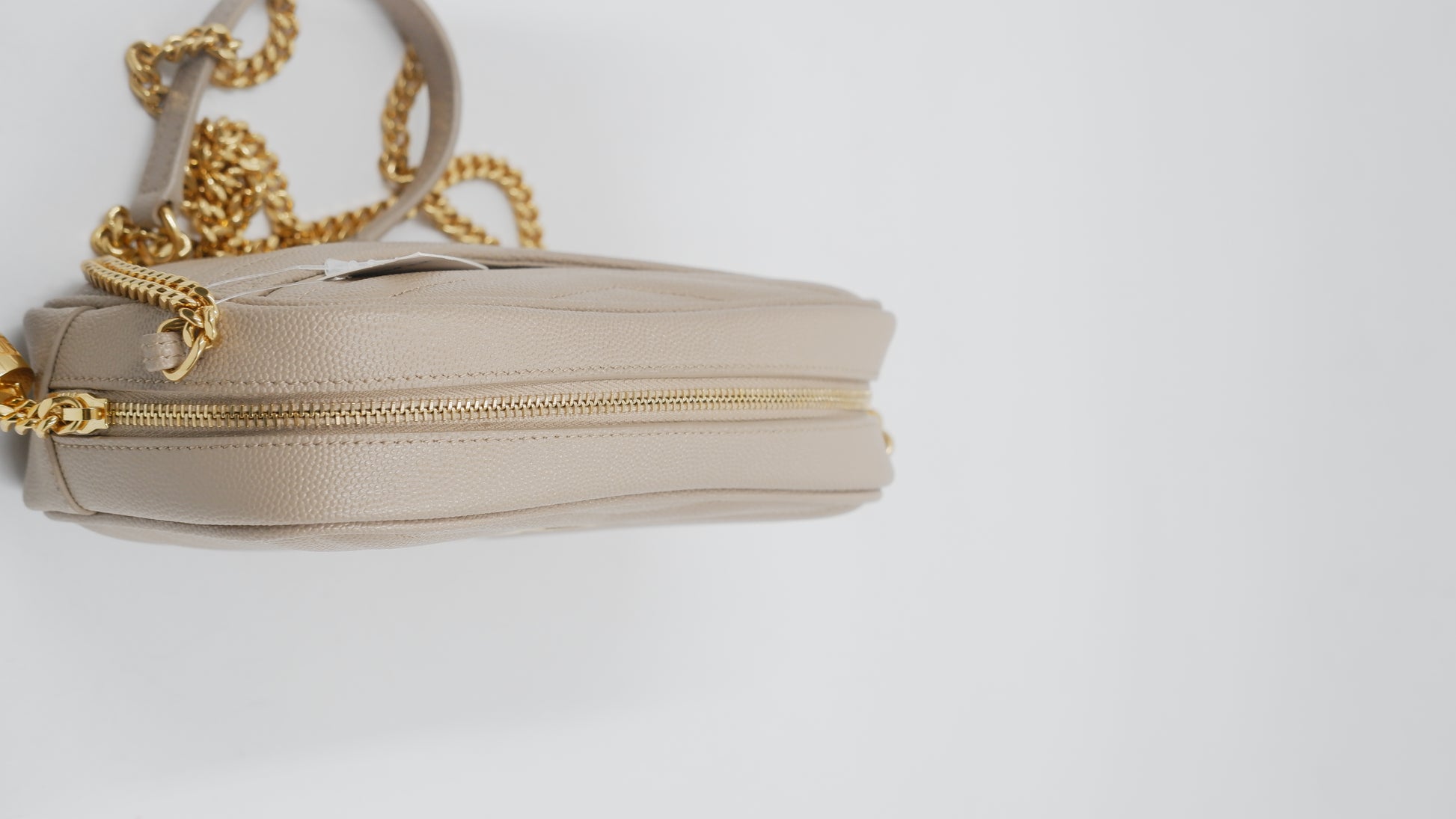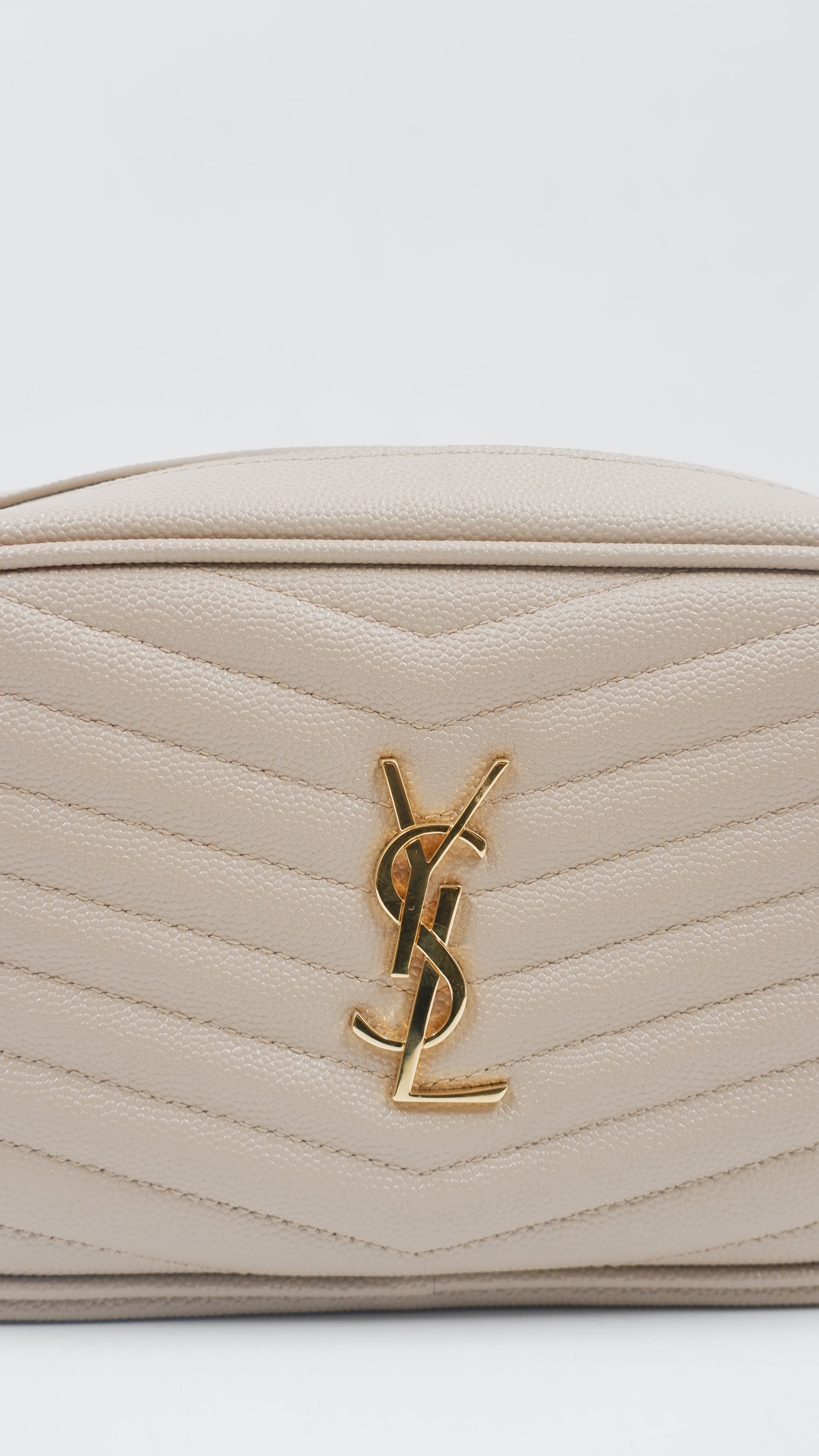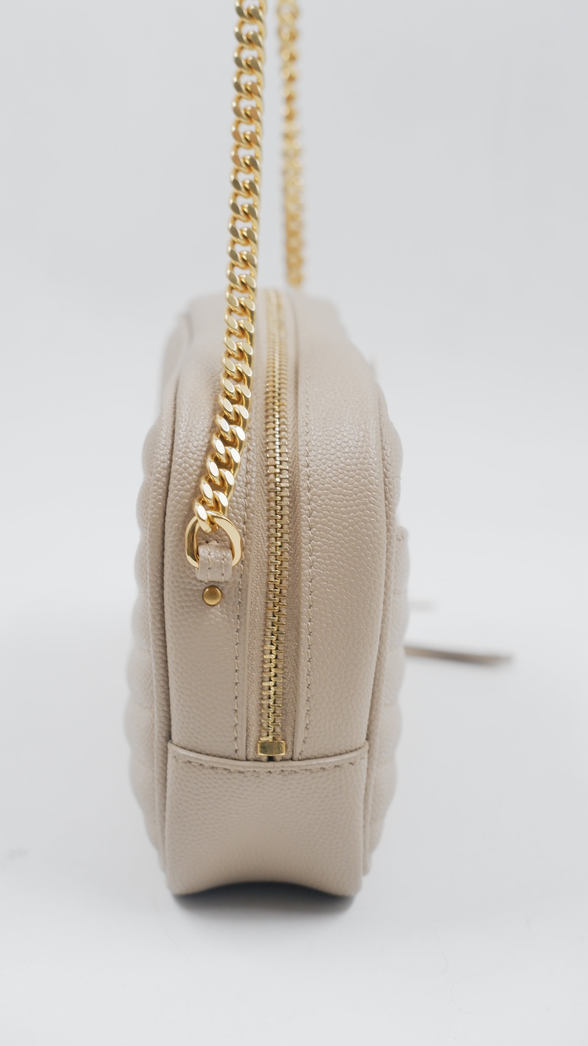 The Lou Mini Quilted Leather Crossbody Bag represents timeless Italian craftsmanship at its finest. This A+ ranked piece showcases pristine quilted leather in a sophisticated beige tone, maintaining mint condition throughout both exterior and interior. Measuring a perfectly proportioned 7L x 1.5W x 4.4H inches, this compact crossbody effortlessly transitions from day to evening occasions. The gleaming gold-tone hardware adds an elegant finishing touch, while the supple quilted leather construction promises durability and refined aesthetics. Authenticity is assured with included authentication cards and the original dustbag for safekeeping. An investment piece that embodies European luxury and understated elegance for the discerning collector.