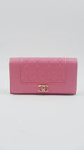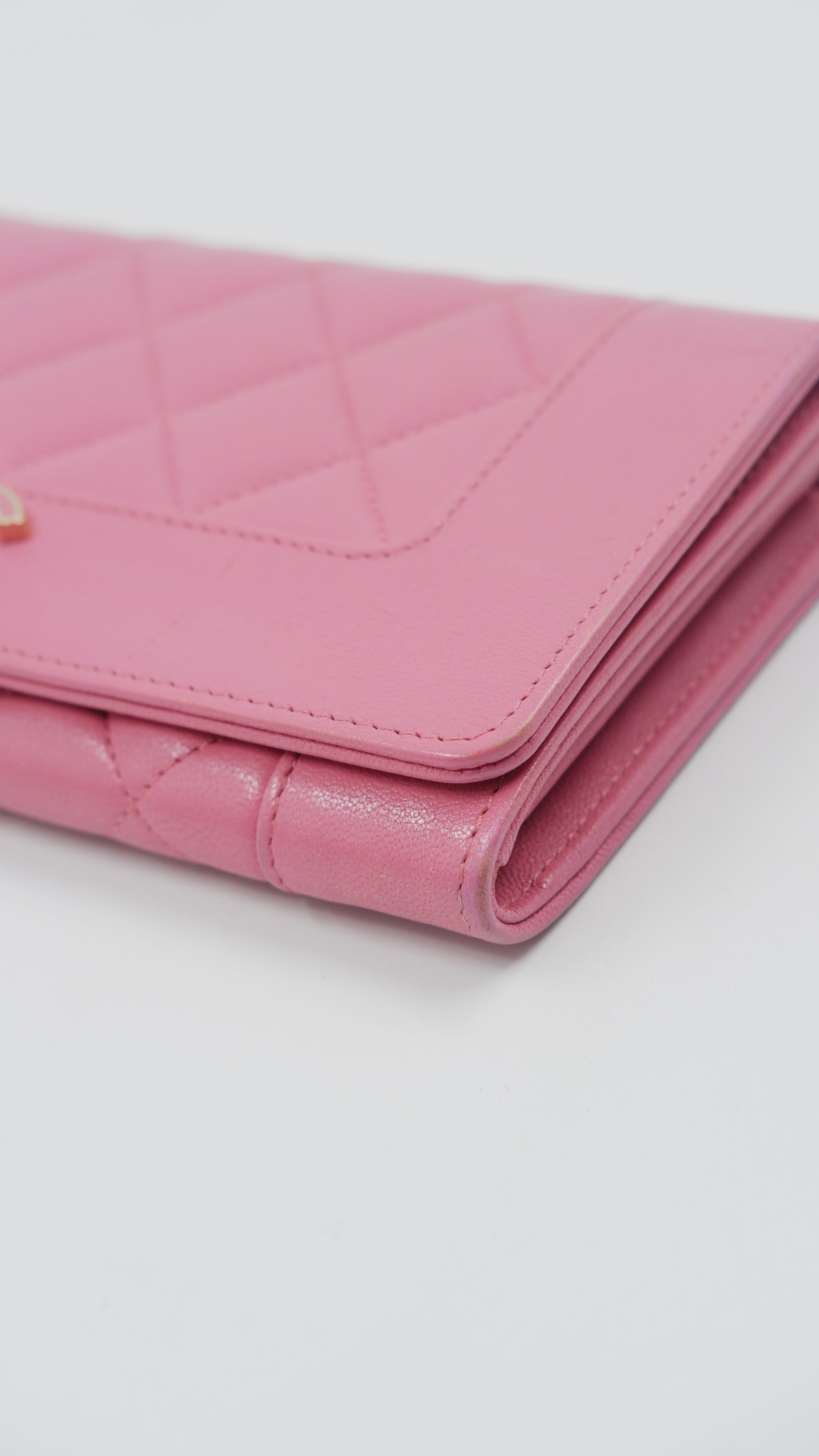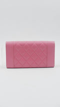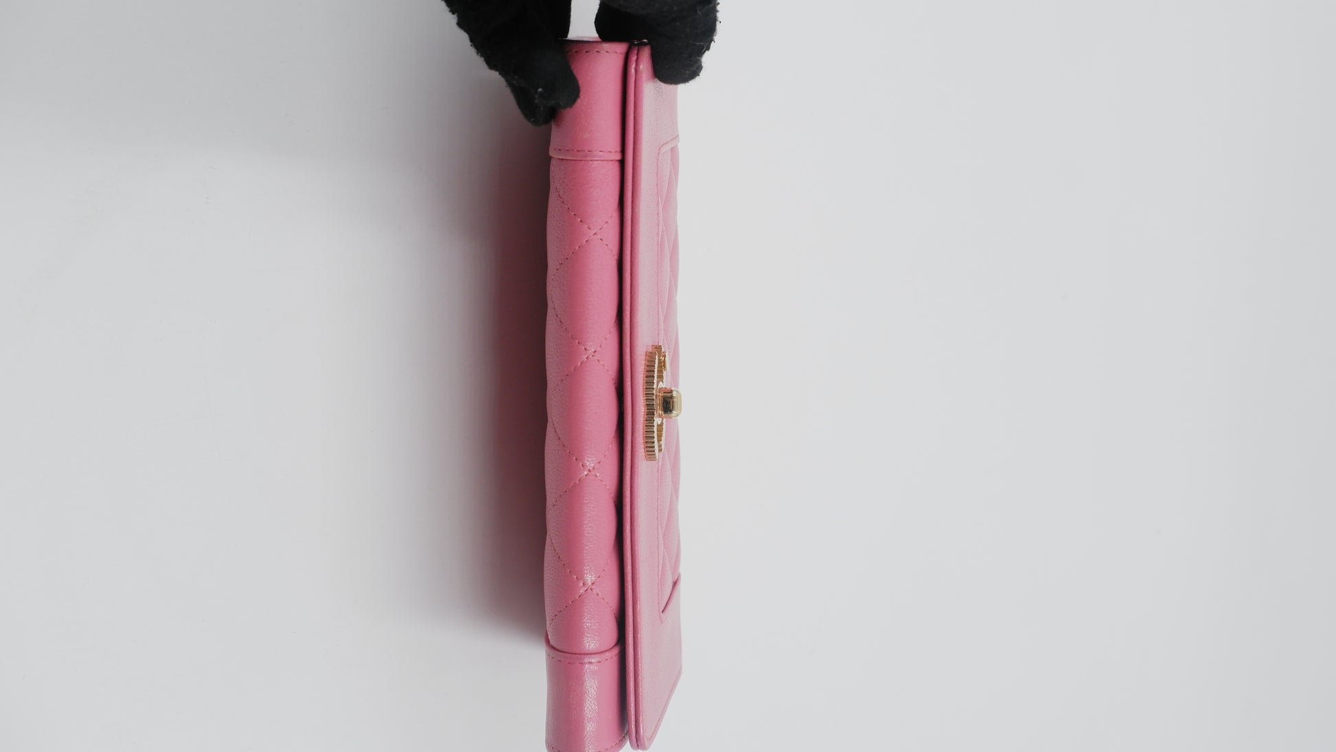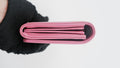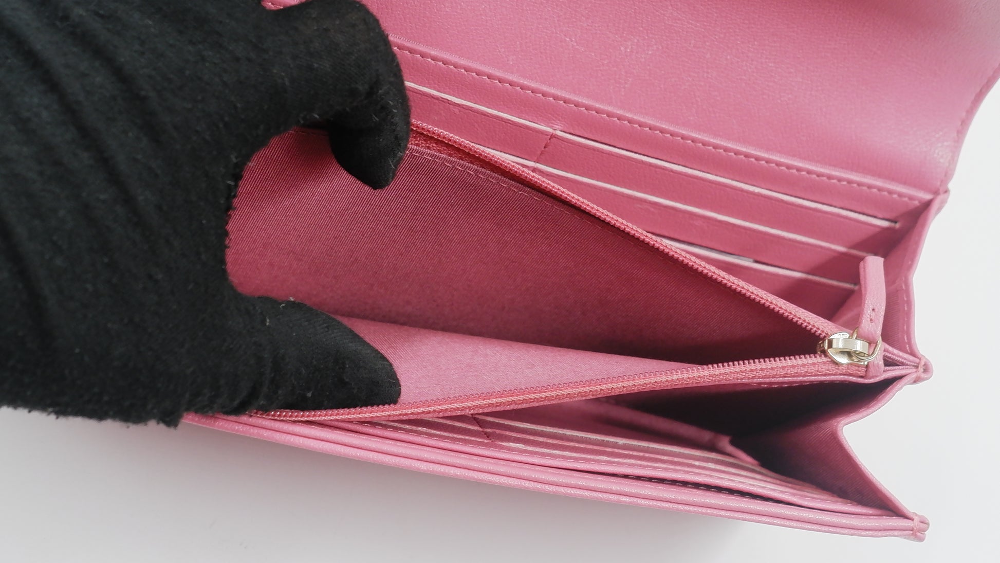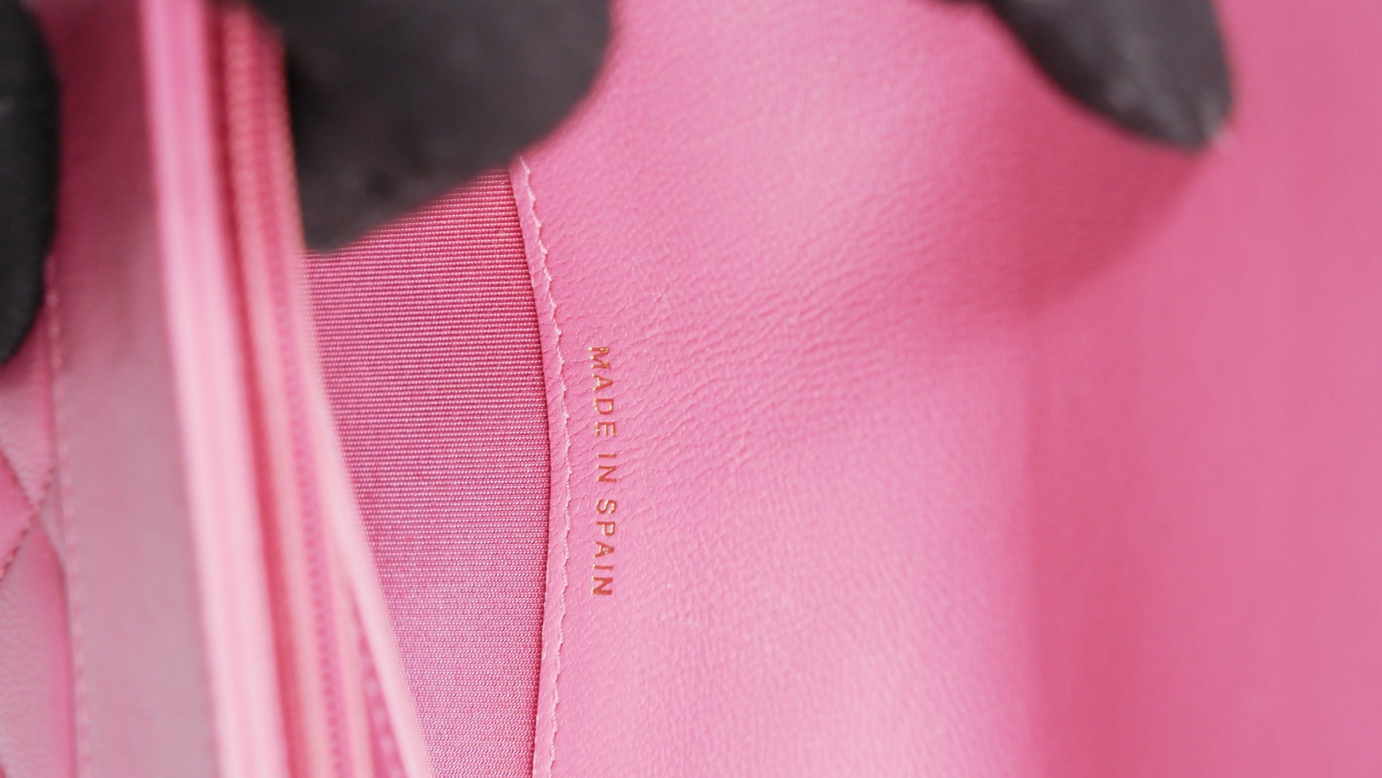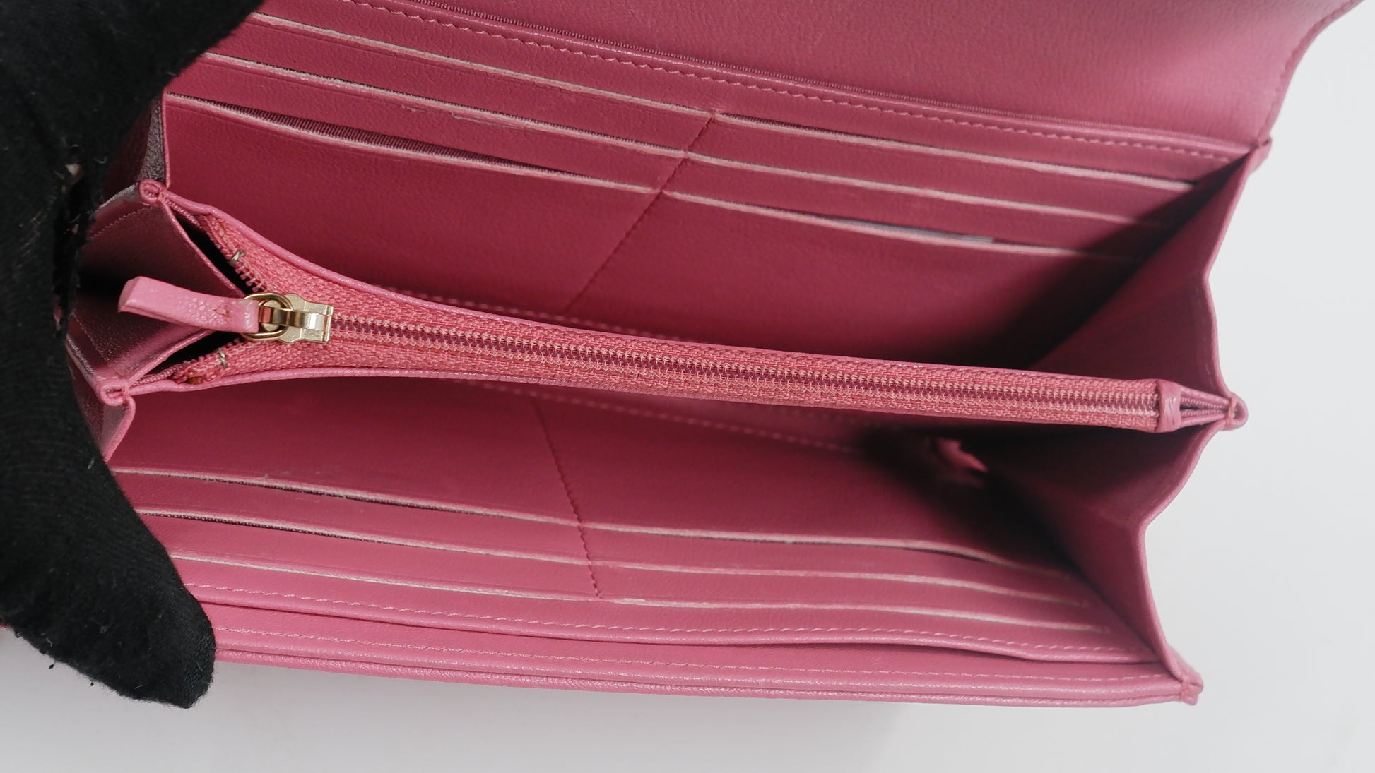 The Mademoiselle Long Wallet embodies elegance and exceptional craftsmanship, crafted from soft lambskin leather in a delicate pink tone. Made in Spain, this exquisite piece is in mint condition, with flawless exterior and interior surfaces that reflect its premium quality. The wallet measures L8 x W1 x H4.3, providing ample space to organize your essentials with refined efficiency. Accented by gold hardware, it balances feminine charm with a touch of luxury. Included are the original cards and box, ensuring a complete and sophisticated accessory that enhances both your collection and everyday style. Perfect for those who value timeless grace and meticulous detail.