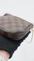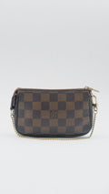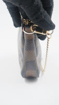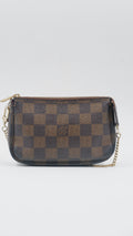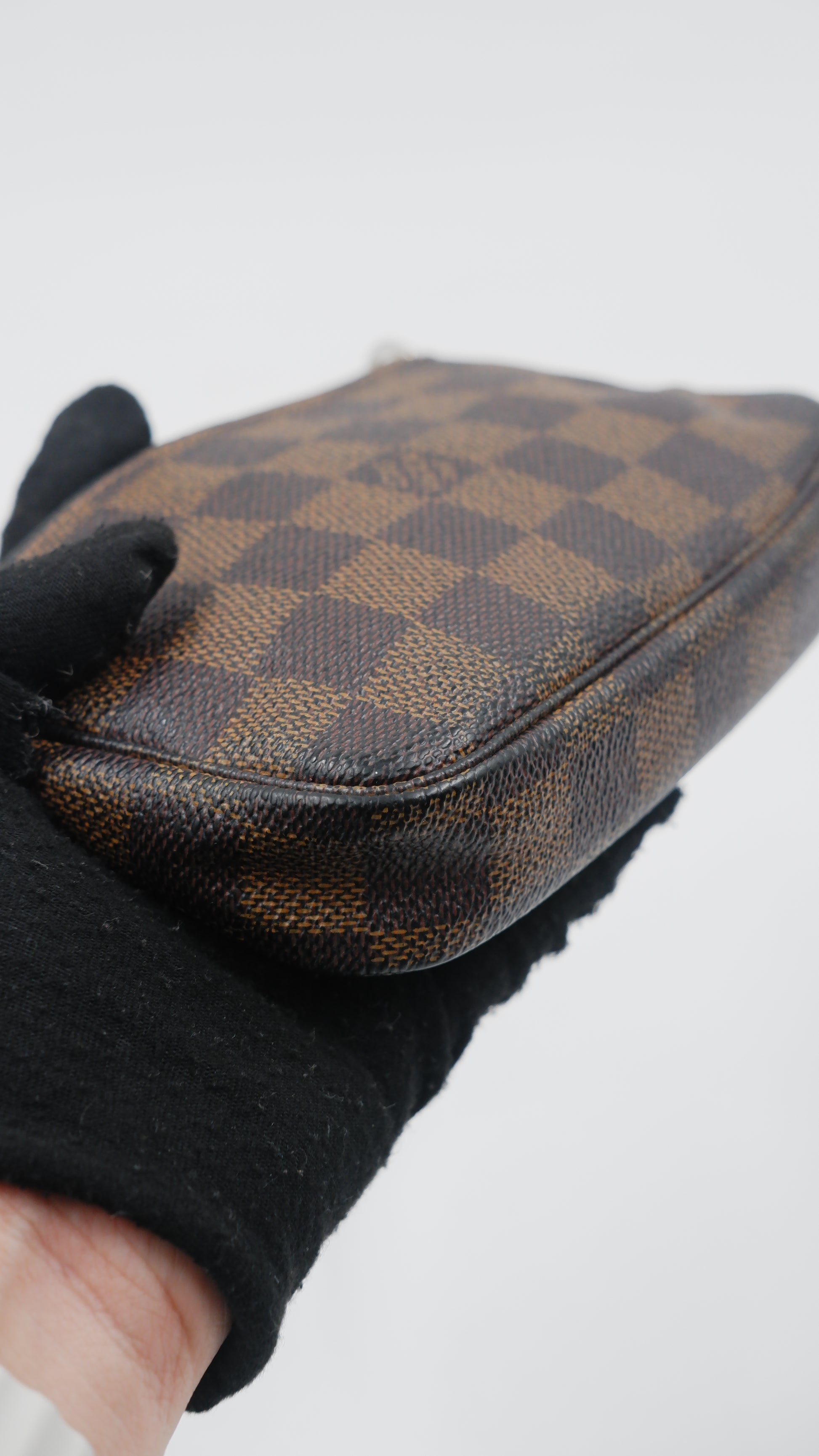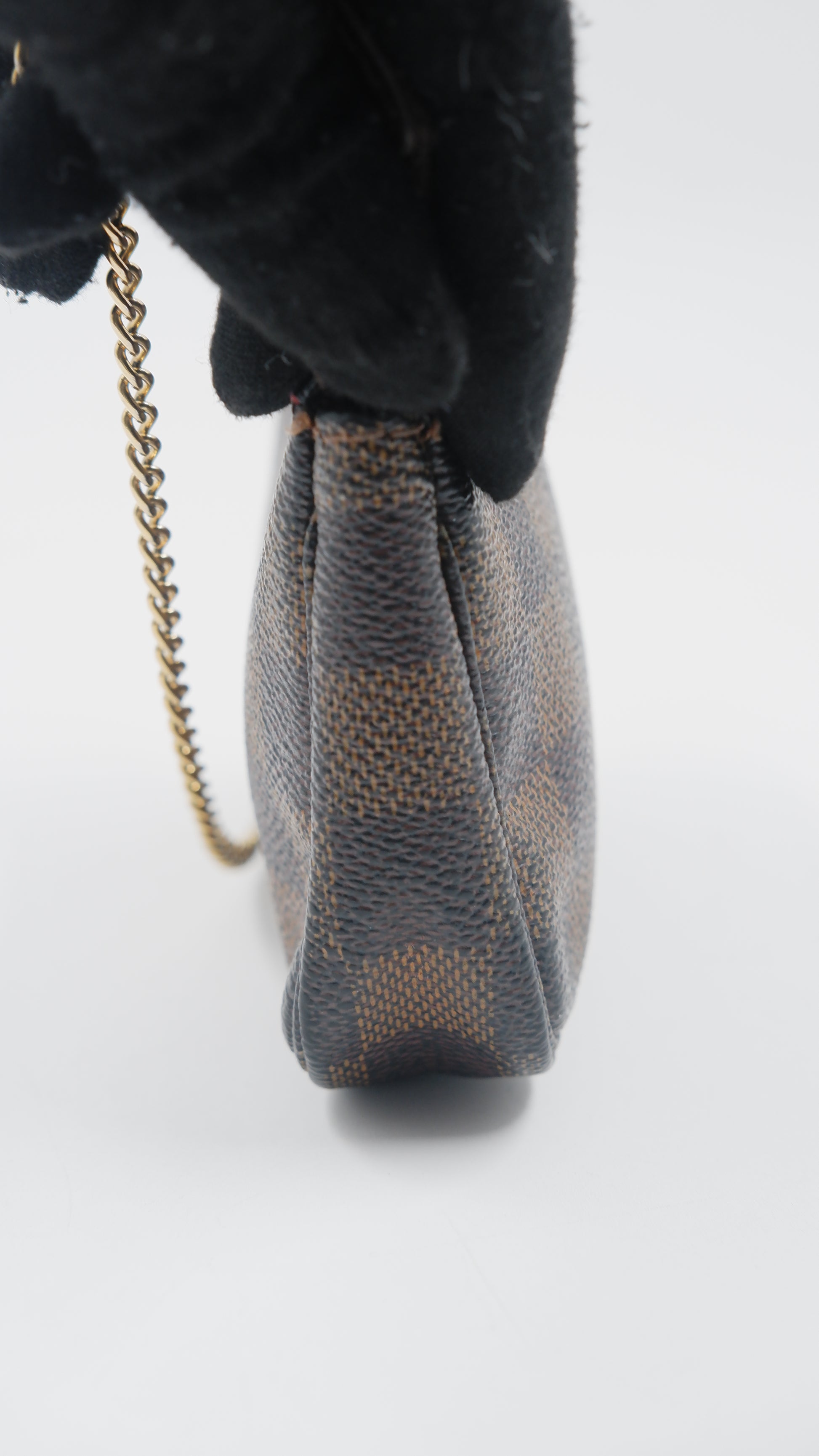 The Mini Pochette in exceptional condition showcases impeccable craftsmanship, made from premium DE coated canvas and highlighted by elegant gold hardware (GHW). Crafted in France, this compact accessory features a rich brown hue that complements any ensemble. Its dimensions, 6 inches in length, 1 inch in width, and 4 inches in height, offer a sleek and versatile design perfect for carrying essentials with refined ease. The pristine interior and exterior reflect meticulous care, while the included dust bag ensures its lasting beauty. A sophisticated choice for those who appreciate timeless luxury and understated elegance.