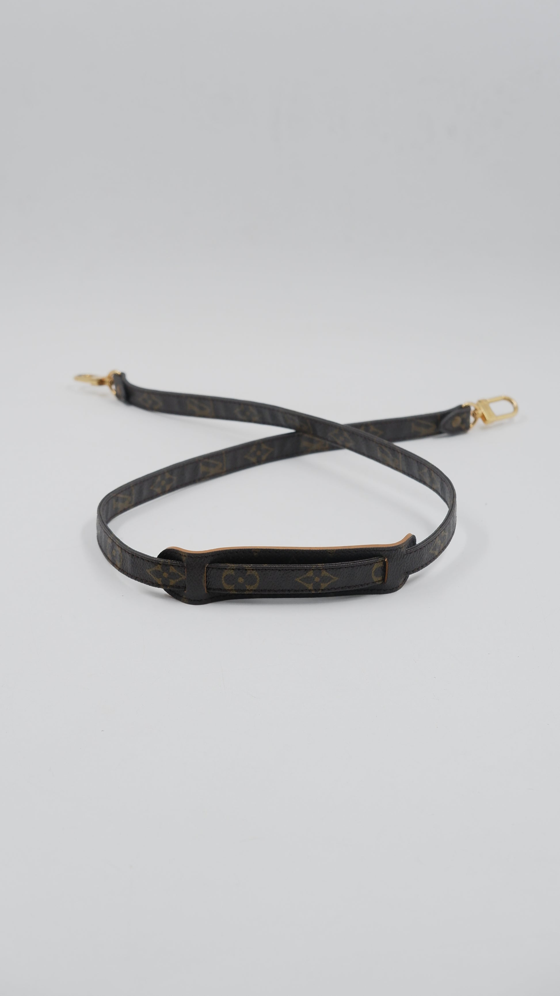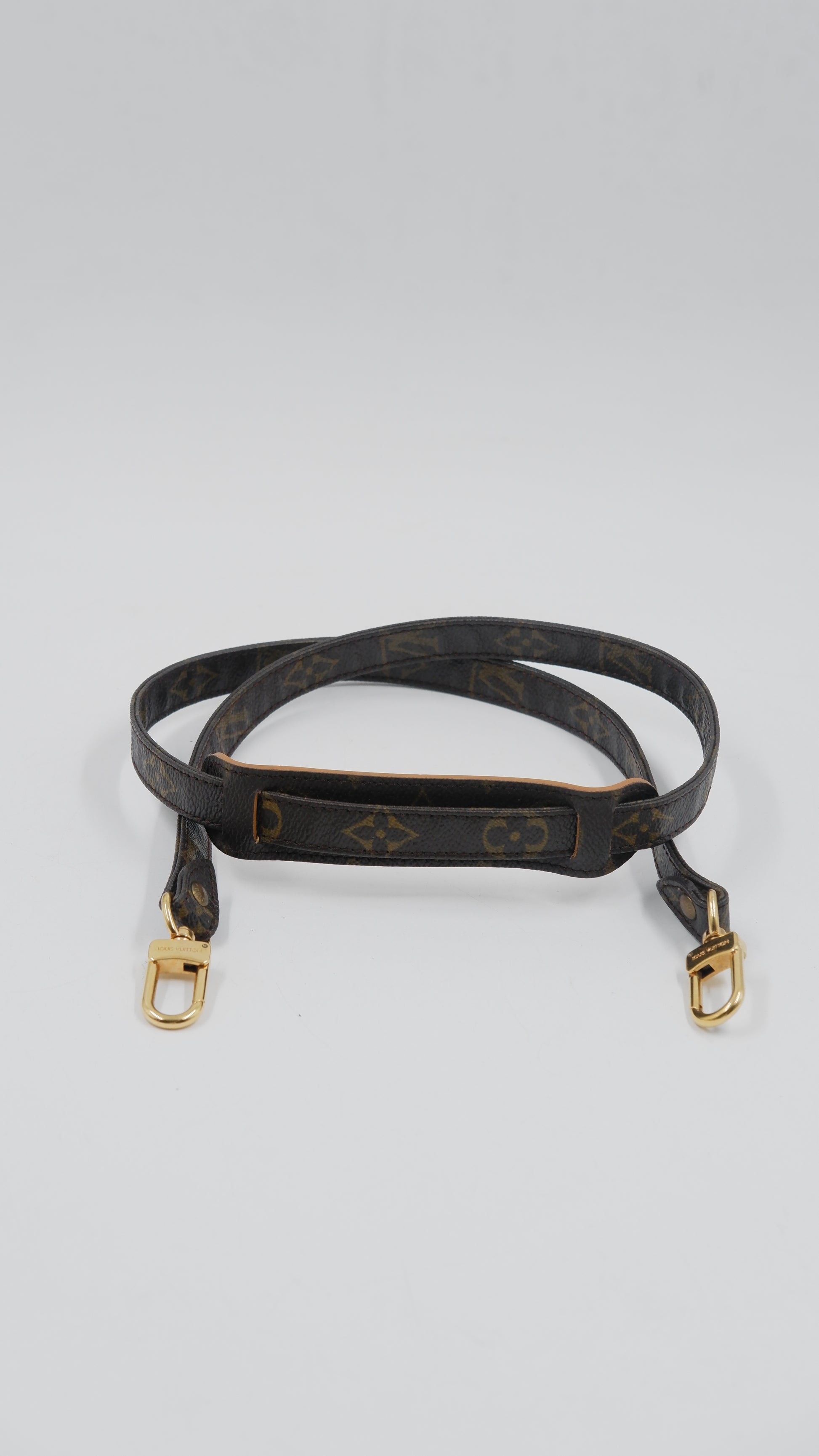Elevate your handbag’s versatility with this exquisite Monogram Bag Strap, crafted from premium leather and adorned in the iconic dark brown monogram canvas. Made in France with meticulous attention to detail, this strap boasts excellent overall condition, with both the exterior and interior impeccably preserved. Measuring 37 inches, it offers a comfortable and stylish length, complemented by gleaming gold hardware that enhances its luxurious appeal. Delivered with original cards and box, this elegant accessory not only refreshes your bag but also adds a refined touch to your ensemble, embodying timeless sophistication.