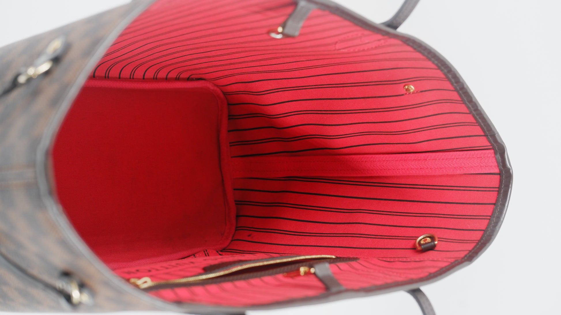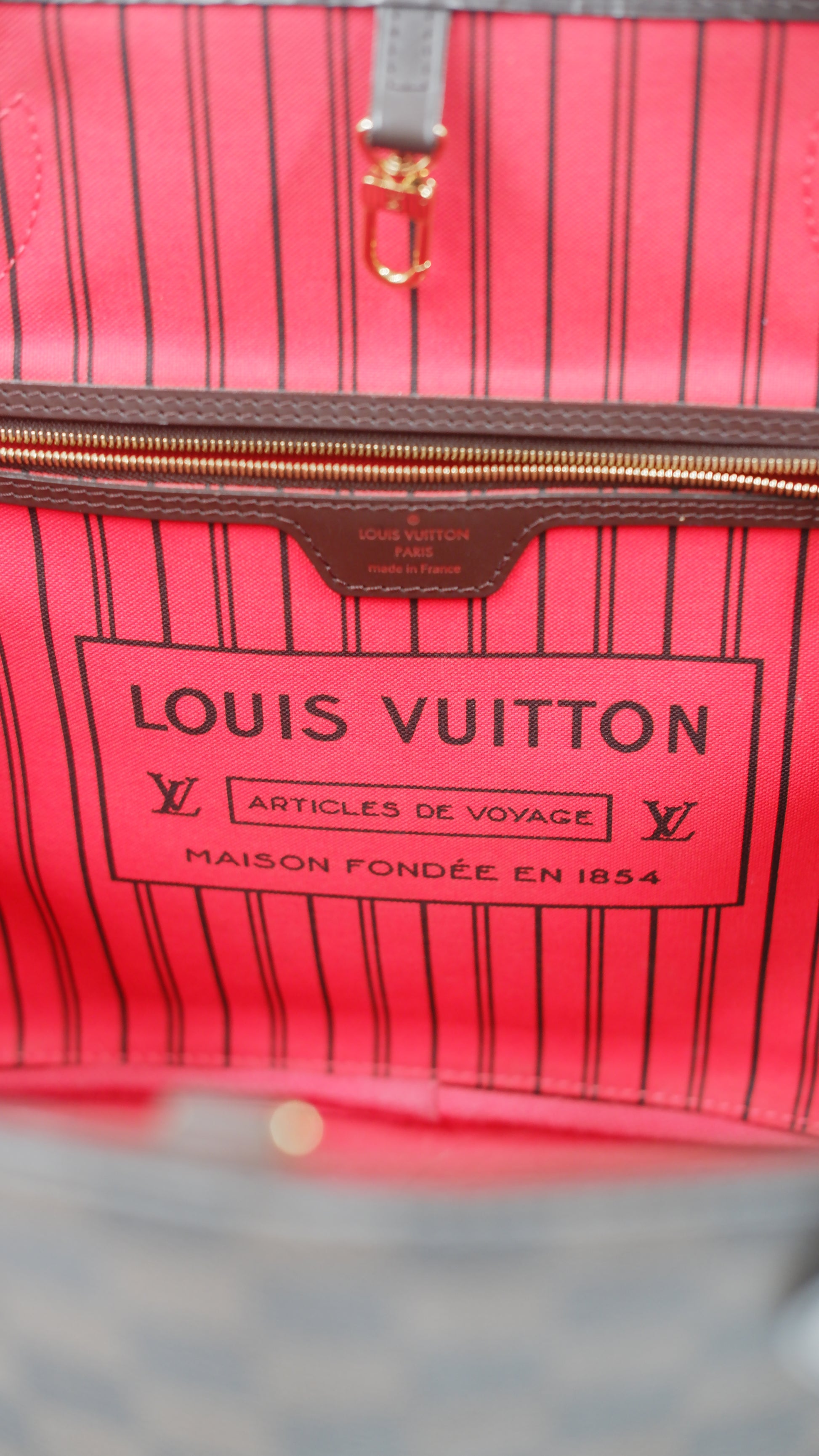 Experience timeless elegance with the Neverfull DE MM, crafted from luxurious DE Canvas and finished with gleaming gold hardware. Made in France, this spacious tote in classic dark and light brown tones offers both style and versatility. Its mint exterior and excellent interior condition ensure lasting beauty, while the included matching pouch and original dustbag provide added convenience and protection. Measuring L12 x W6 x H11, this sophisticated accessory is perfect for everyday use or special occasions, combining practicality with refined craftsmanship for the discerning individual.