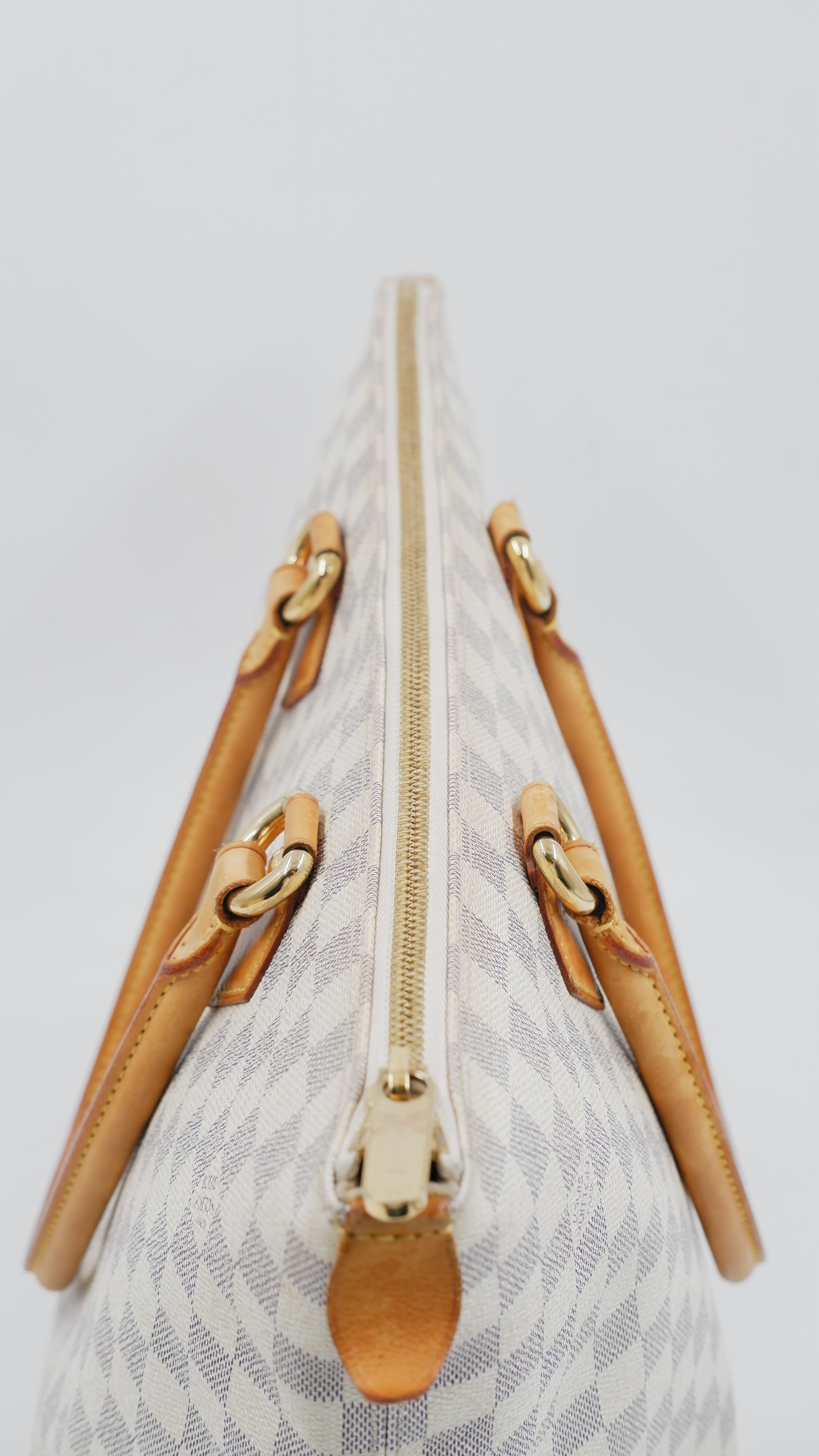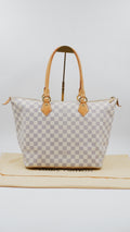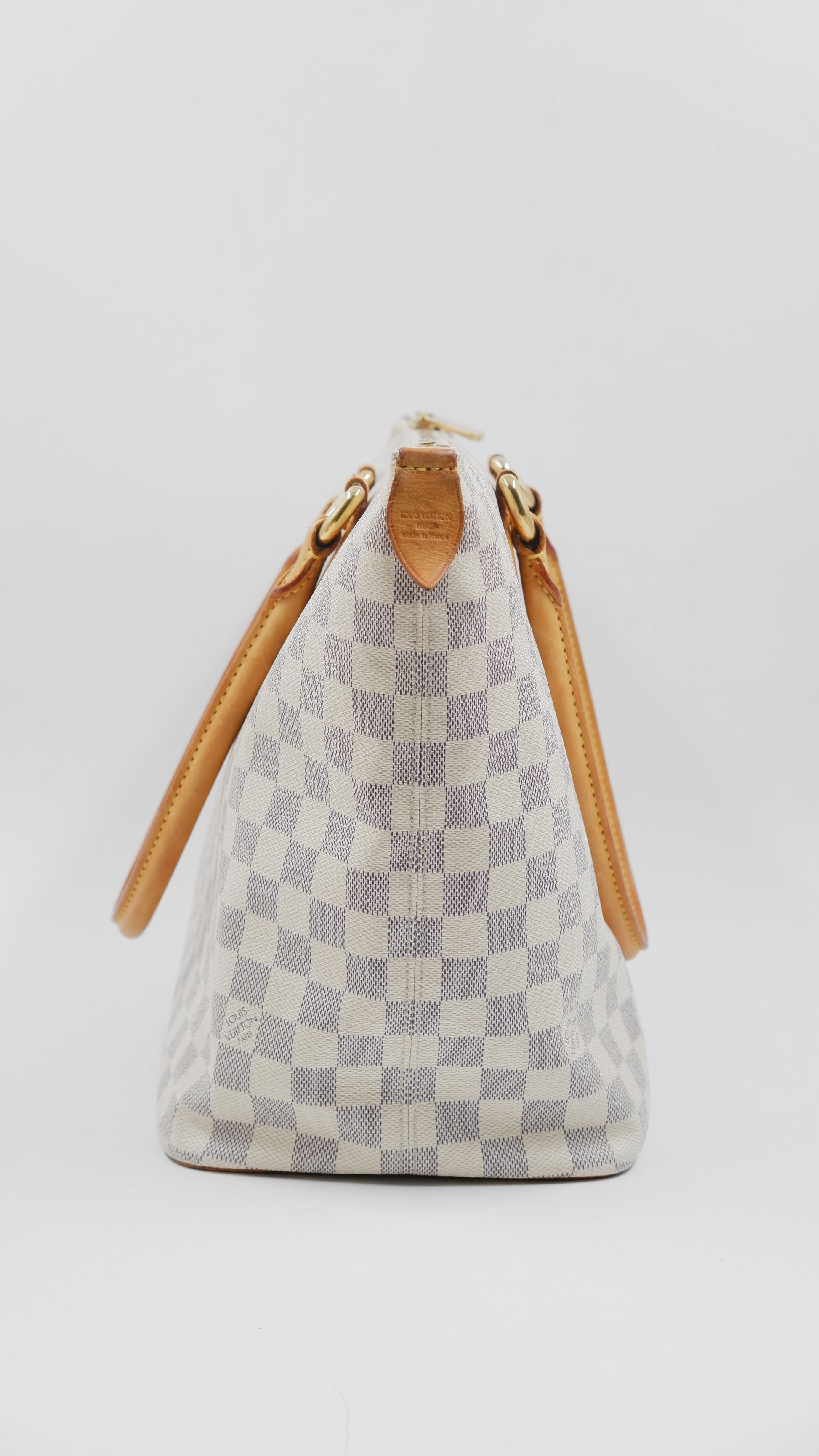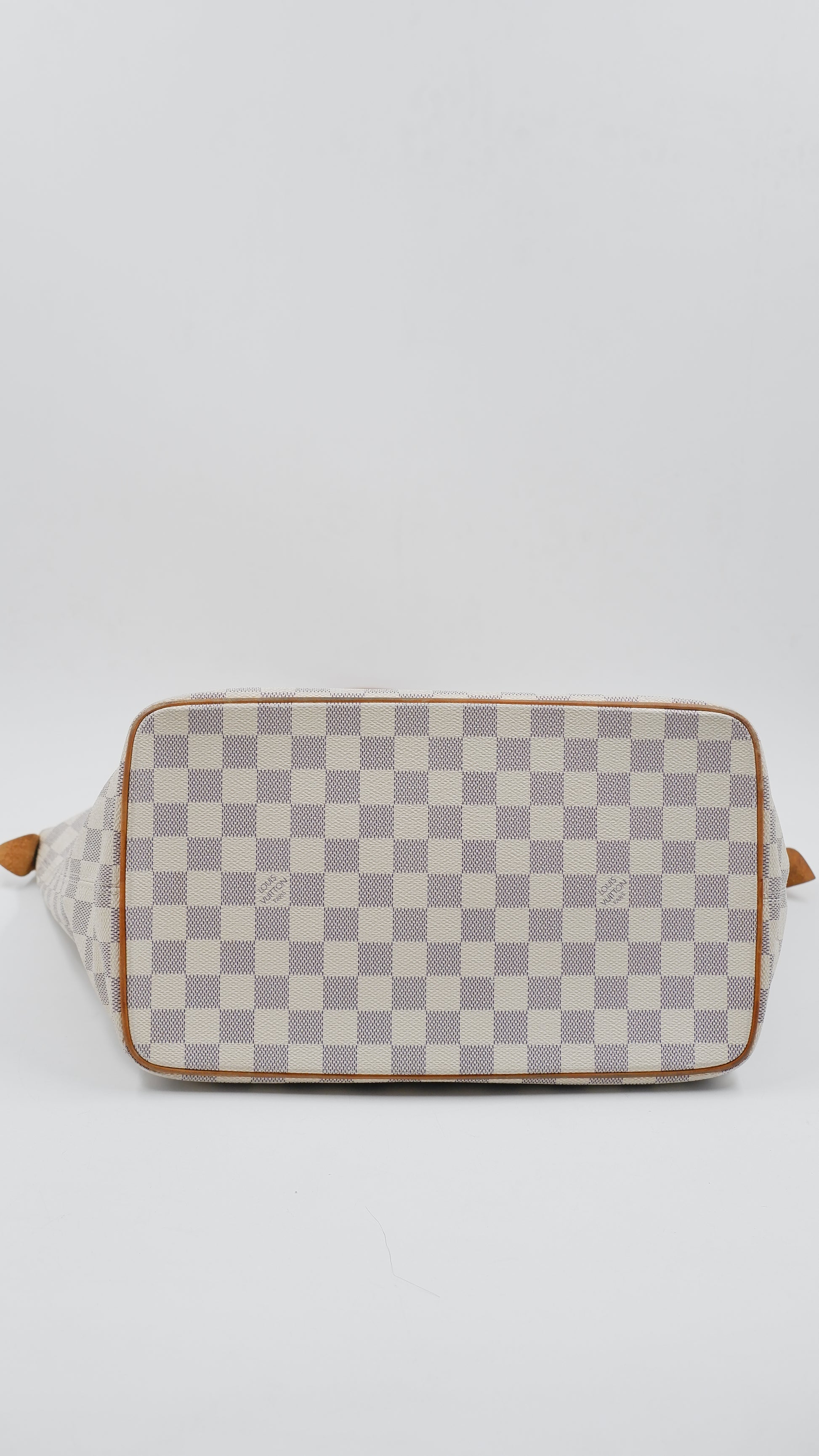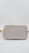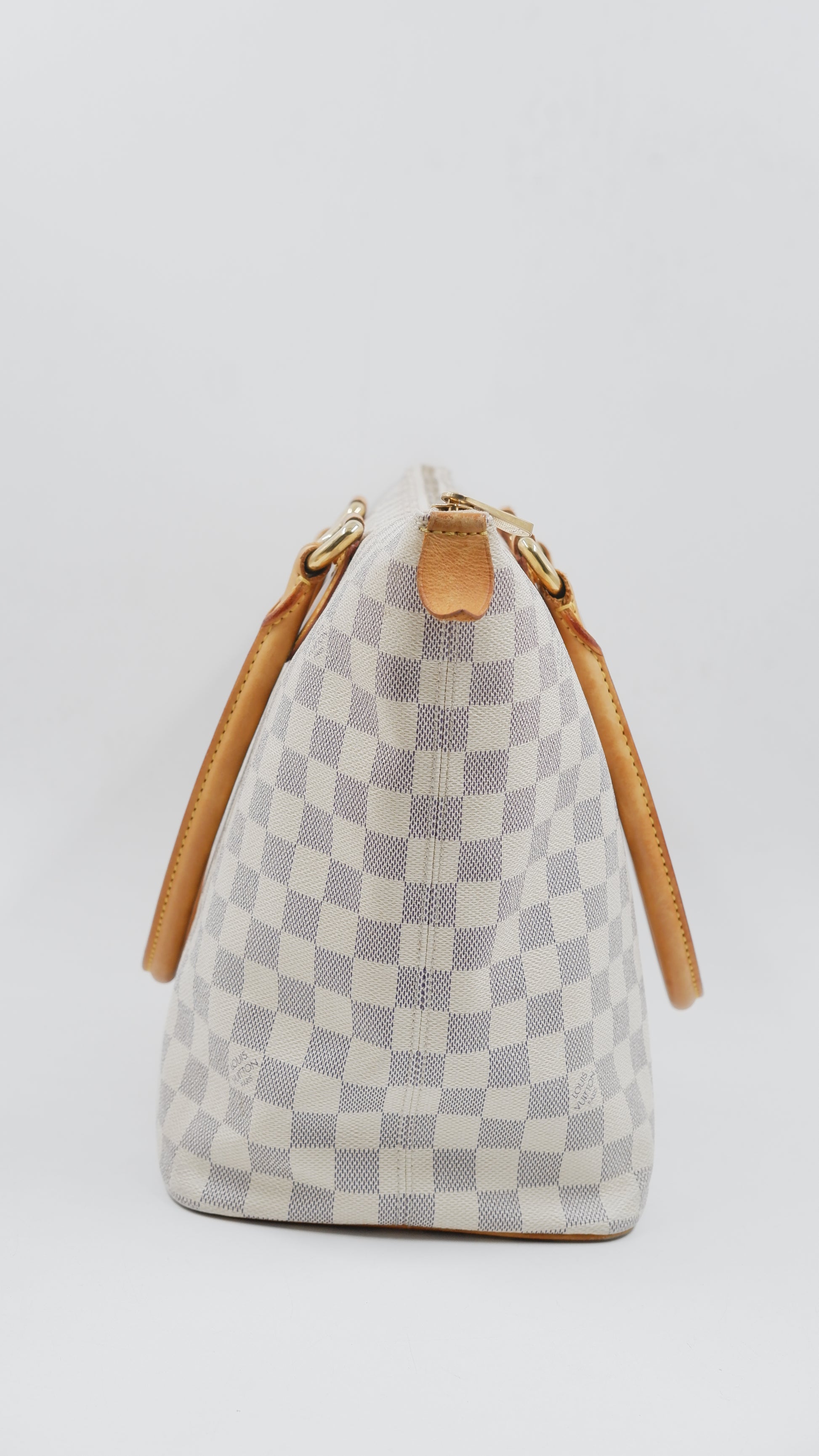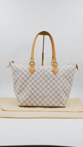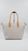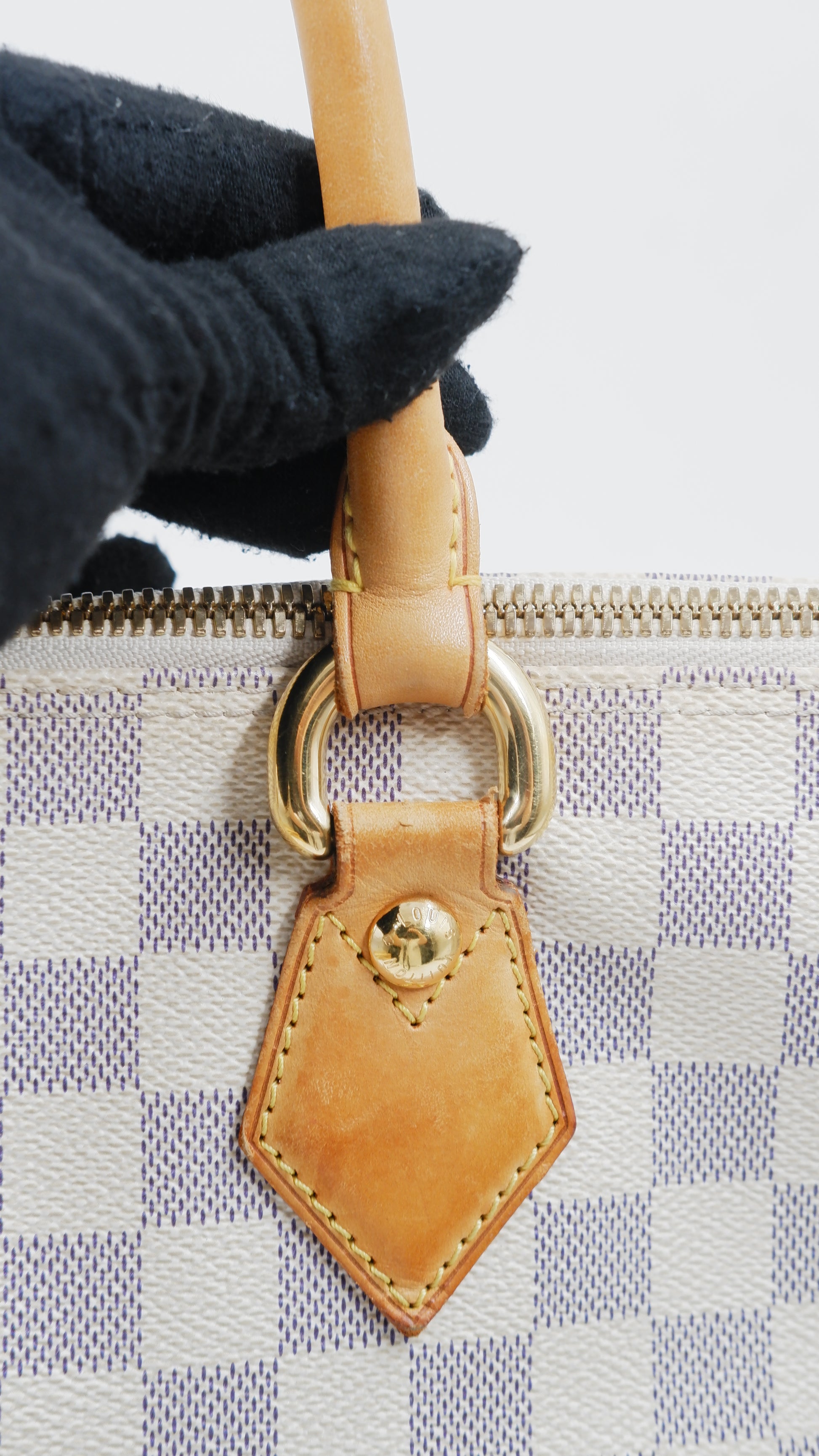 Experience timeless elegance with the Neverfull Zip Closure DE Azure MM, a luxurious leather tote crafted in France. This piece boasts an excellent overall condition, with pristine gray and white leather exterior and flawless interior, reflecting meticulous care and superior craftsmanship. Measuring L12 x W7 x H11 inches, it offers ample space for both daily essentials and sophisticated accessories. The gold hardware adds a refined touch, enhancing its classic aesthetic. Complete with the original dust bag, this tote is a perfect blend of functionality and style, ideal for those who appreciate understated luxury and enduring quality.