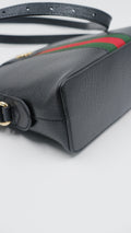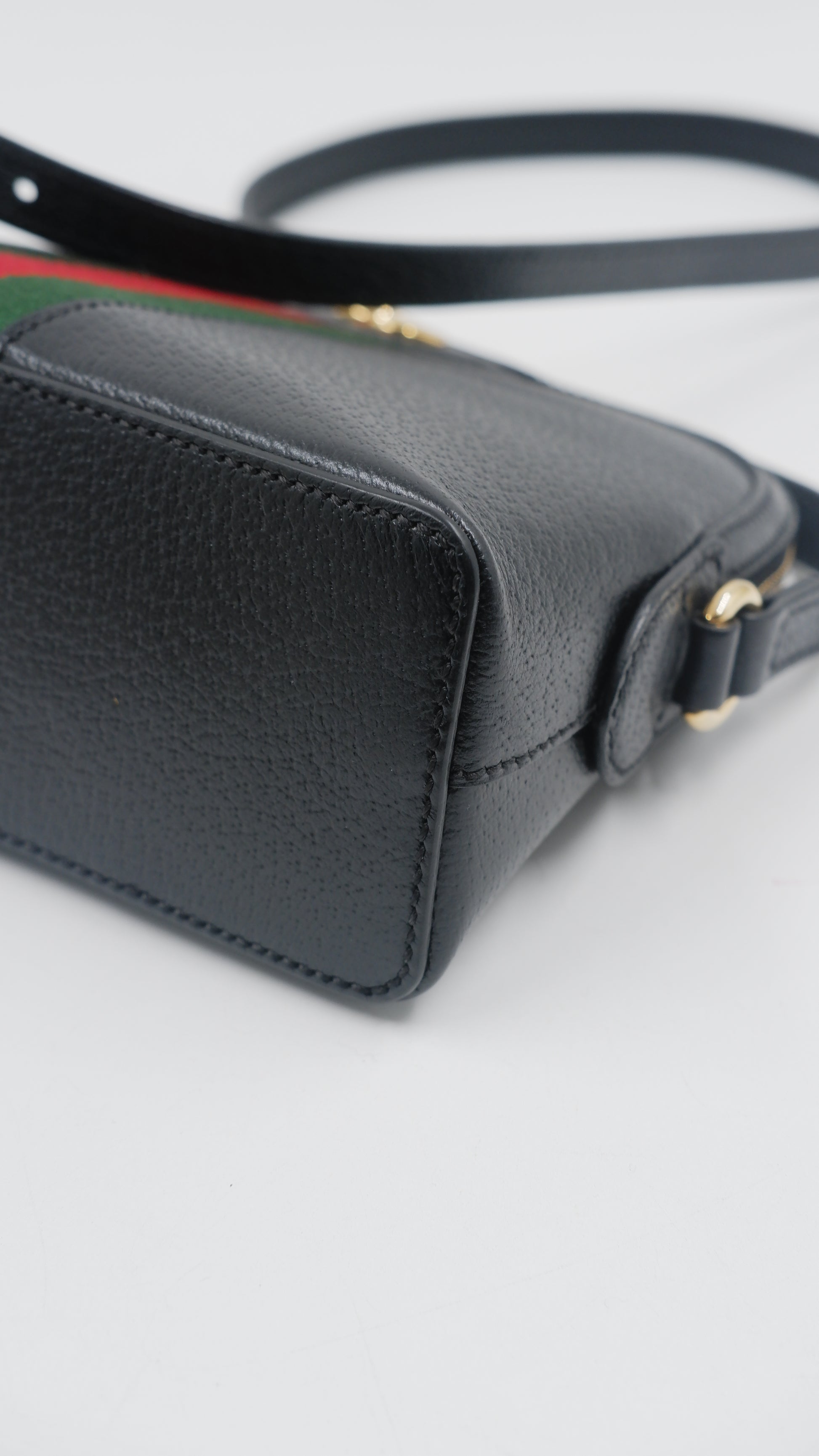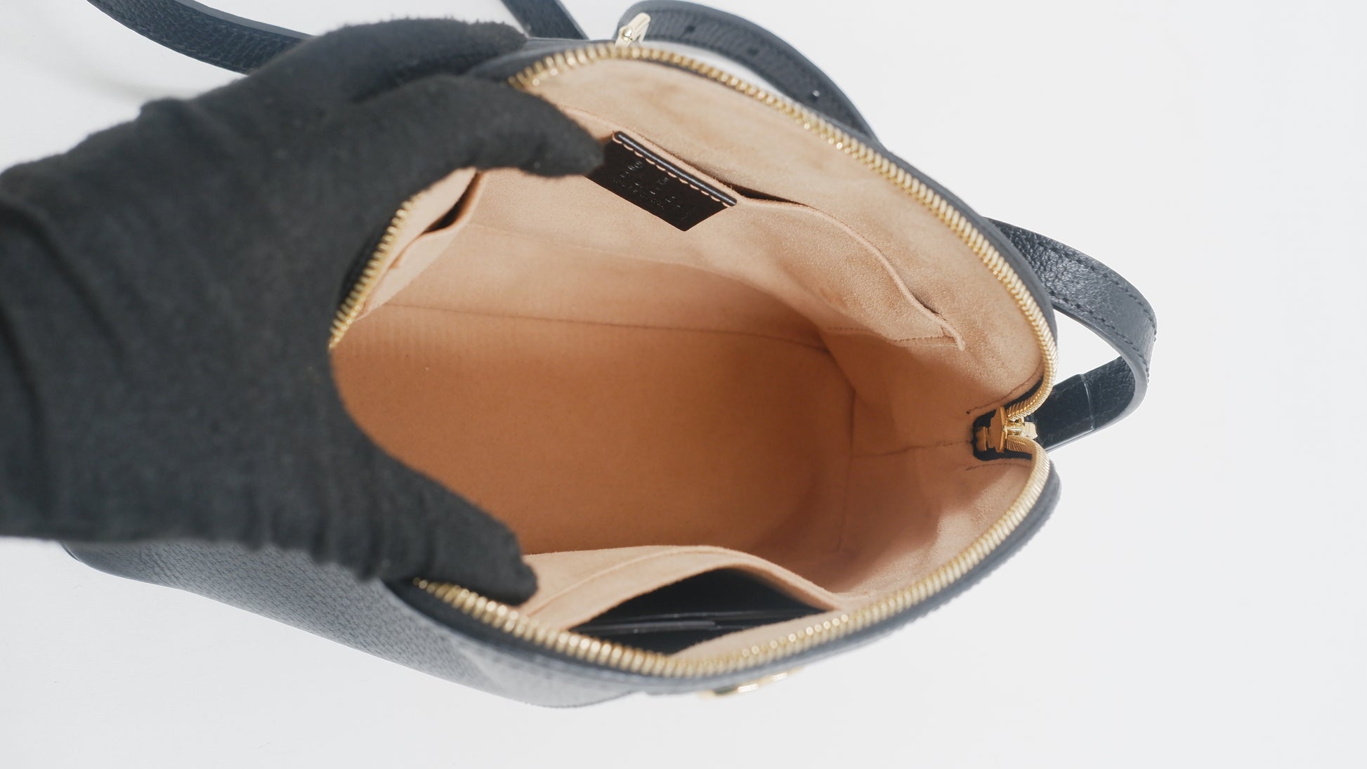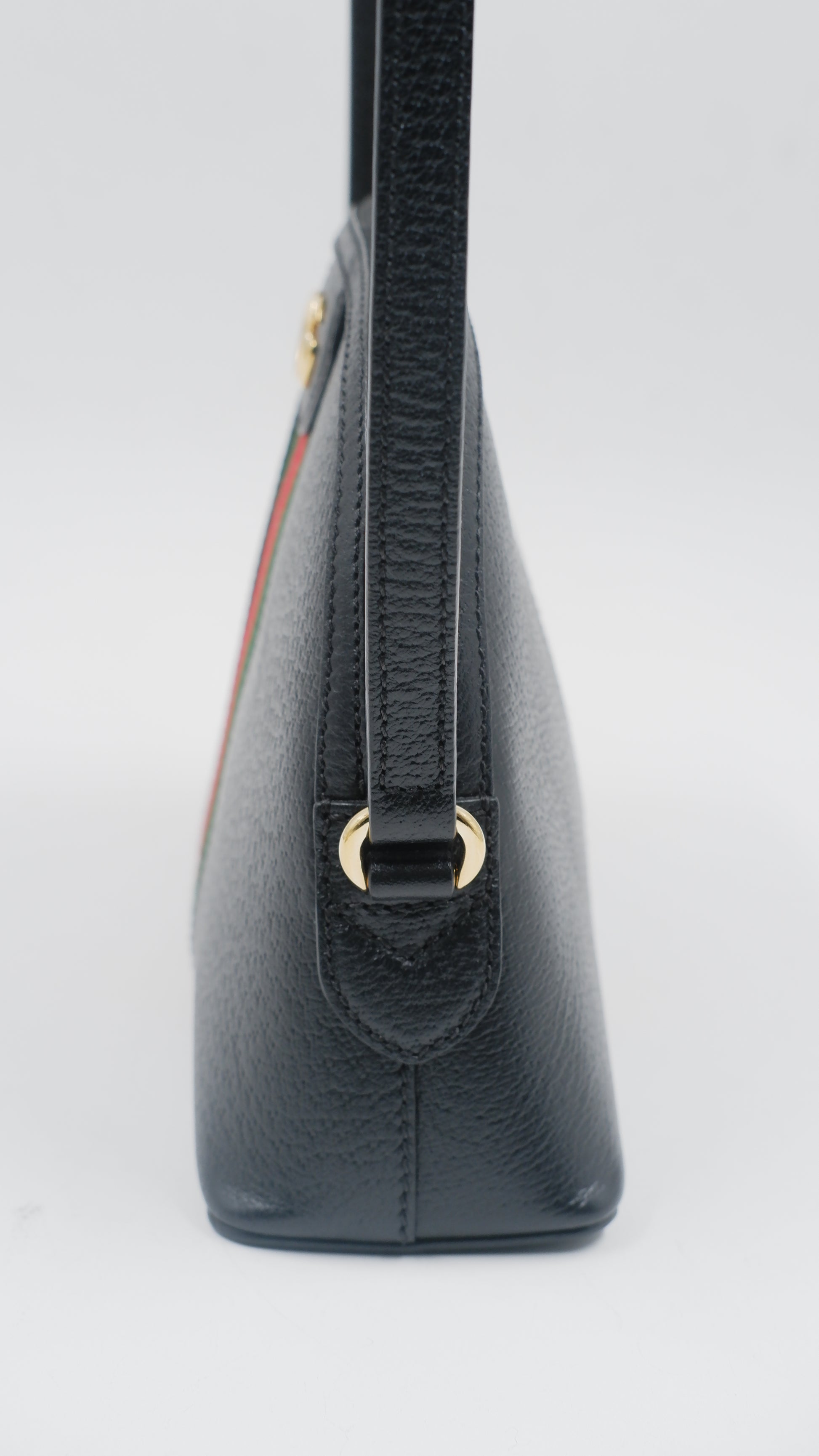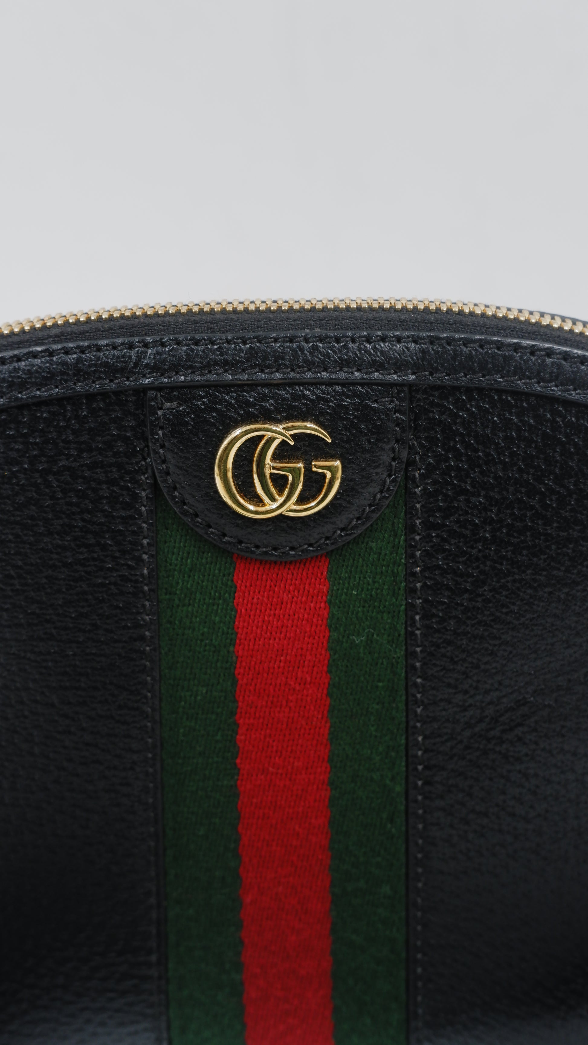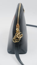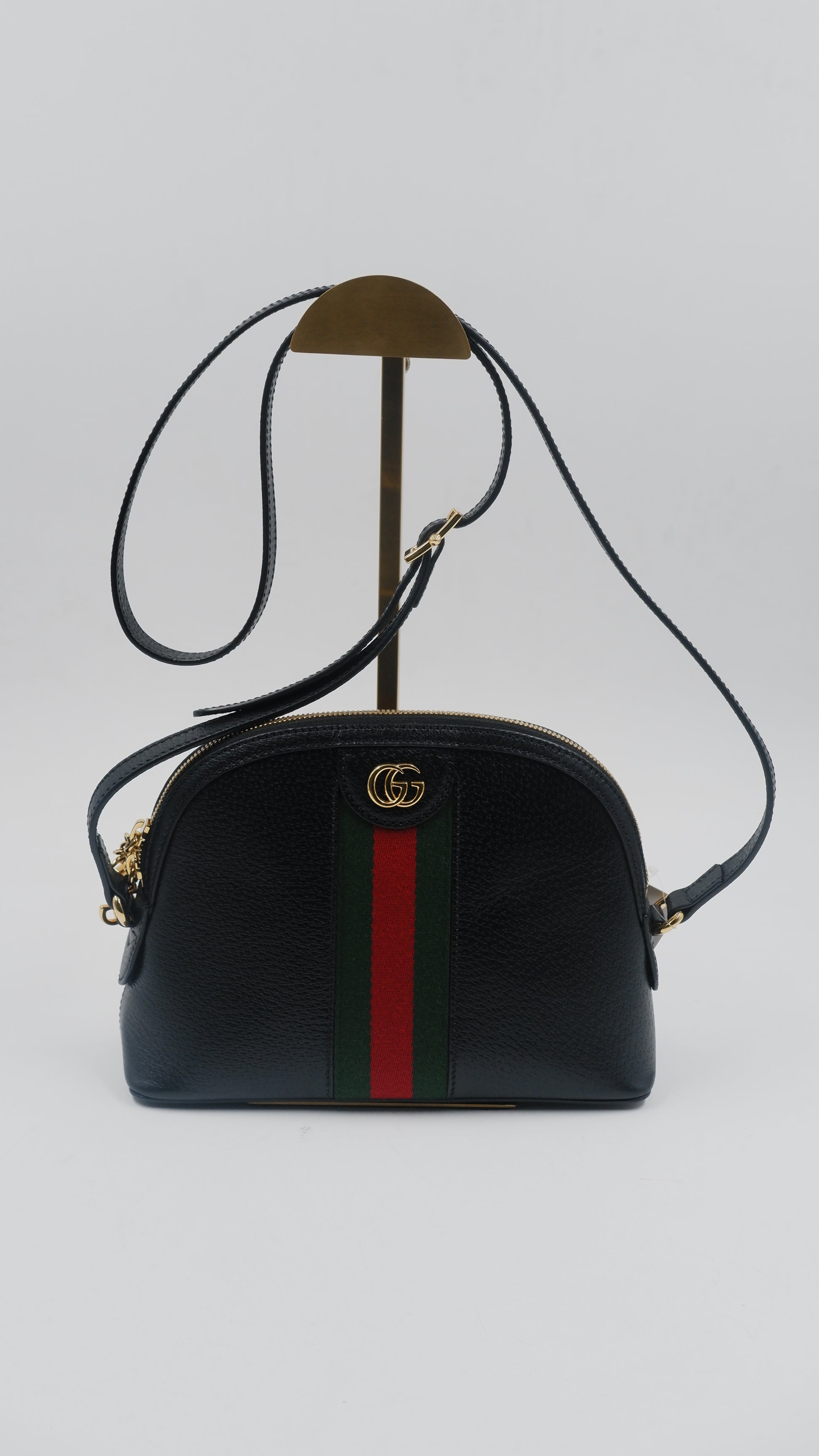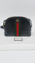 Experience timeless elegance with the Ophidia Dome Leather bag, crafted in Italy from premium black leather. This exquisite piece is in mint condition inside and out, reflecting impeccable care and quality. Measuring L9.5 x W3 x H7 inches, it offers a sleek yet practical size for everyday sophistication. The luxurious gold hardware complements the refined design, while thoughtful inclusions such as original cards, receipt, and dust bag ensure authenticity and preservation. Elevate your collection with this A+ ranked accessory that seamlessly combines classic style with enduring craftsmanship.