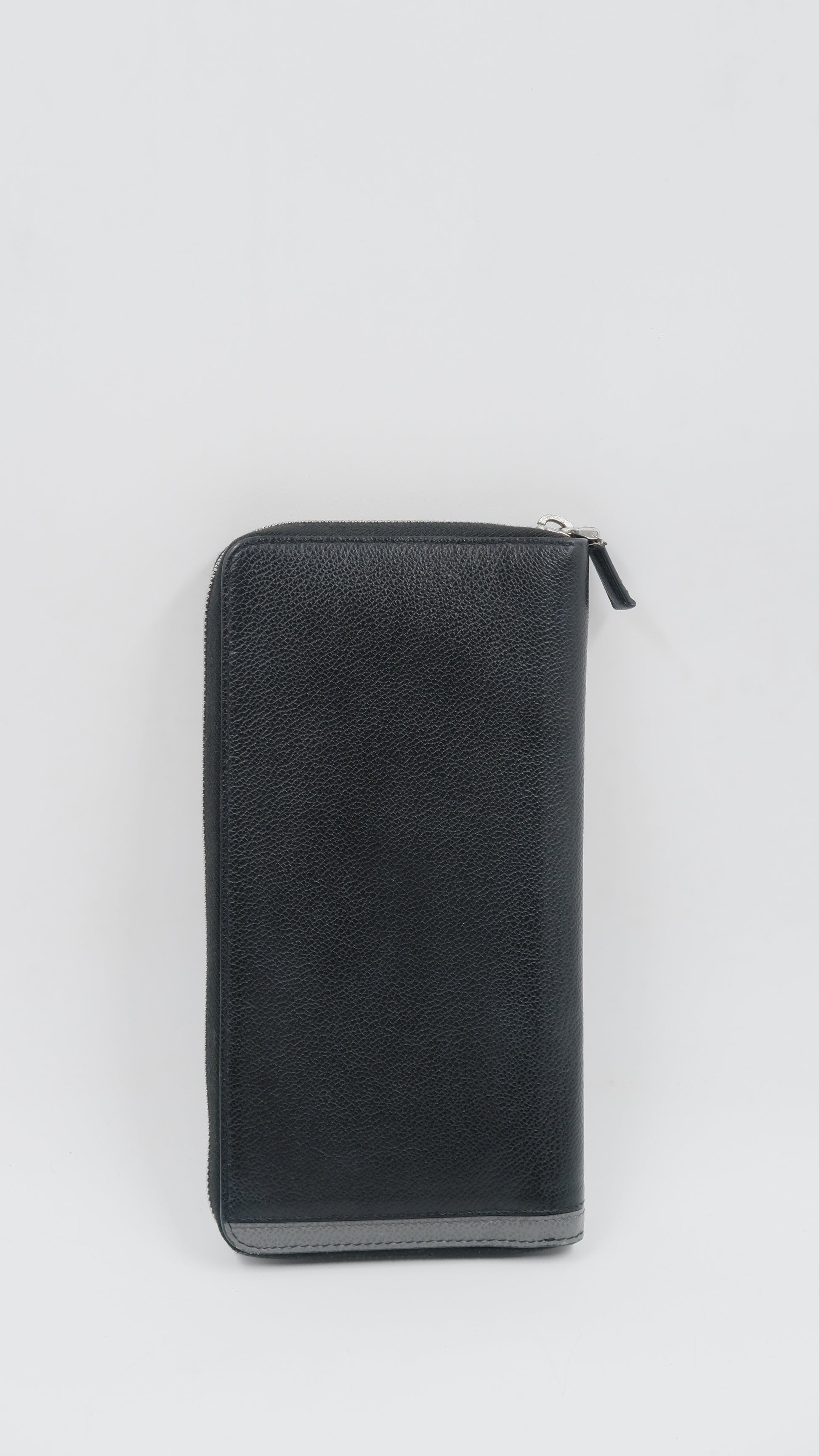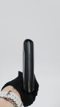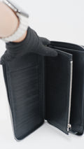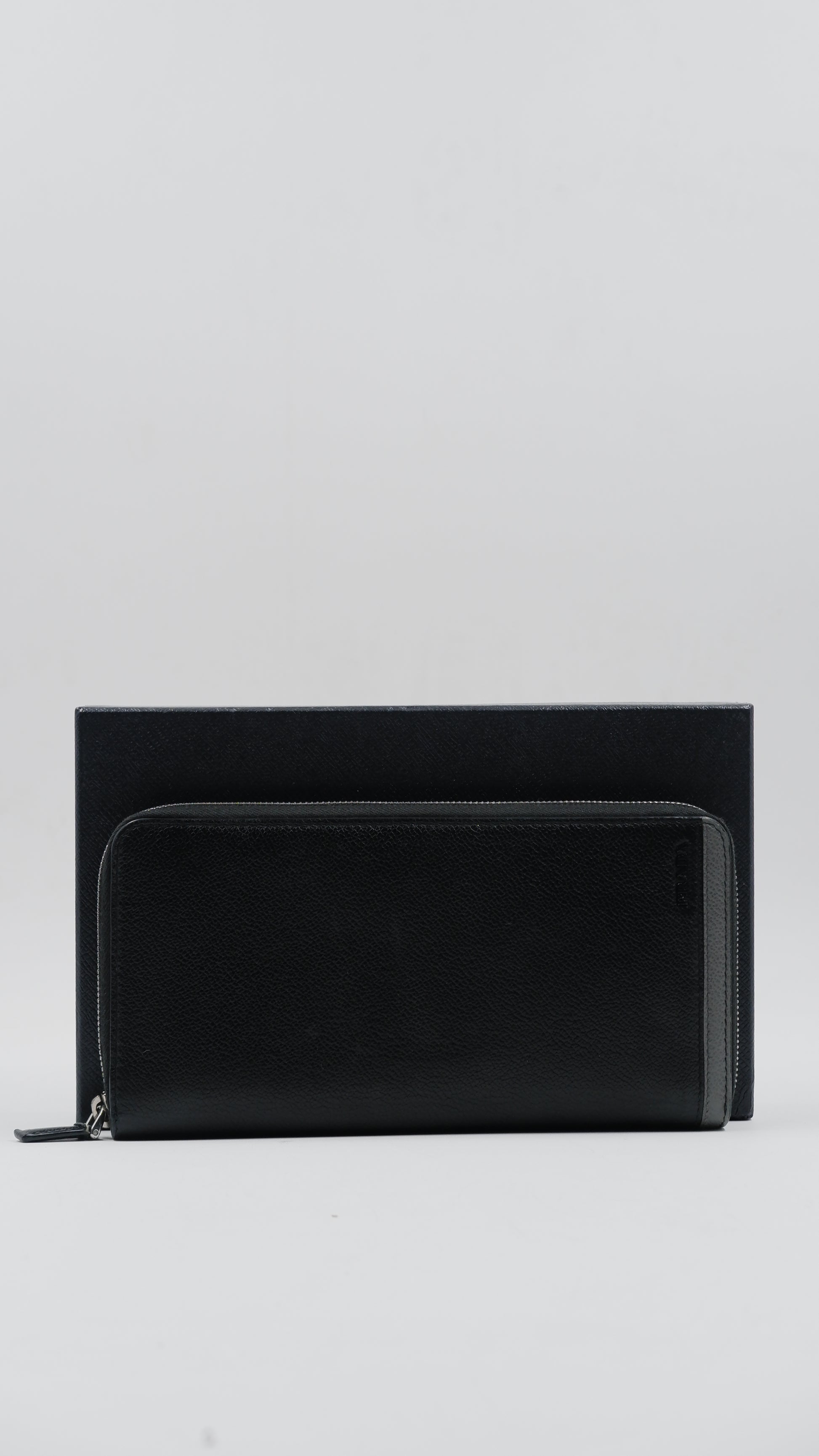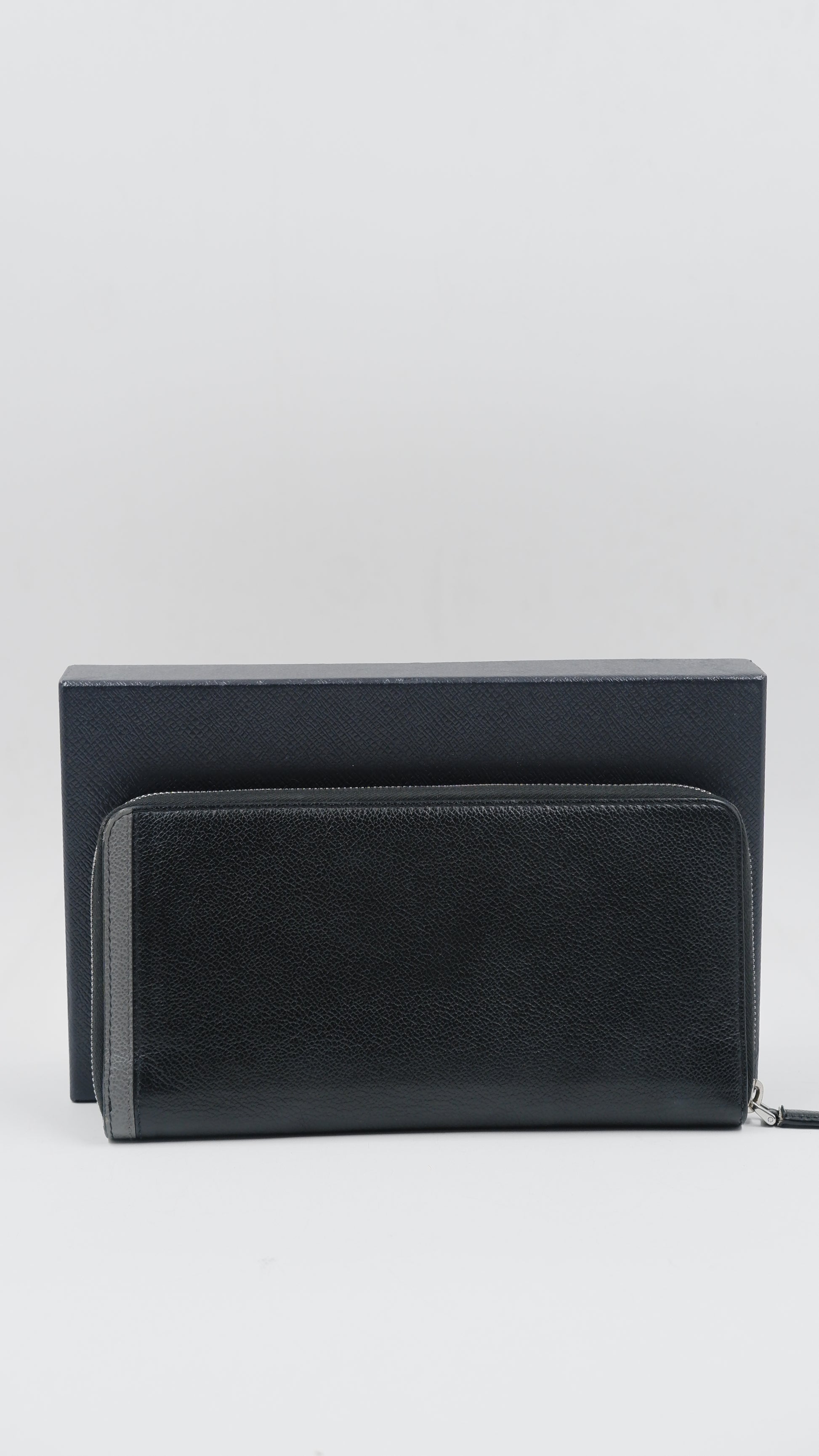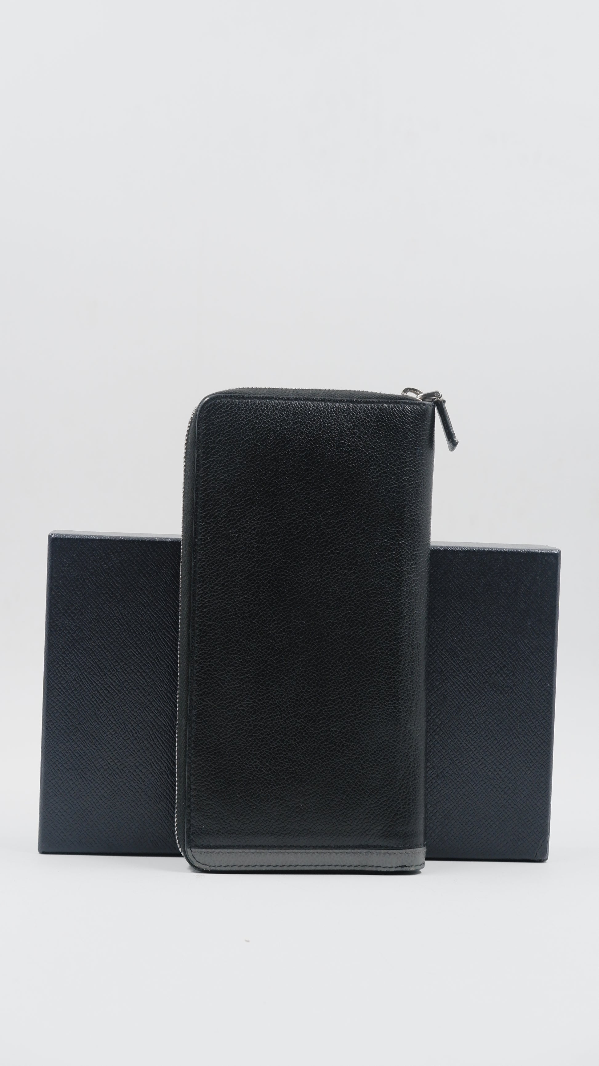 This exquisite Saffiano Leather wallet, crafted in Italy, showcases exceptional quality with an overall condition rated as excellent. The black exterior boasts durable Saffiano leather, renowned for its textured finish and resistance to scratches, maintaining a pristine look over time. Inside, the wallet remains in excellent condition, thoughtfully designed to hold your essentials securely. Its compact measurements of 5 cm by 9 cm make it an elegant yet practical accessory for everyday use. Featuring silver hardware and accompanied by cards and its original box, this finely made wallet combines timeless style with refined craftsmanship, perfect for the discerning individual.