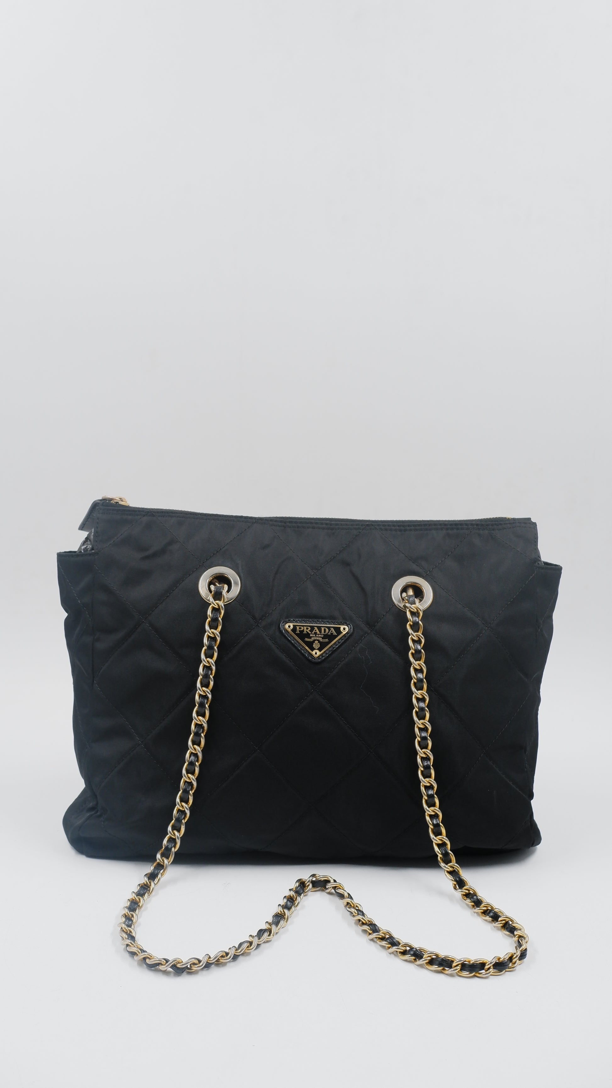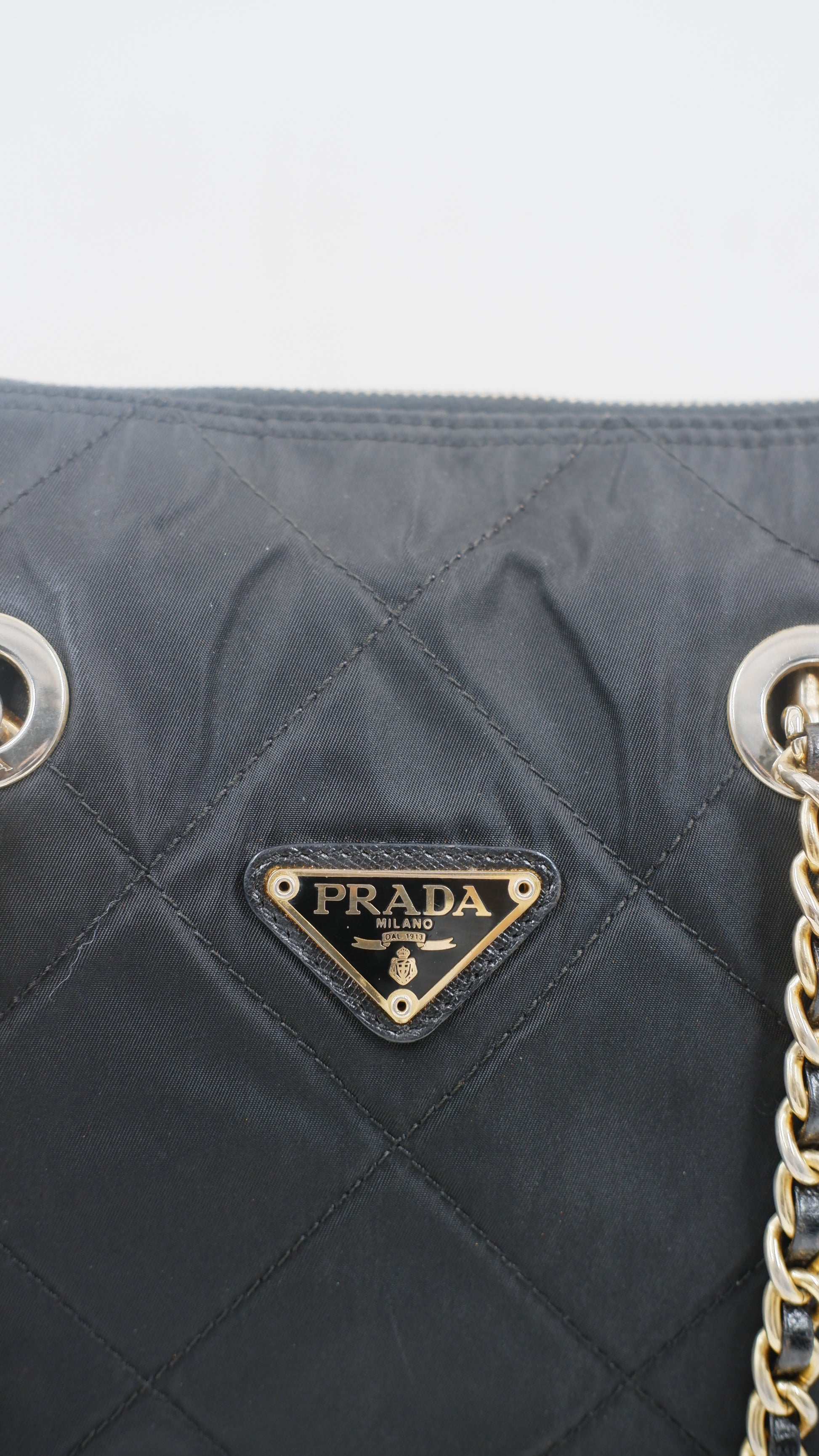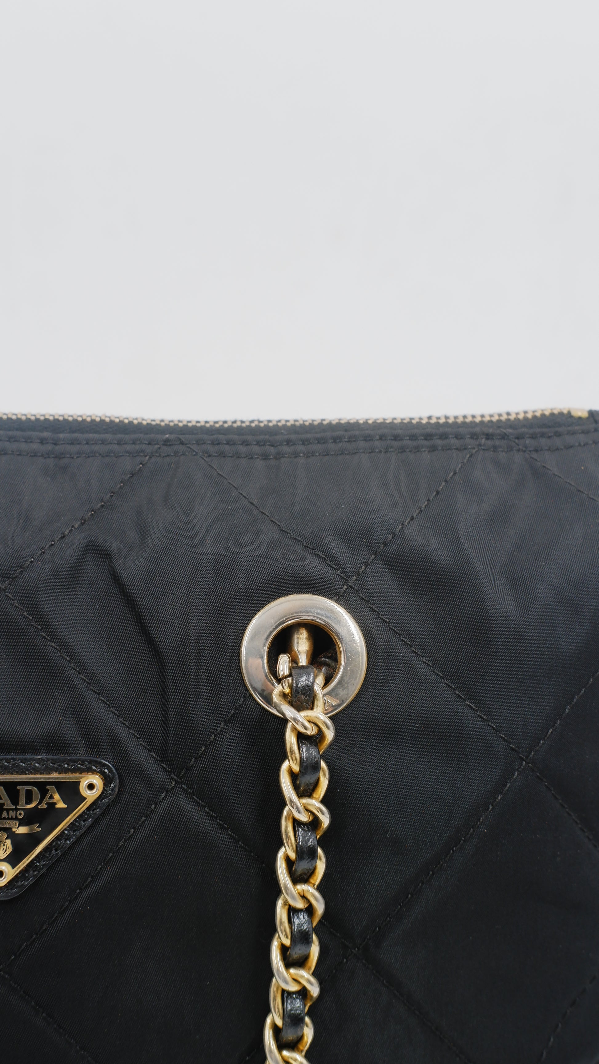 Tessuto Nylon Quilted Chain Shoulder Bag