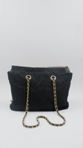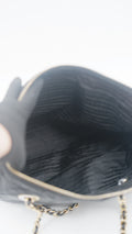 Crafted in Italy with meticulous attention to detail, this Tessuto Nylon Quilted Chain Shoulder Bag combines elegance and practicality for the discerning individual. Made from durable black nylon, its quilted design offers a timeless, sophisticated look complemented by gleaming gold hardware. Compact yet spacious, it measures L13 x W3 x H9.5, perfect for essentials while maintaining a sleek profile. The interior is pristine, reflecting careful maintenance, and the exterior remains flawless, showcasing its excellent condition. Included with this exquisite piece is an original dustbag, ensuring its protection and longevity. Elevate any ensemble with this refined accessory.