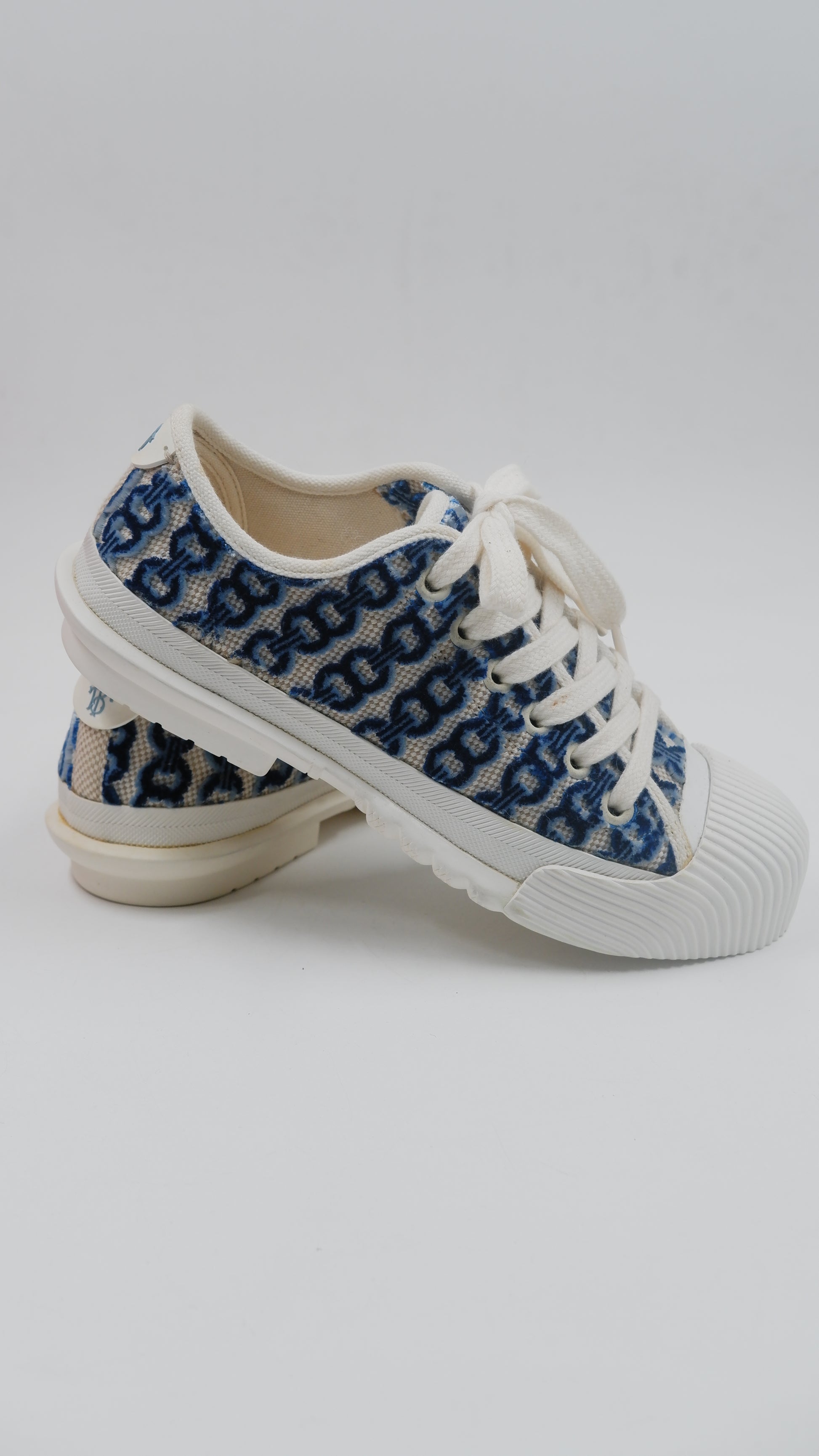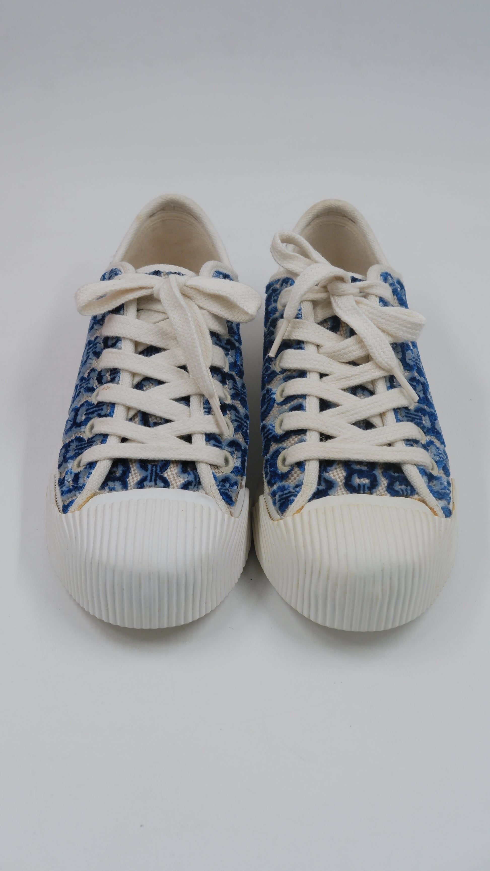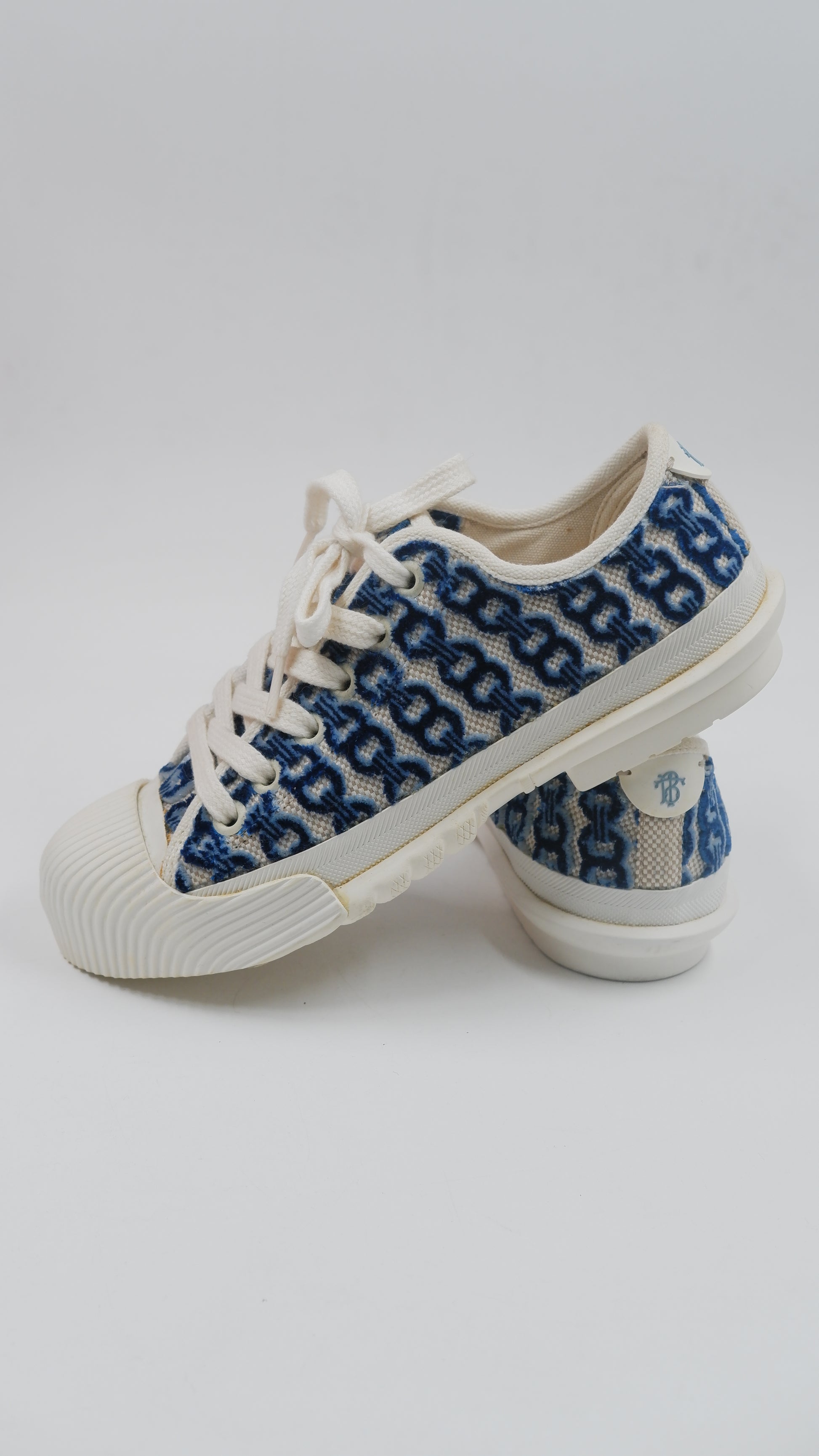 Elevate your casual collection with the Buddy Sneaker, crafted in Brazil from high-quality canvas material that ensures durability and breathability. This size 8.5 sneaker features a refined blue and white color palette, perfectly balancing versatility with a touch of elegance. Rated in excellent condition and ranked A, it promises both style and lasting wear. Complete with its original box, this sneaker is an ideal choice for those who appreciate sophisticated footwear with a relaxed, polished edge. Perfect for effortless, everyday refinement.