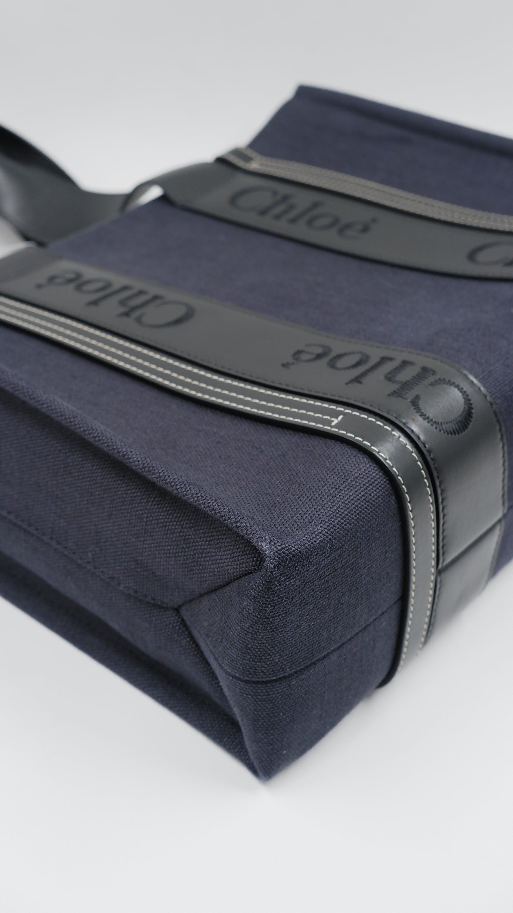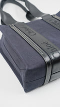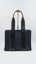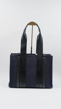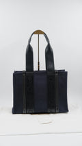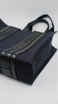 This Wood Denim Tote Bag exemplifies impeccable craftsmanship and timeless style, crafted from premium denim in a deep, rich dark blue that contrasts elegantly with its sleek black handles. Made in Italy, it boasts a like-new condition on both the exterior and interior, ensuring a flawless appearance and durability. With generous dimensions of 14 inches in length, 5 inches in width, and 10.5 inches in height, this tote offers ample space for essentials while maintaining a refined silhouette. It comes complete with original cards, tag, and an authentic dust bag, reflecting its luxury heritage and attention to detail. Perfect for those who appreciate sophisticated everyday accessories that fuse practicality with understated elegance.